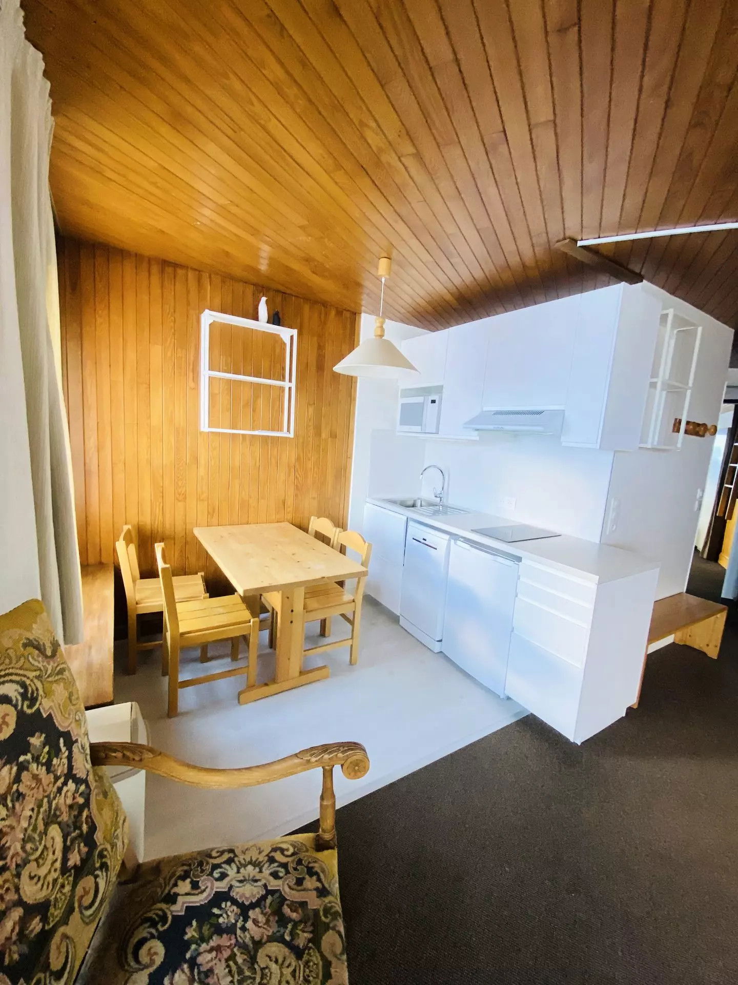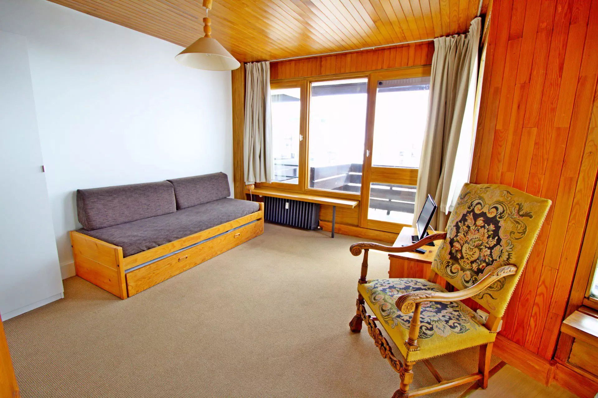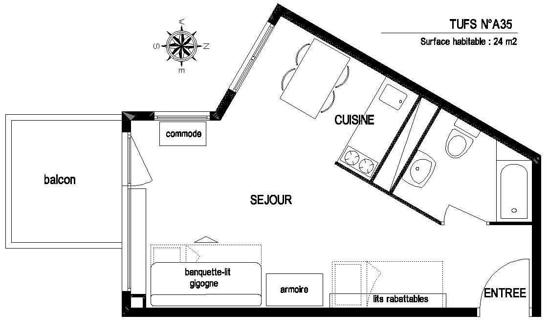 Situé sur les pistes de ski, cet appartement bénéficie d'un emplacement privilégié. Pouvant accueillir jusqu'à 4 personnes, il dispose d'un balcon avec vue sur les montagnes. Au 4ème étage d'une résidence avec ascenseur, l'appartement de 24m² exposé sud-ouest se compose d'un séjour avec lit gigogne (2x80 cm), possibilité de faire un grand lit) et d'une cuisine équipée (lave-vaisselle, four micro-ondes, réfrigérateur, cafetière, ). S'y ajoute dans l'entrée 2 lits superposés (2 x 80 cm) séparés de la pièce principale par un rideau, le lit supérieur n'étant pas adapté aux enfants de moins de 6 ans (article 6 du Décret no 95-949 du 25 août 1995). Salle de douche avec WC.