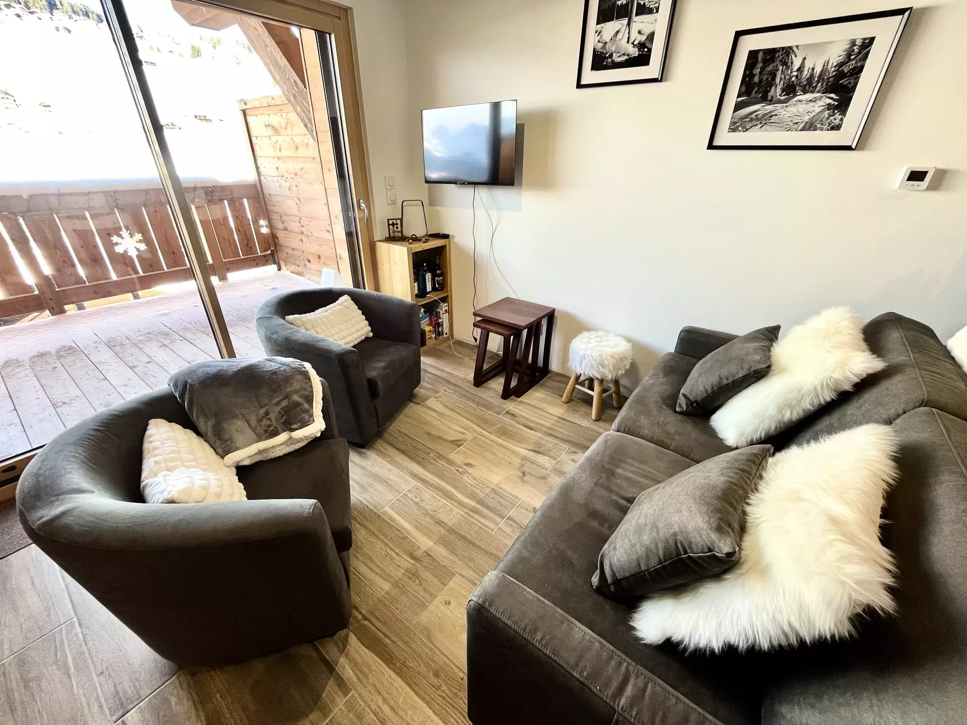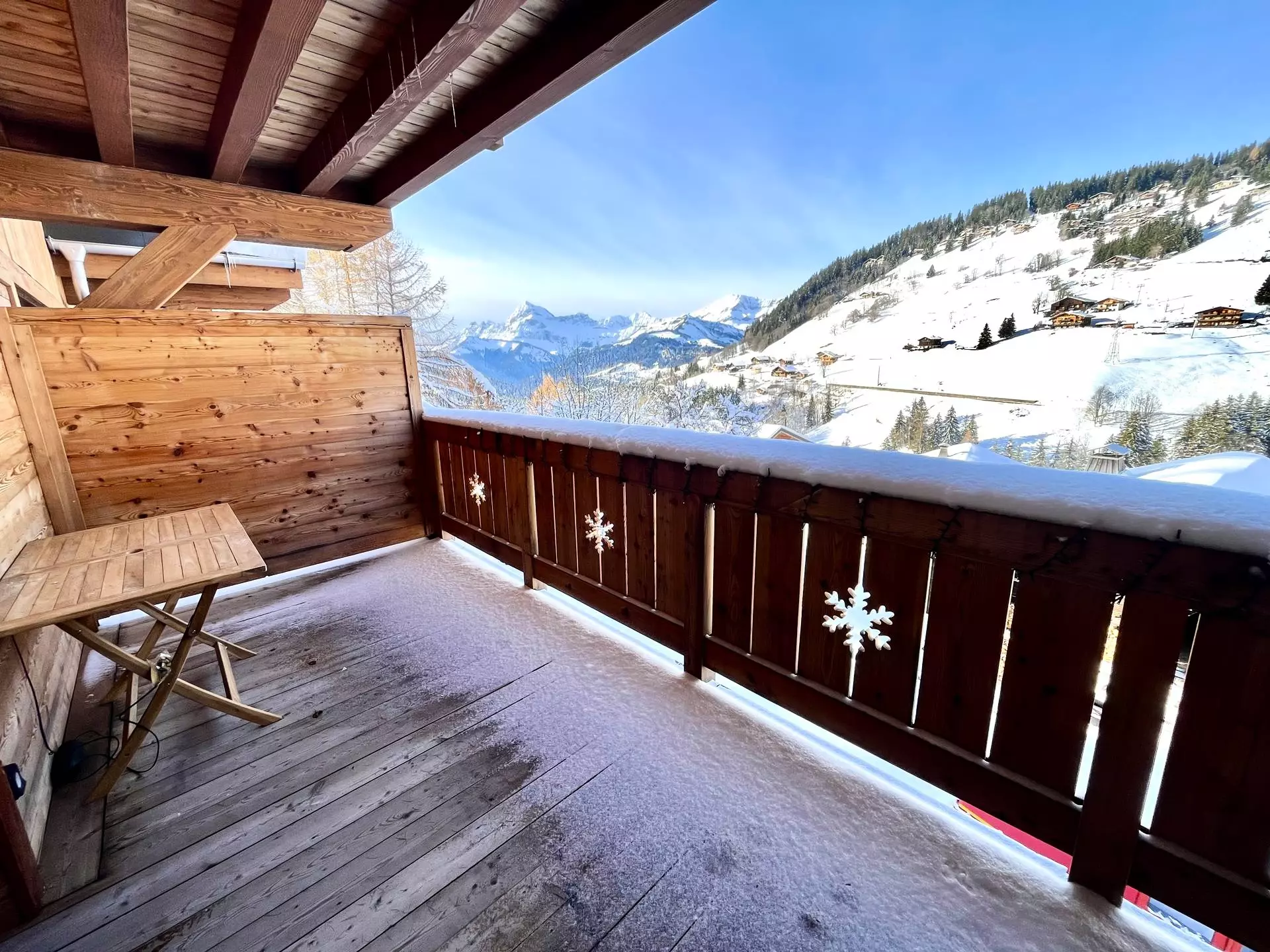 Appartement récent en duplex d'une surface de 55 m² pour 4 à 6 voyageurs, situé au 2ème et 3ème étage d'une résidence avec ascenseur. Ce dernier comporte deux terrasses en exposition Nord Ouest avec vue sur le Mont Charvin et les montagnes environnantes.
