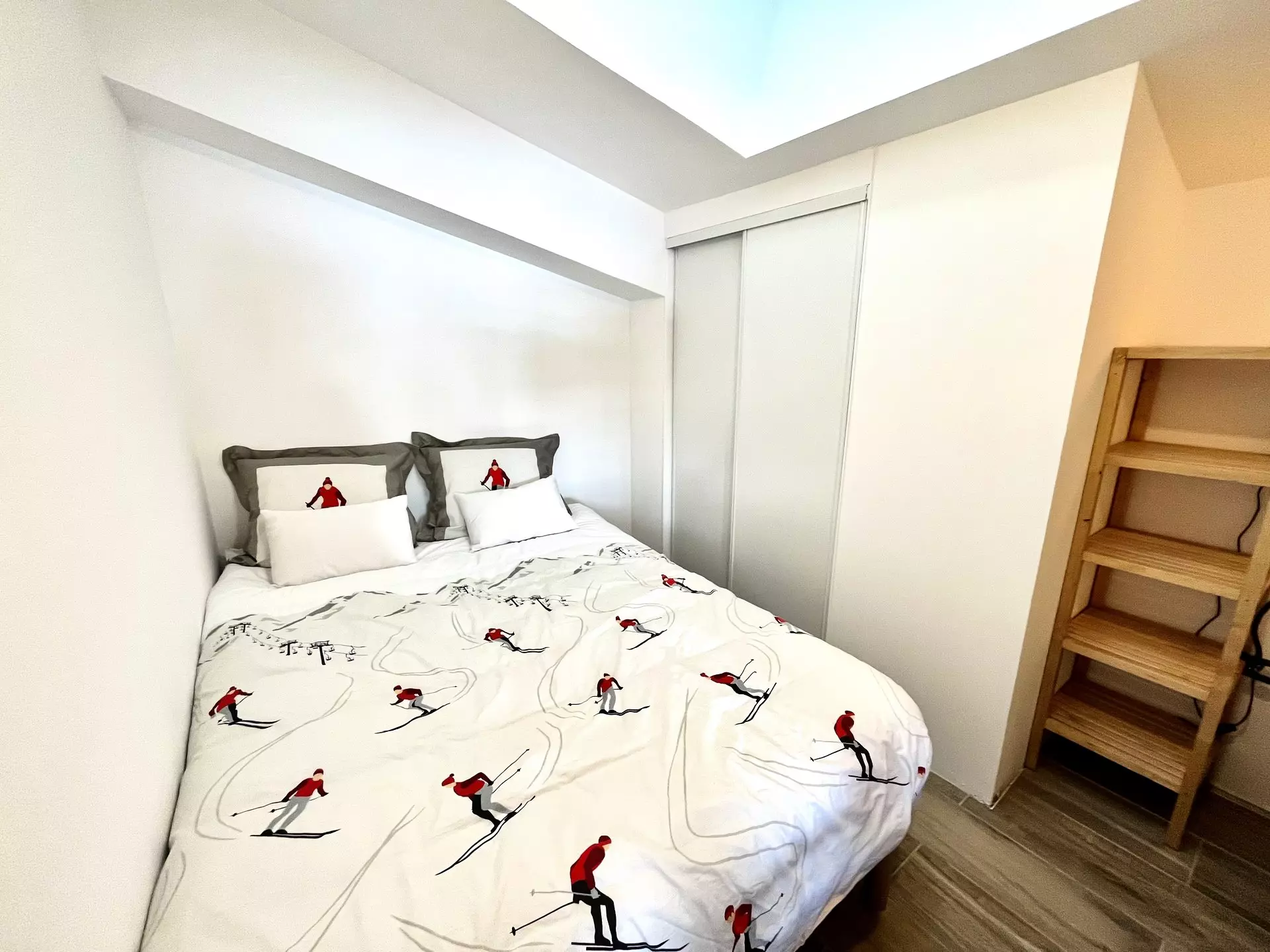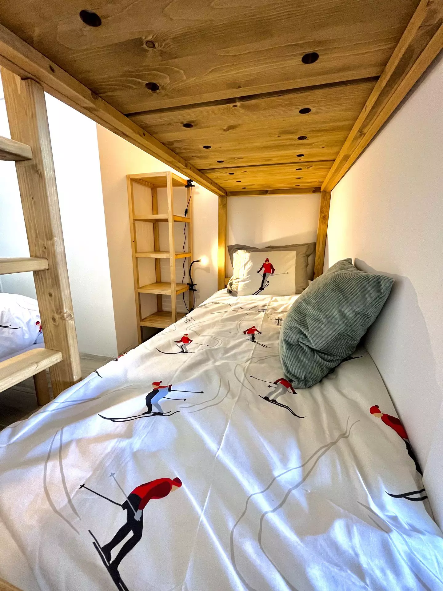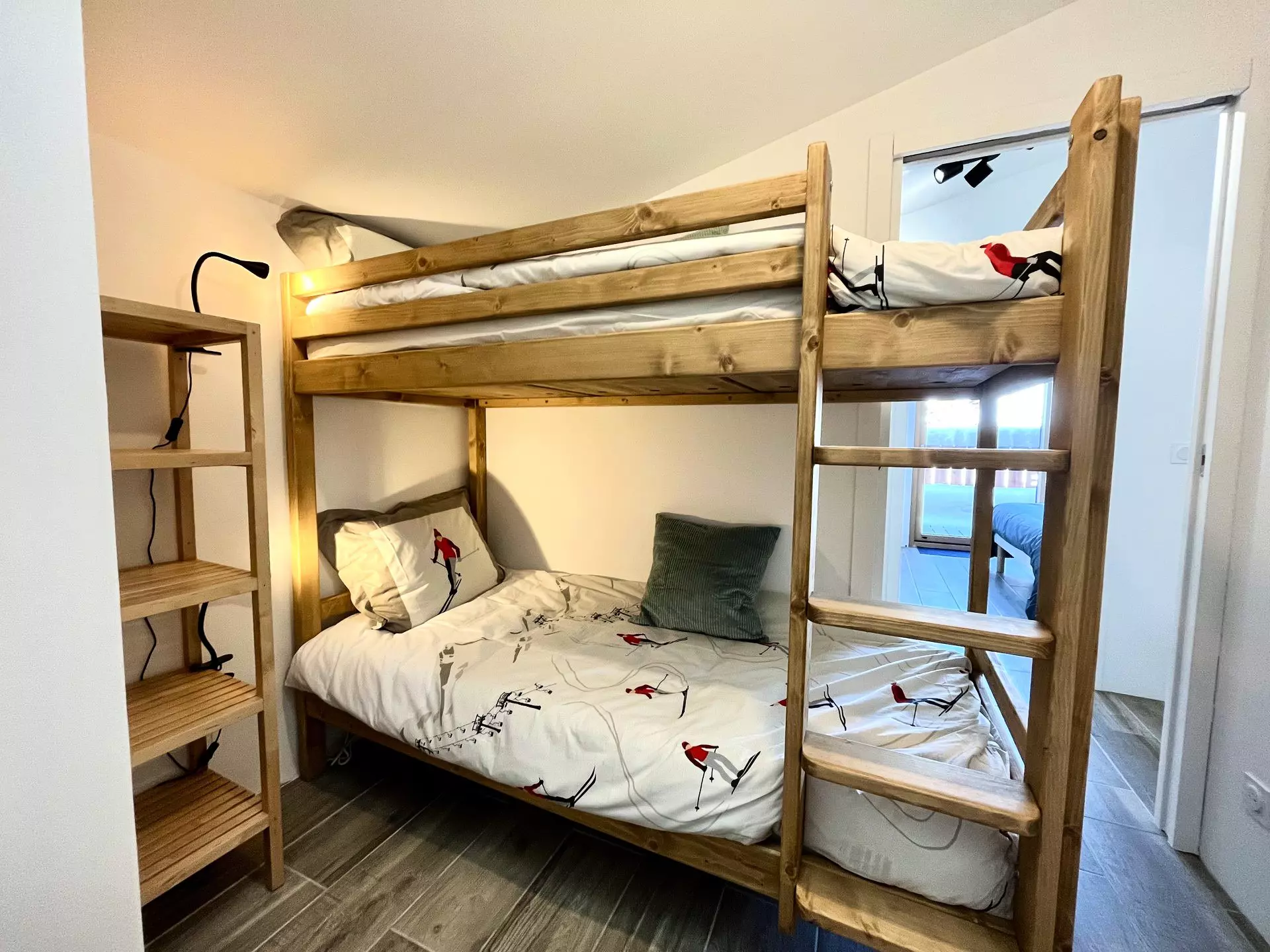 - Une chambre avec placards, un lit double (140 cm) et lits superposés (2 * 90 cm)
