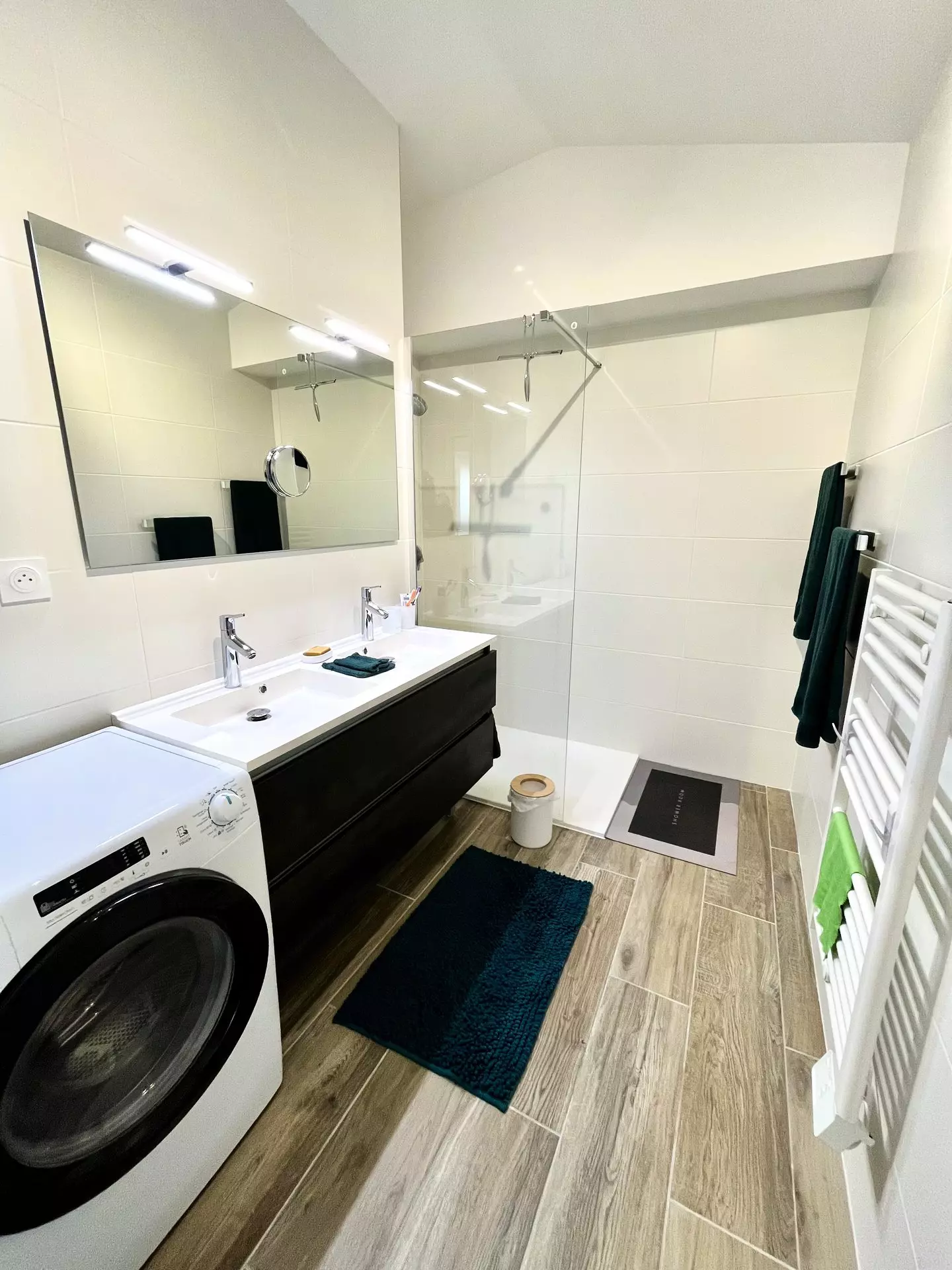 - Une salle d'eau avec double vasque et lave-linge