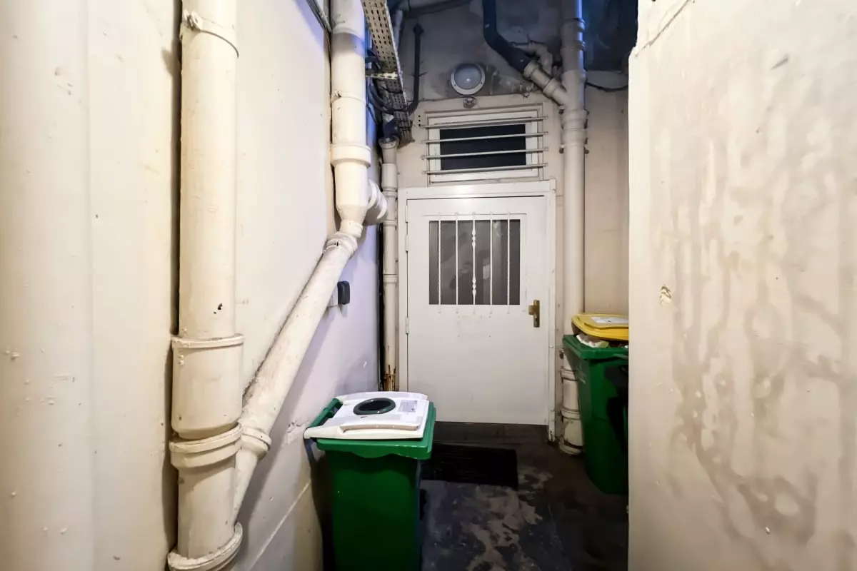 Localisé au rez-de-chaussée sur cour intérieure contenant les poubelles (voir photo), le logement comprend :