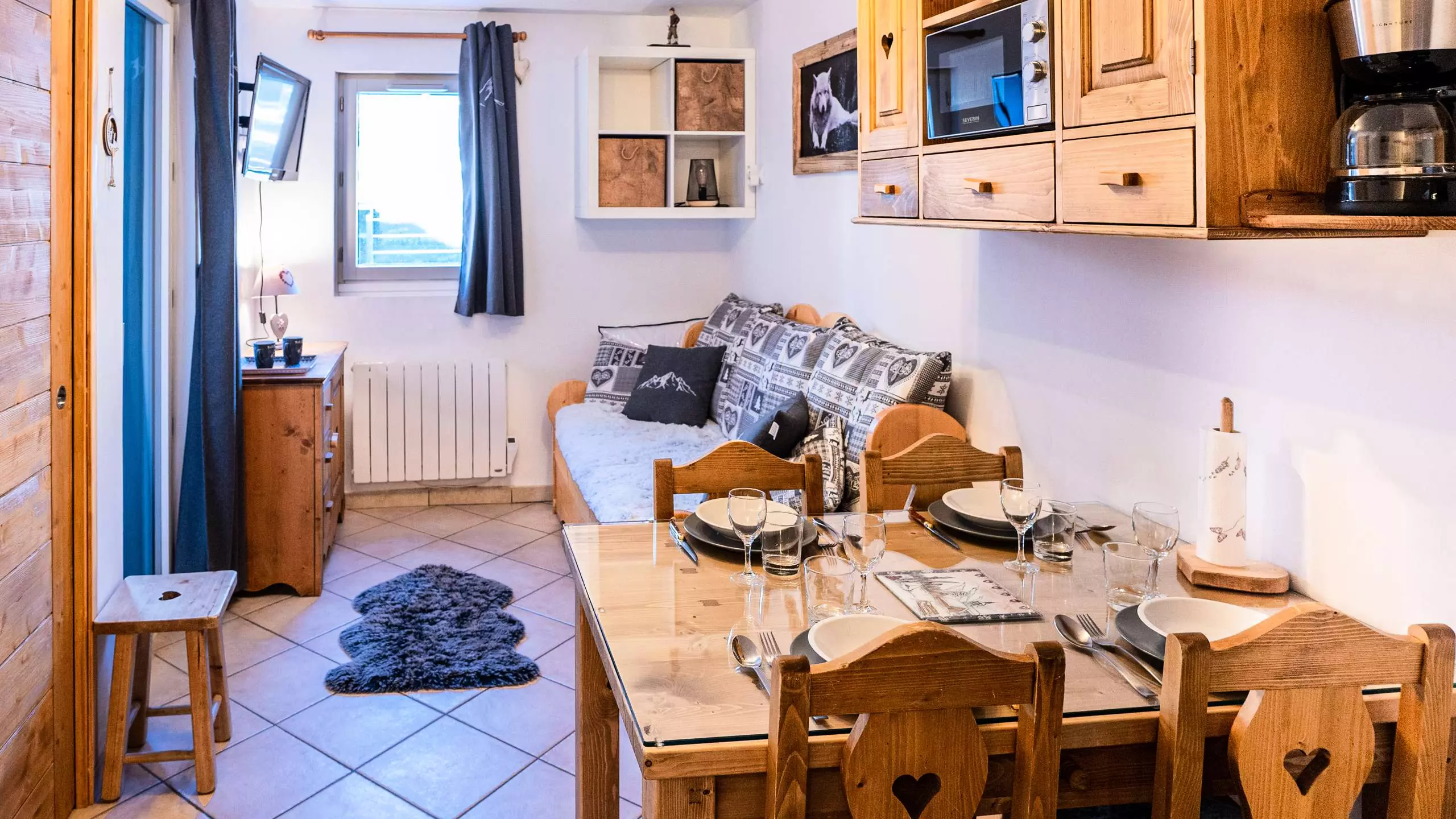 Appartement rénové dans un style montagne avec des boiseries de 22 m² pour 4 personnes au 6ème étage avec ascenseur. Vue Nord avec petit balcon.