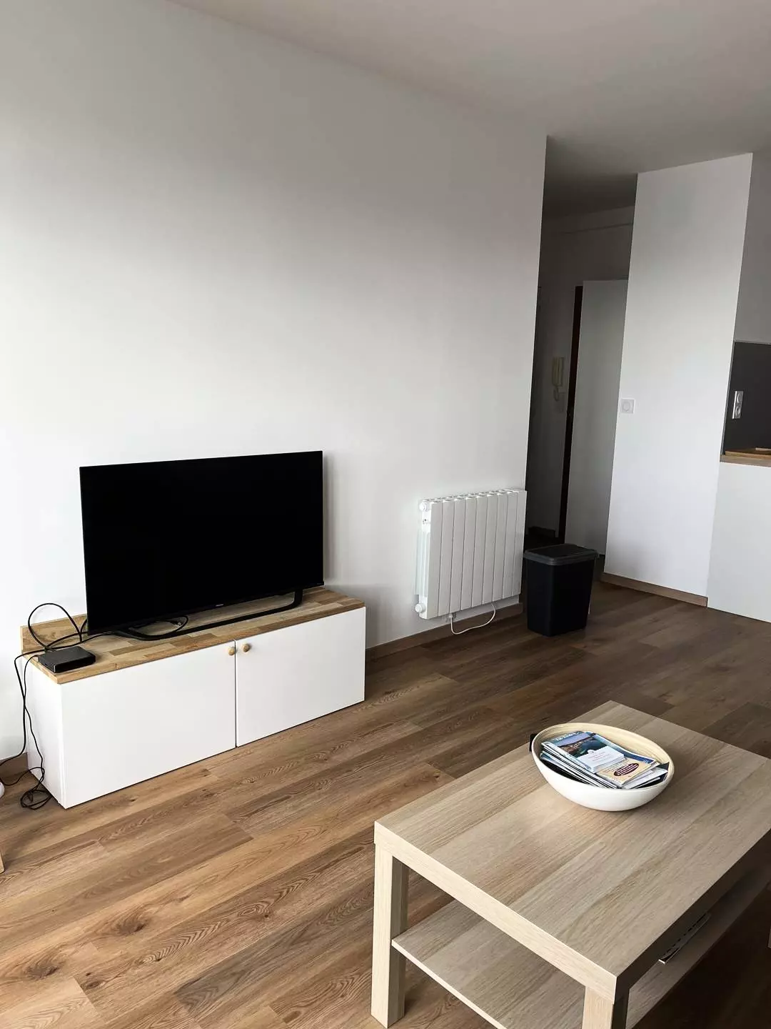 -Un salon/séjour avec canapé convertible (140*190cm), télévision, table à manger pour 4 personnes ;