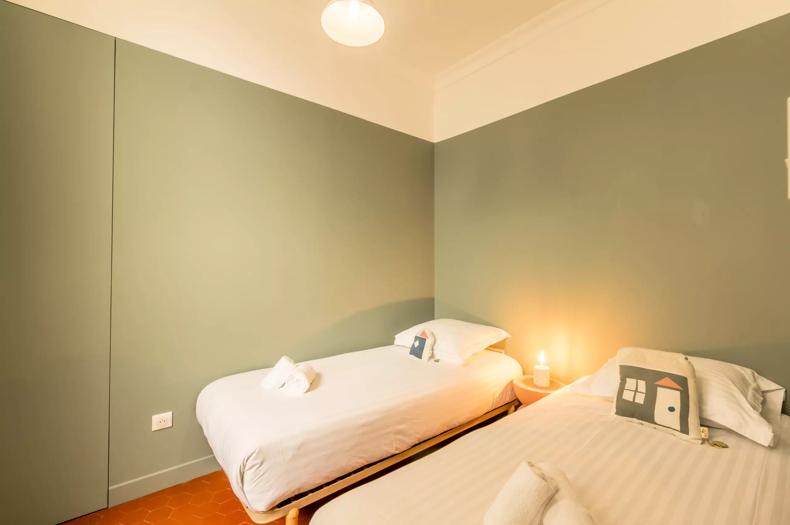 Bel appartement de 57m2, il se compose d’une partie salon séjour et un coin cuisine où prendre son petit déjeuner est un plaisir. Spacieux, il dispose de deux chambres, l’une possédant deux lits simples et la seconde un lit double.