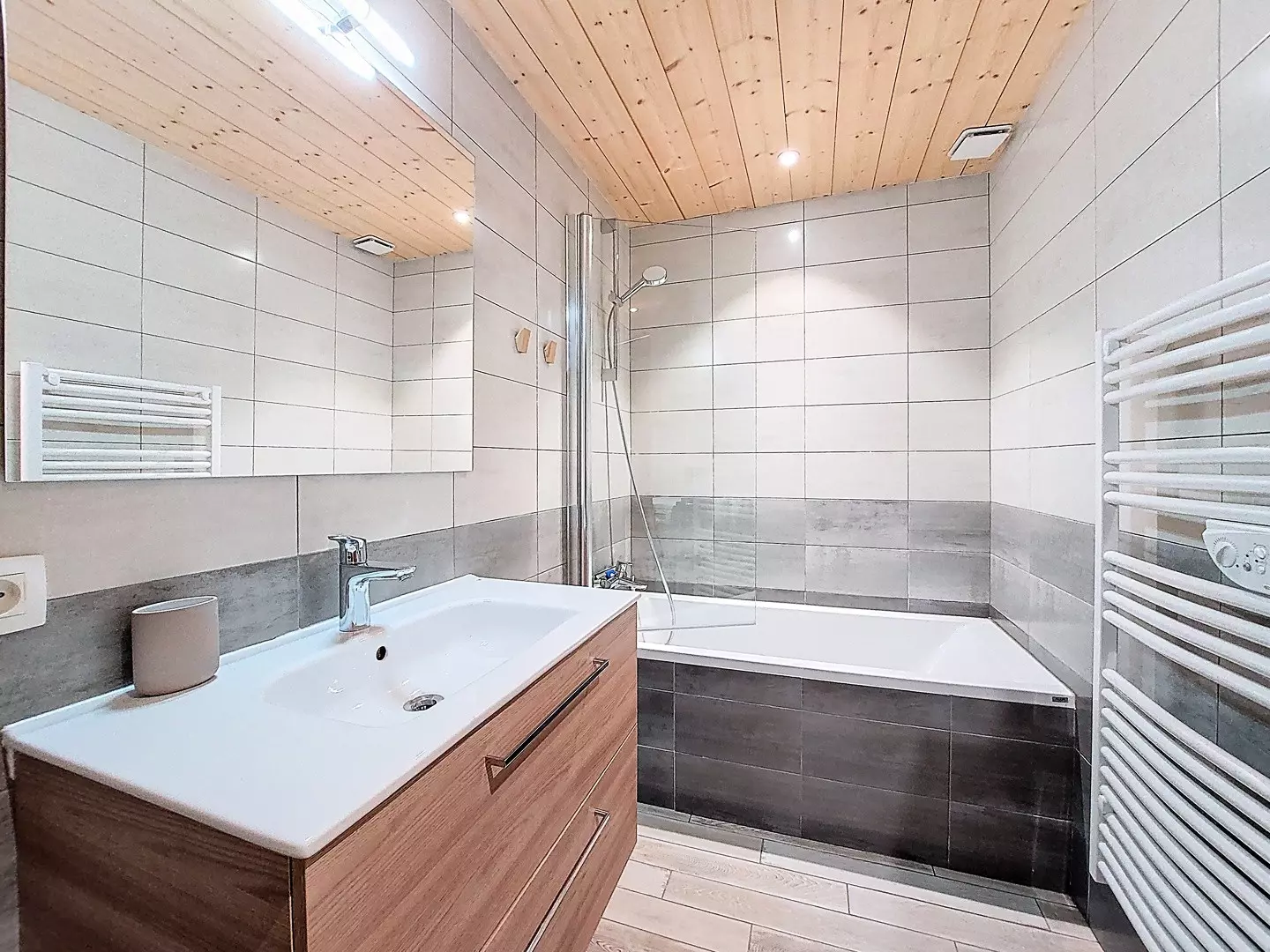 - 1 Salle d'eau avec douche, vasque, WC et sèche serviette