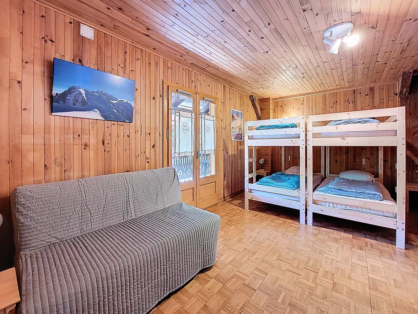 - 1 Chambre avec 2 lits superposés (90x200) et nombreux placards de rangements. Cette chambre dispose d'une porte fenêtre donnant accès au balcon.