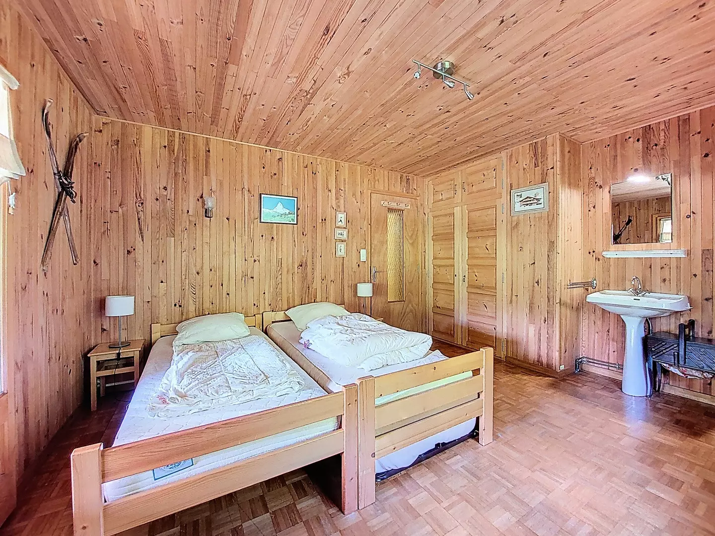 - 1 Chambre avec 2 lits simples et un lavabo ainsi que de nombreux rangements. Cette chambre dispose d'une porte fenêtre donnant accès au balcon.