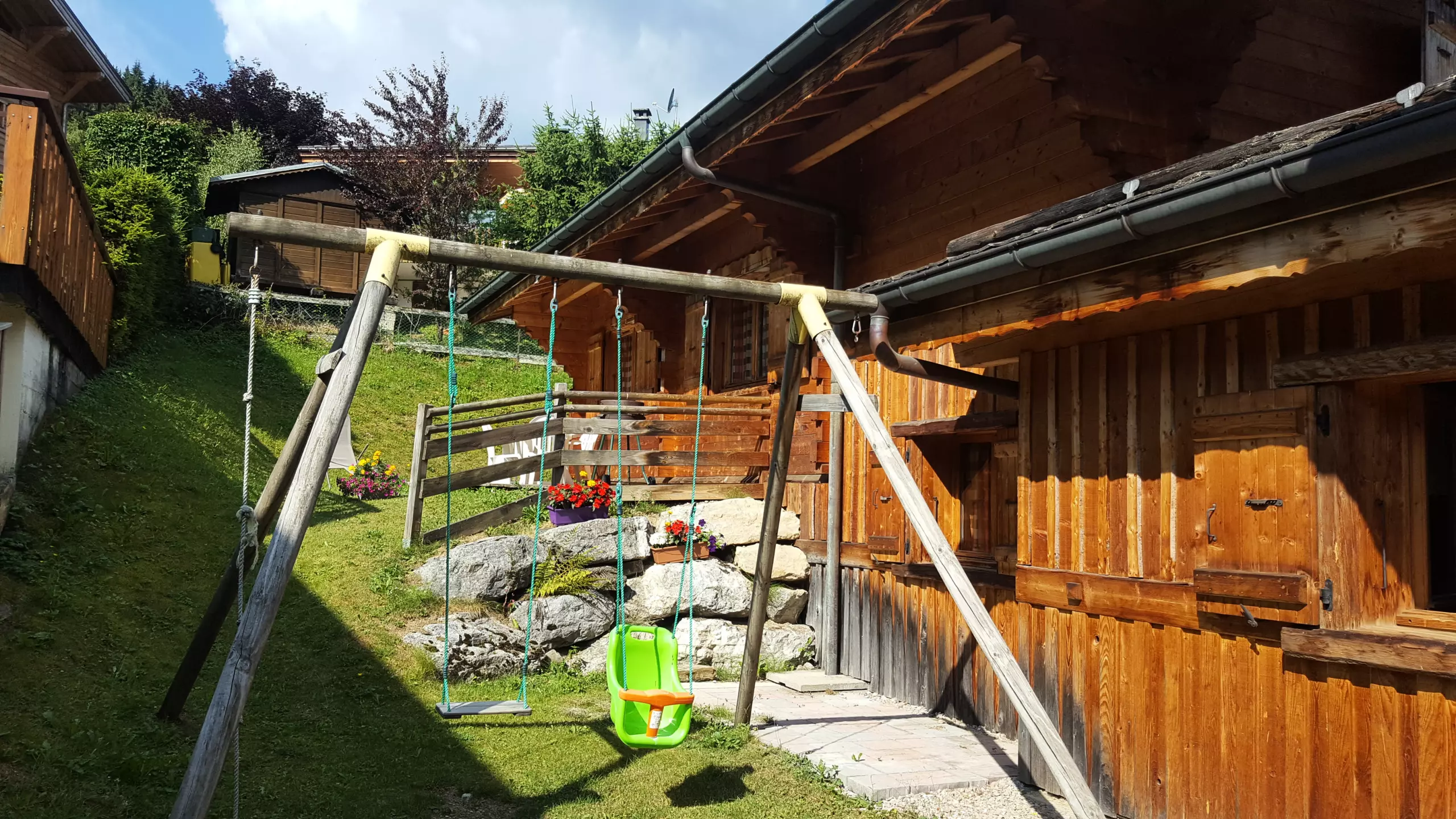 - Une aire de jeux avec balançoire et toboggan