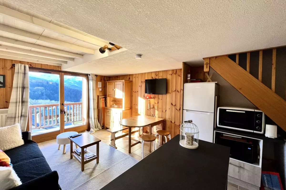 L’appartement dispose d'une vue exceptionnelle sur la Chaîne des Aravis, sur le Mont Joly et sur l'Aiguille de Varan.