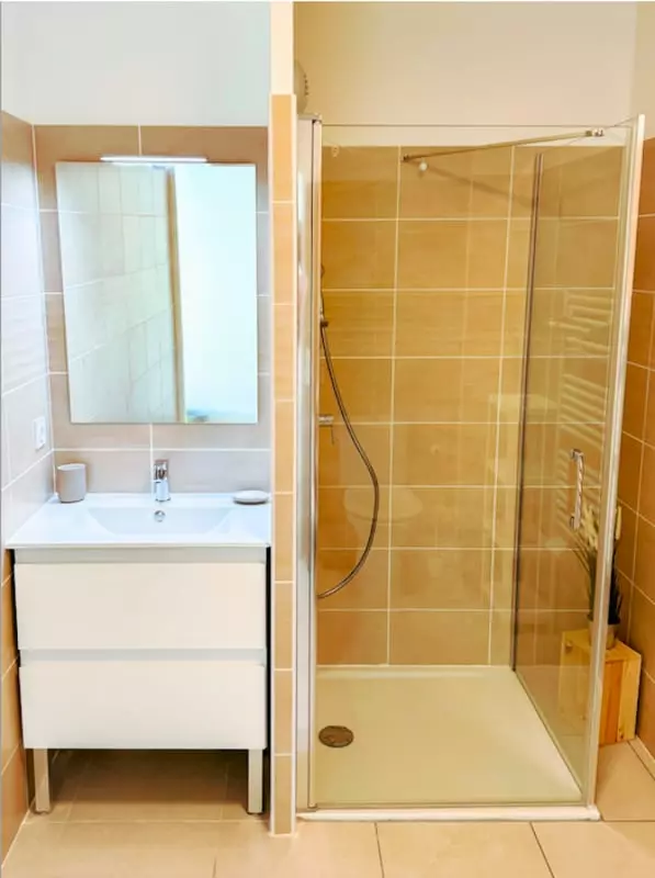 - un espace de vie avec un coin salon équipé d'un lit (80x200 ou 160x200) et un joli coin repas ;