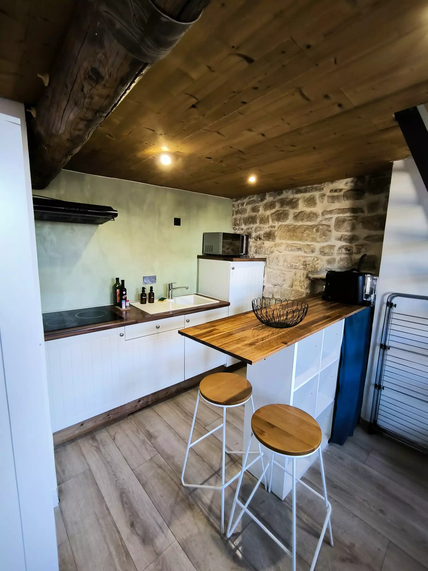 ? Cuisine américaine équipée : vitrocéramique, micro-ondes, réfrigérateur, congélateur, cafetière, bouilloire et tout le nécessaire pour cuisiner comme à la maison
