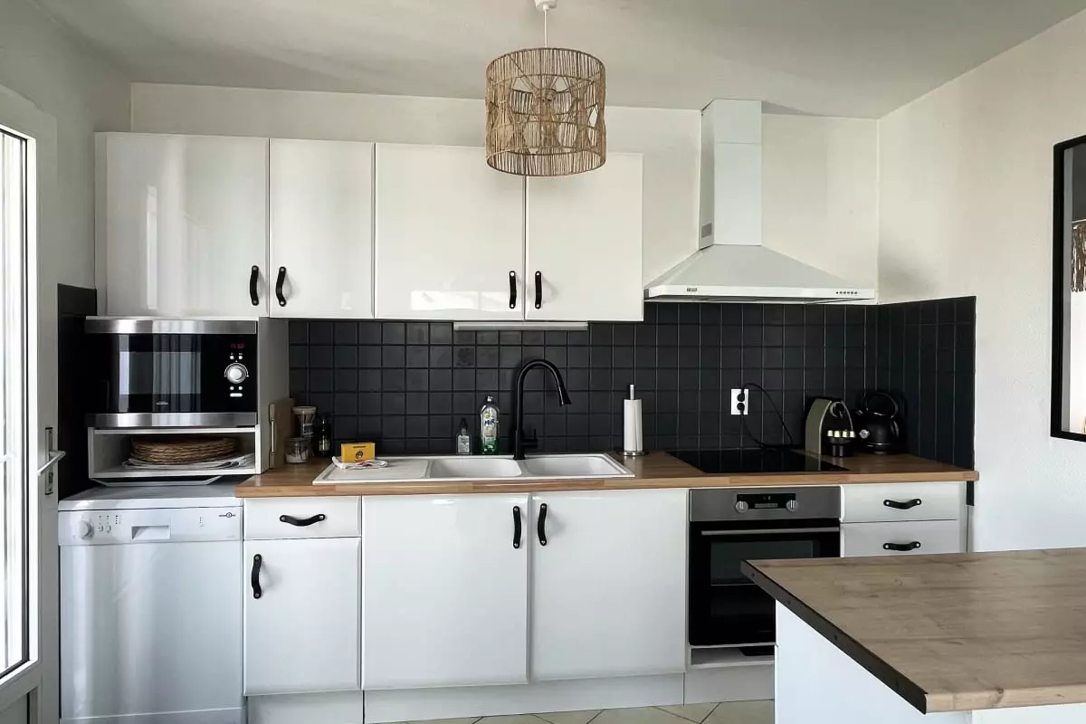 Il y a trois chambres chacune équipée d'un lit double, avec des grands dressings. La cuisine est entièrement équipée, avec un four, un micro-ondes, un lave vaisselle, une machine à café Nespresso, et une bouilloire.