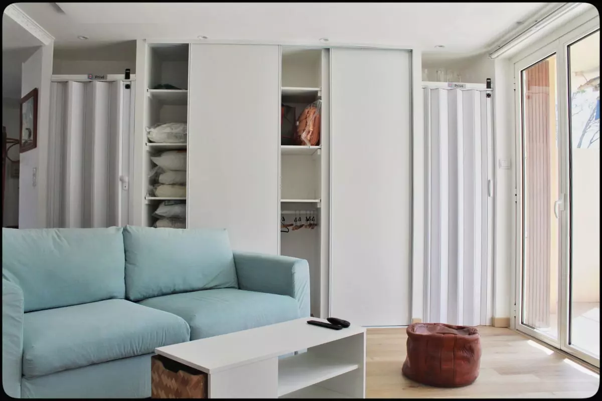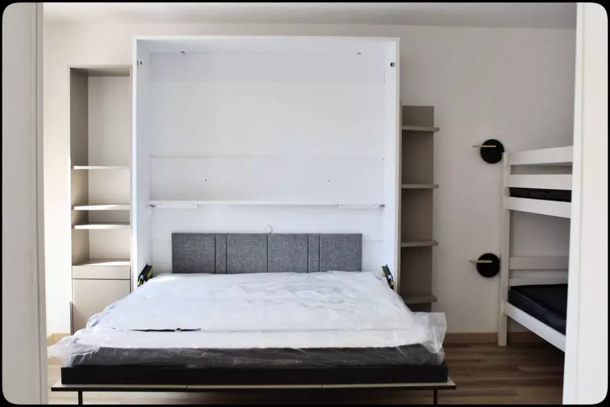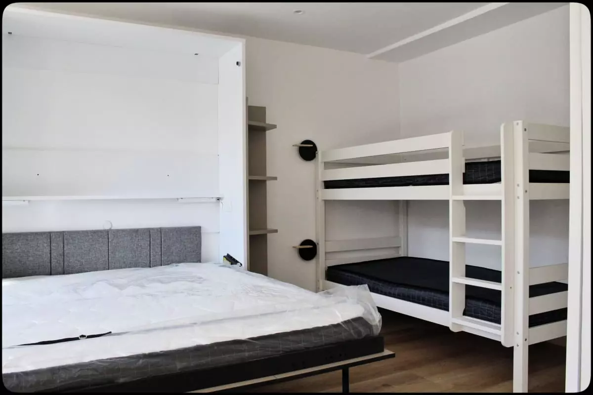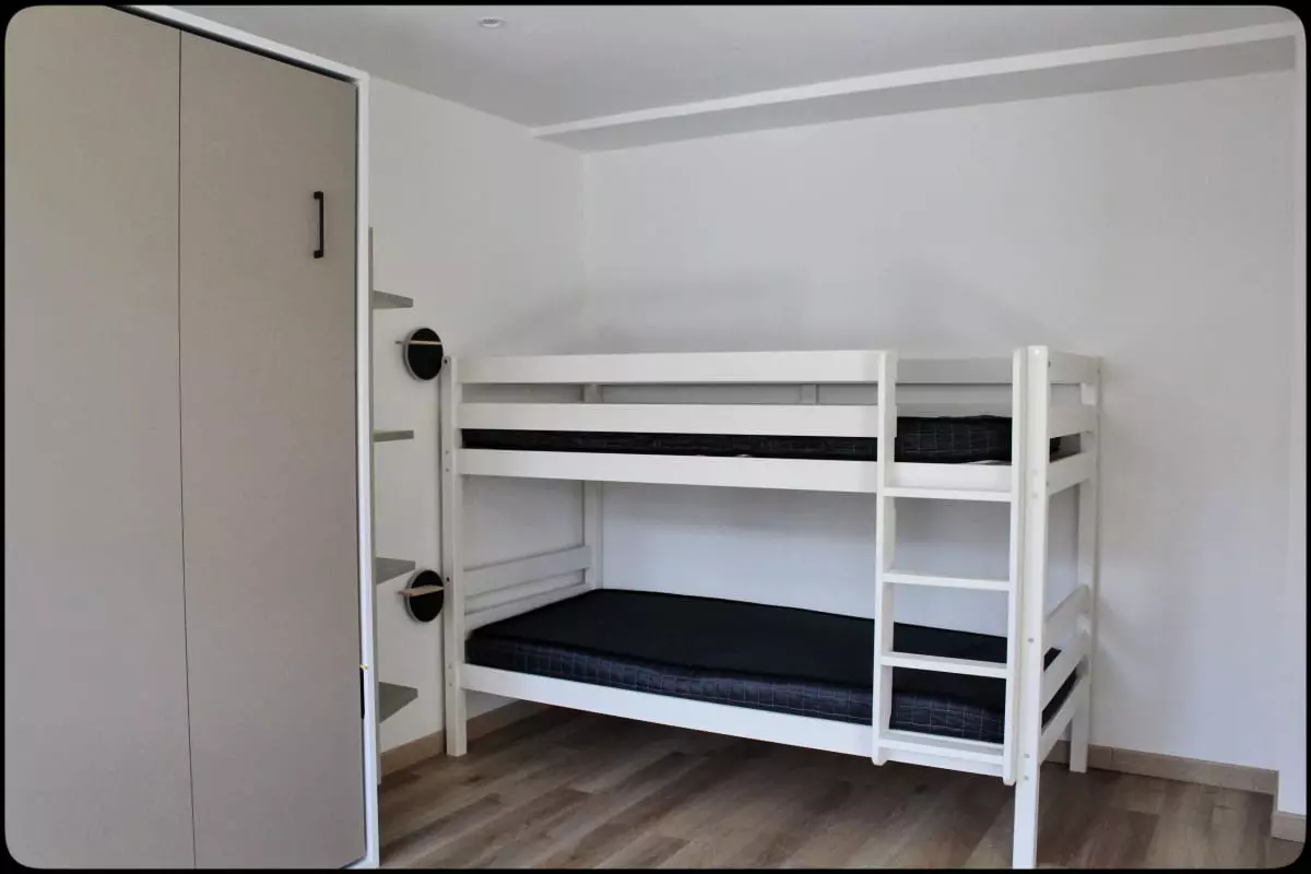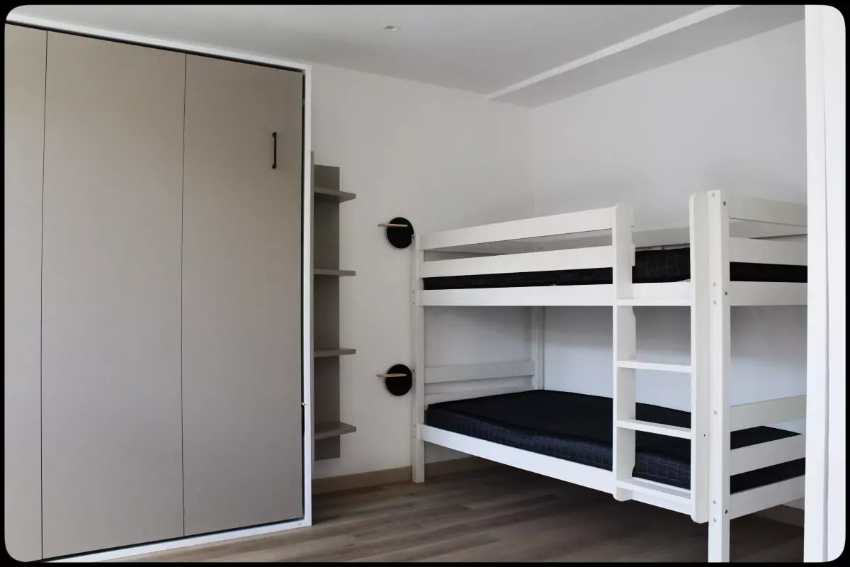 - une seconde chambre avec un lit escamotable et un lit superposé ;