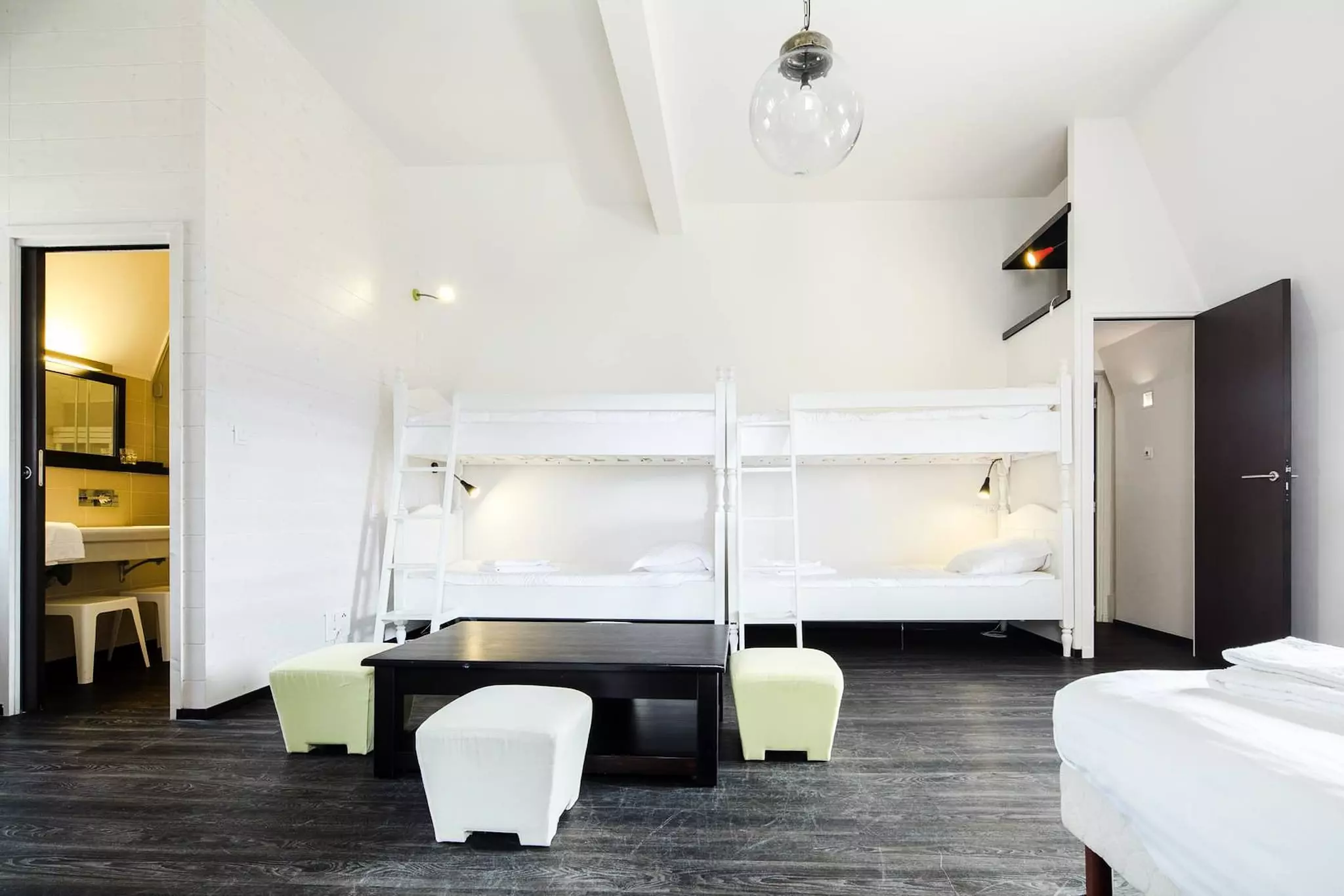 - Chambre 4 (Dortoir) : 6 lits simples dont 2 superposés, avec salle d’eau et WC (1er étage).