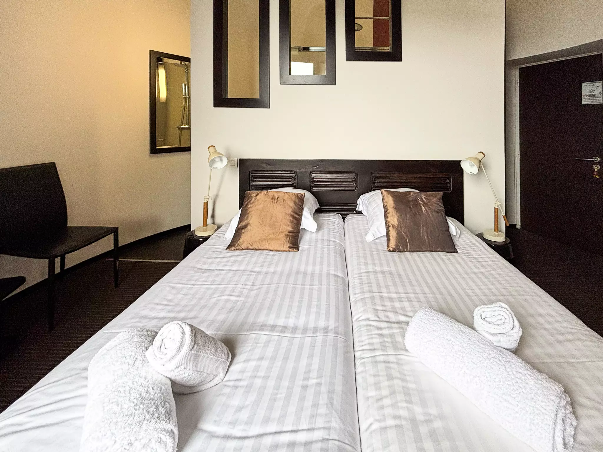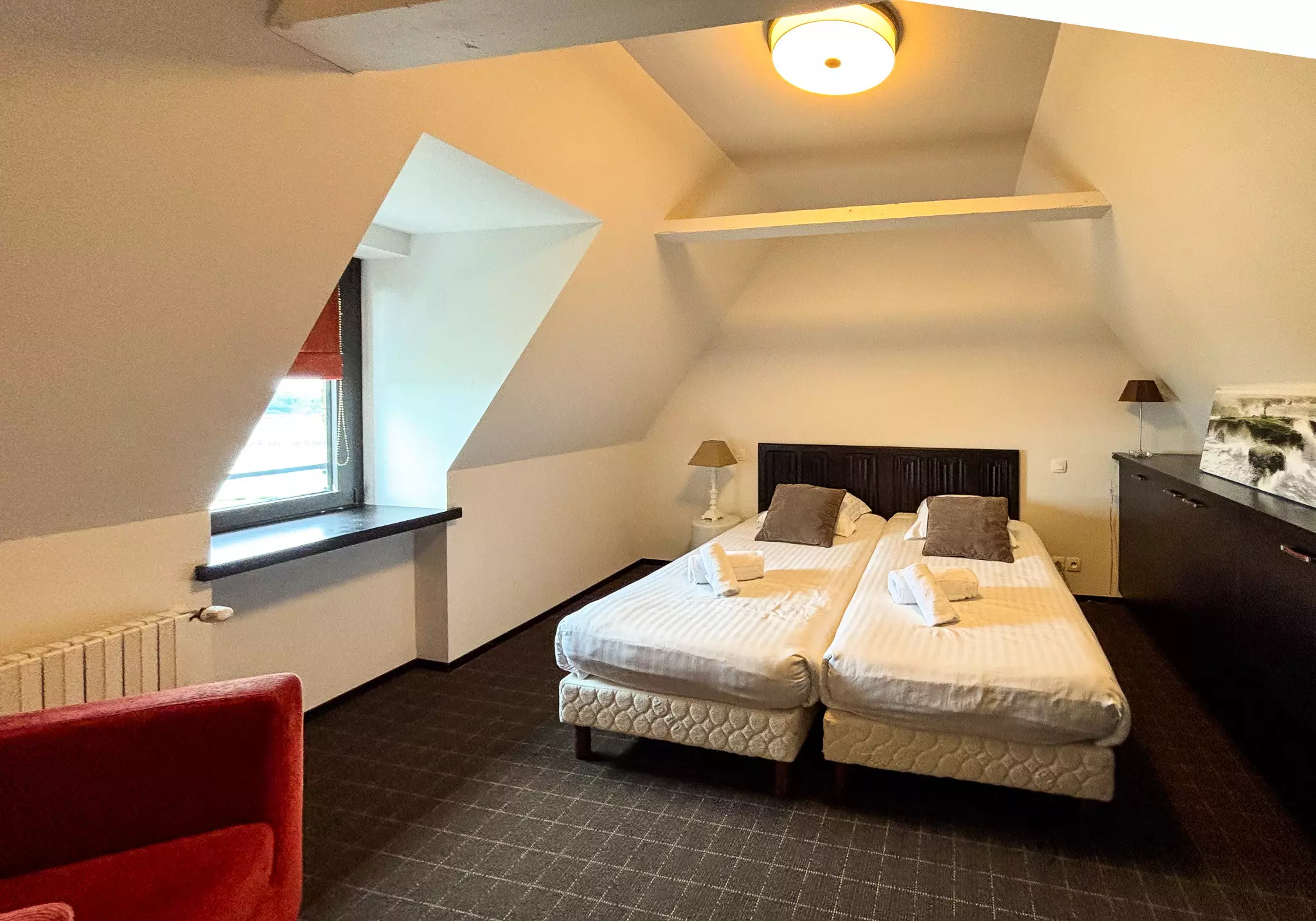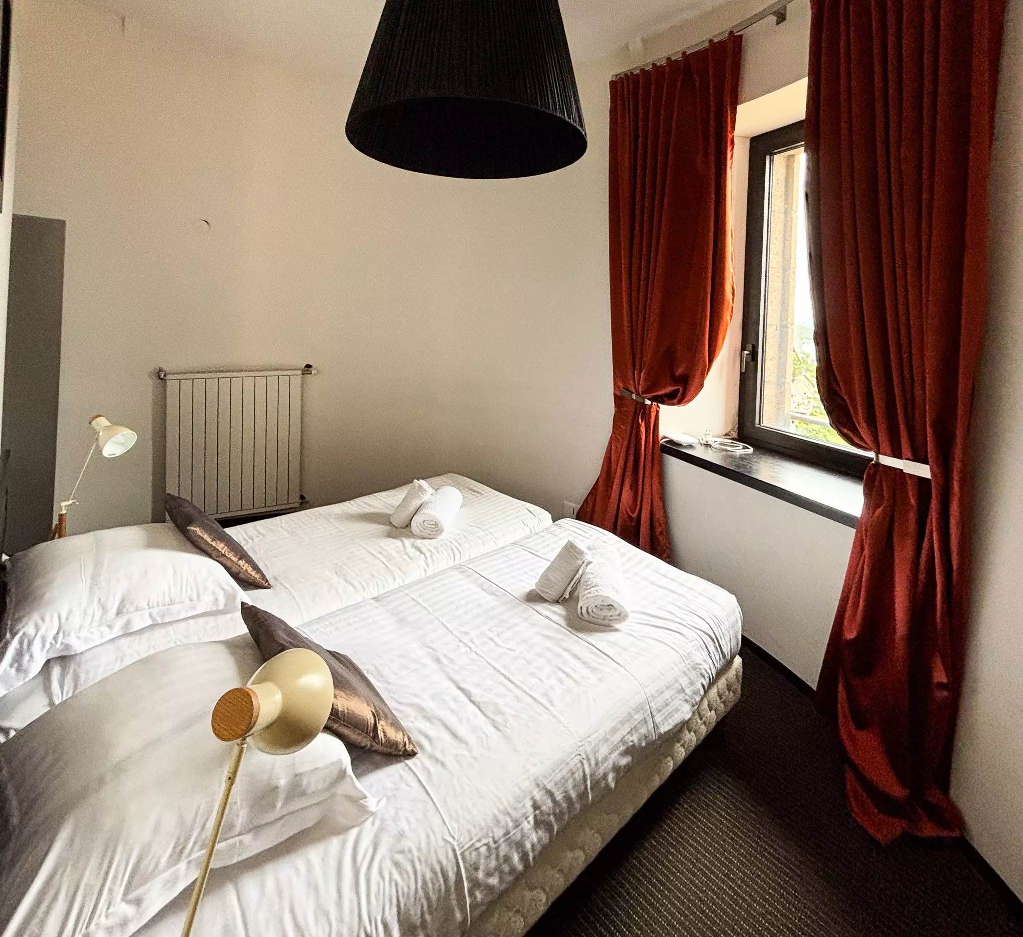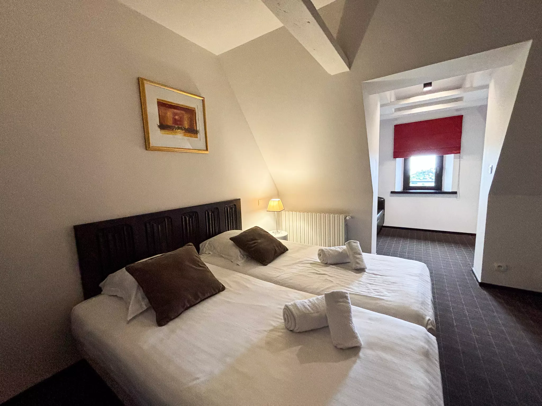 - Chambre 8 : 2 lits simples, avec salle d’eau et WC privés (2e étage).