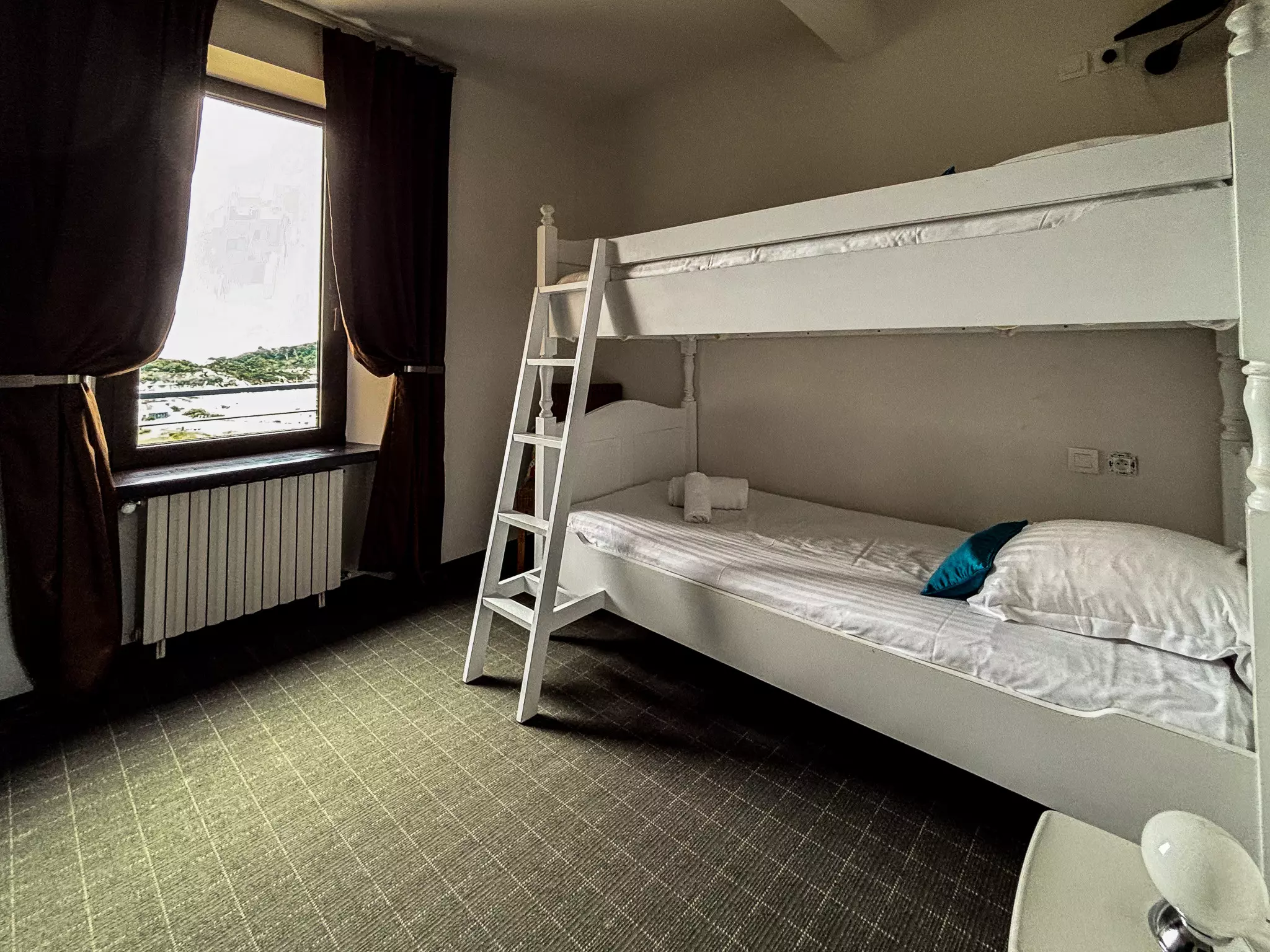 - Chambre 6 : 2 lits simples, partageant une salle d’eau et WC avec la Chambre 7 (2e étage).