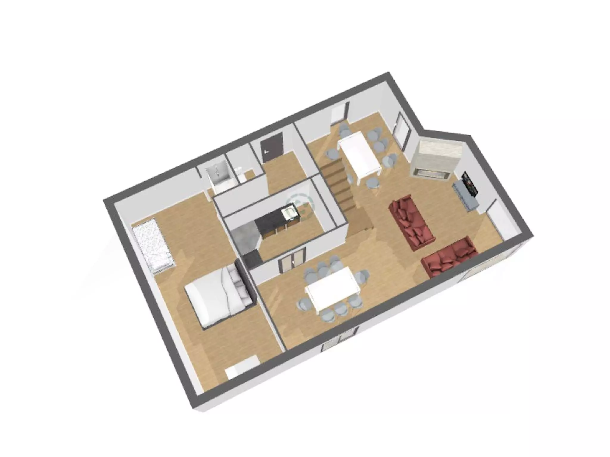 - Chambre 2 (étage) : 1 lit double en 160 cm.