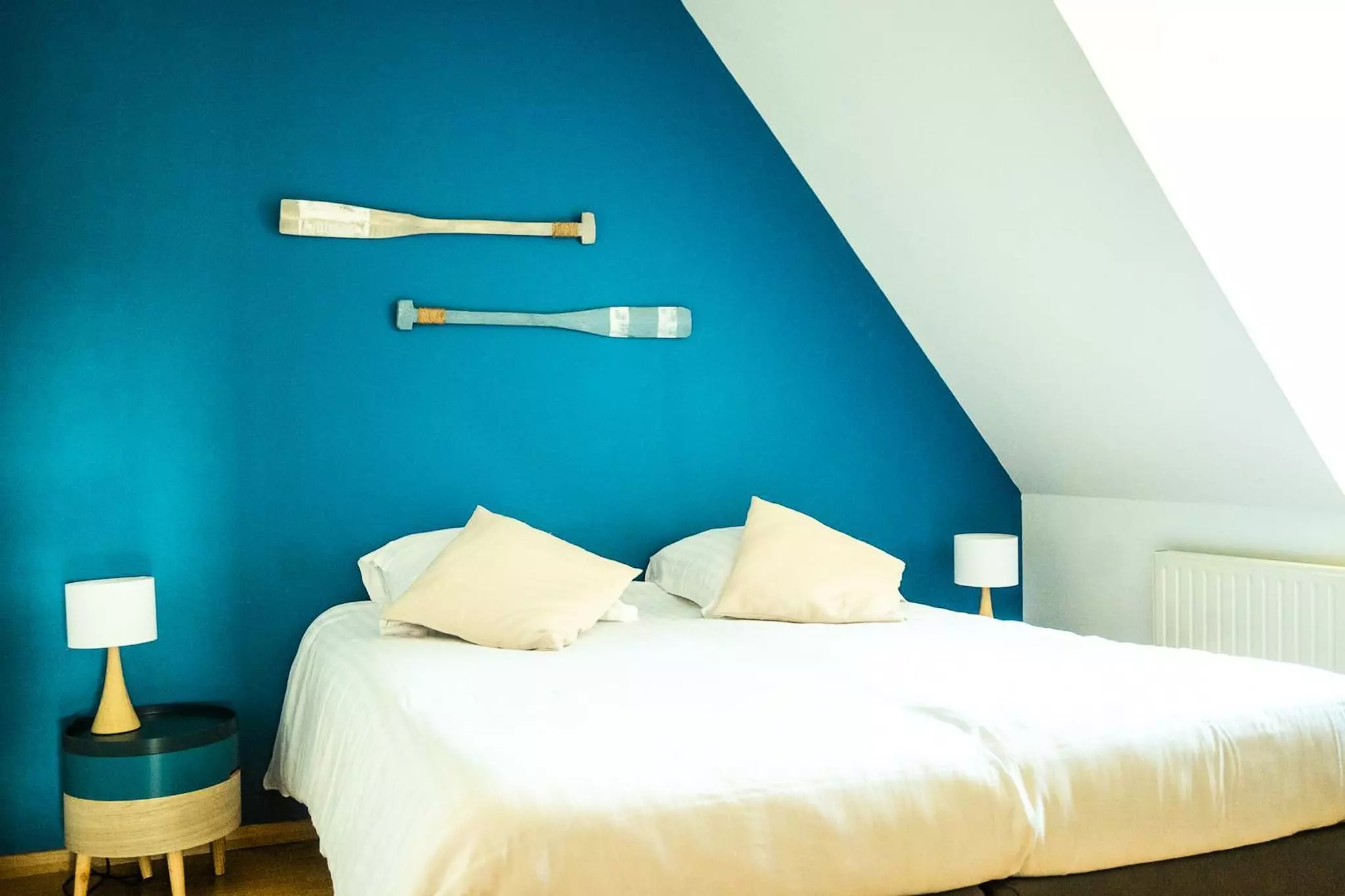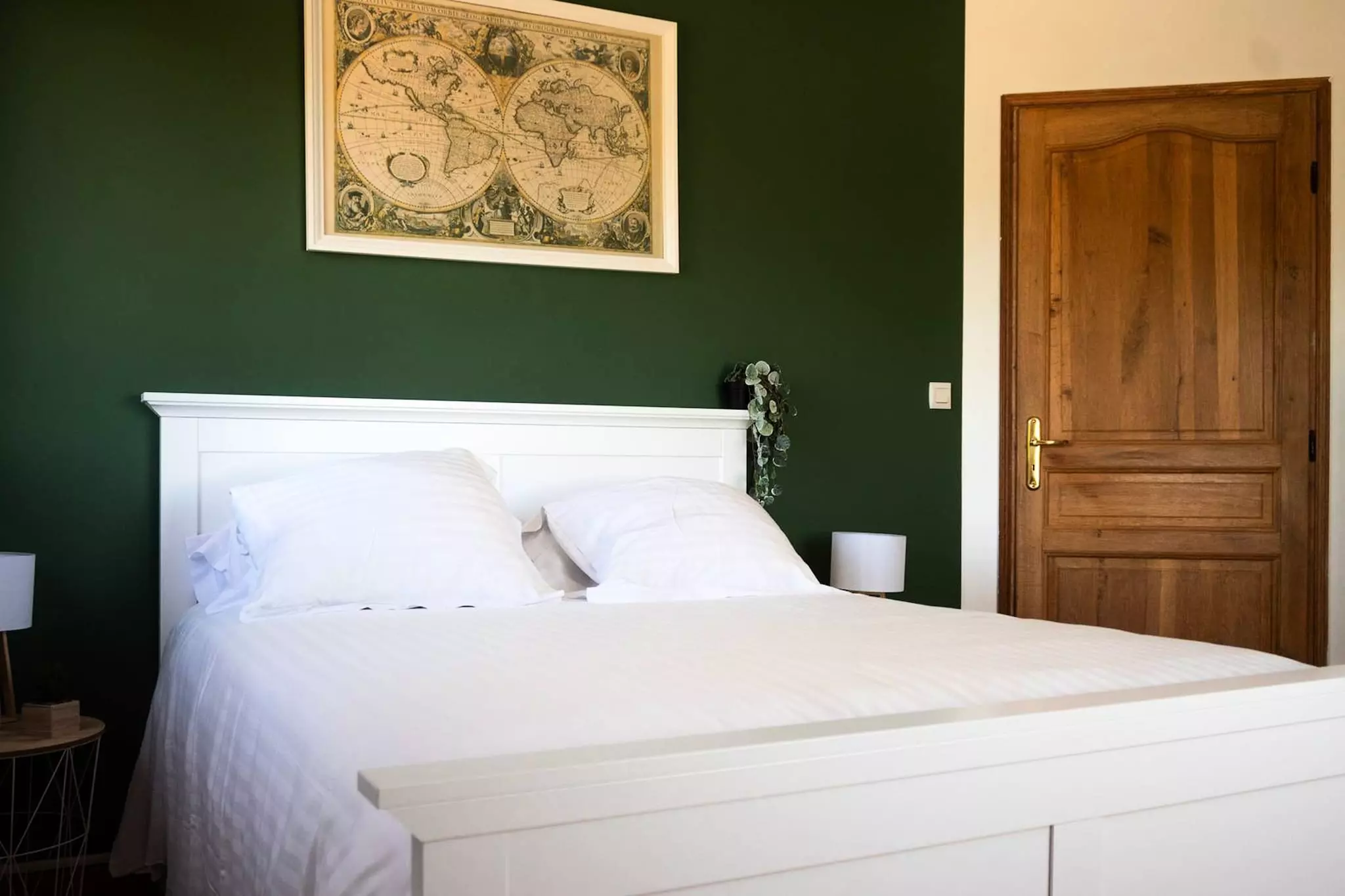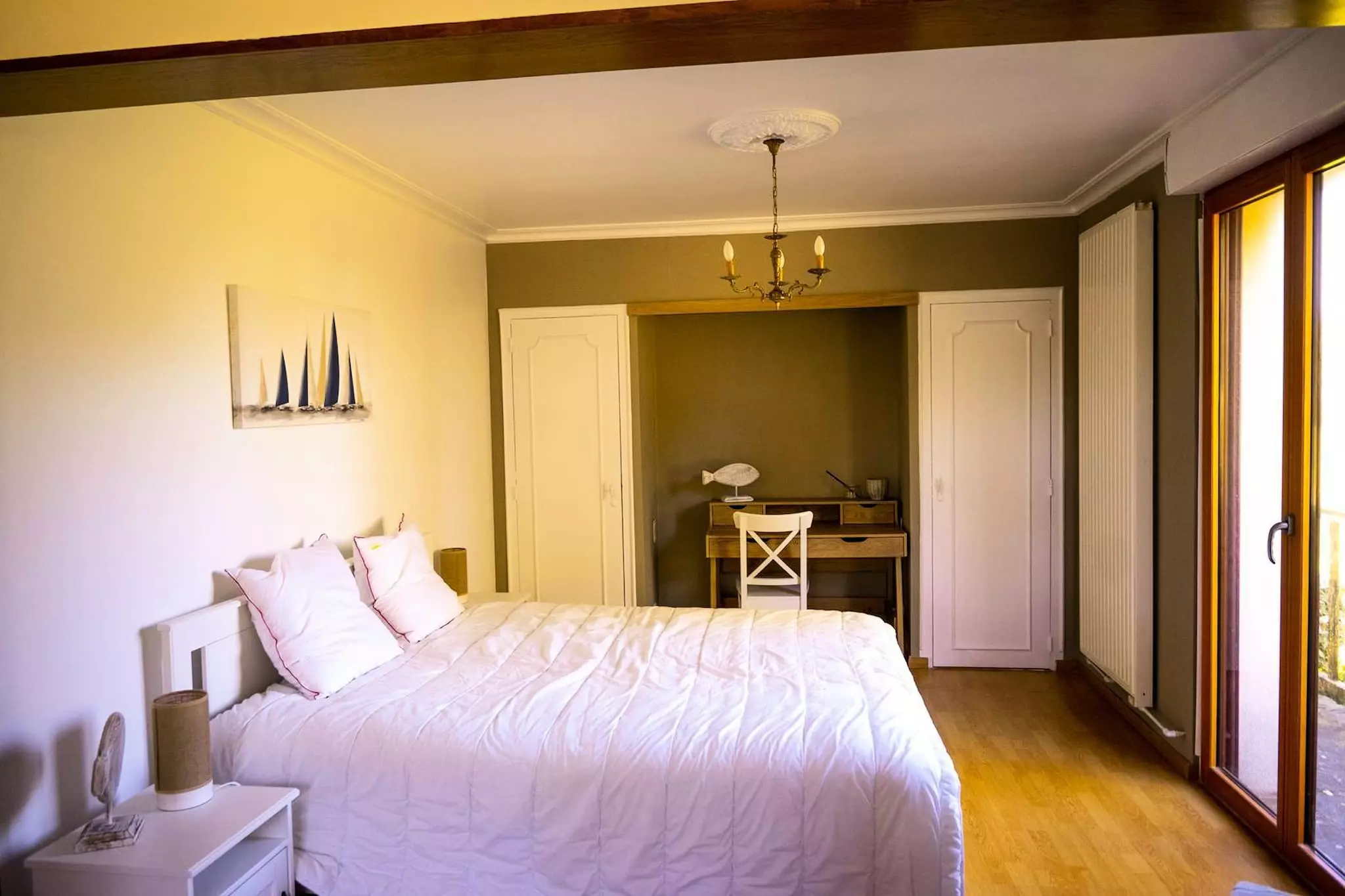 - Chambre 1 (rez-de-chaussée) : 1 lit double en 160 cm et 1 lit d'appoint en 140 cm, avec salle d’eau privative et espace bureau.