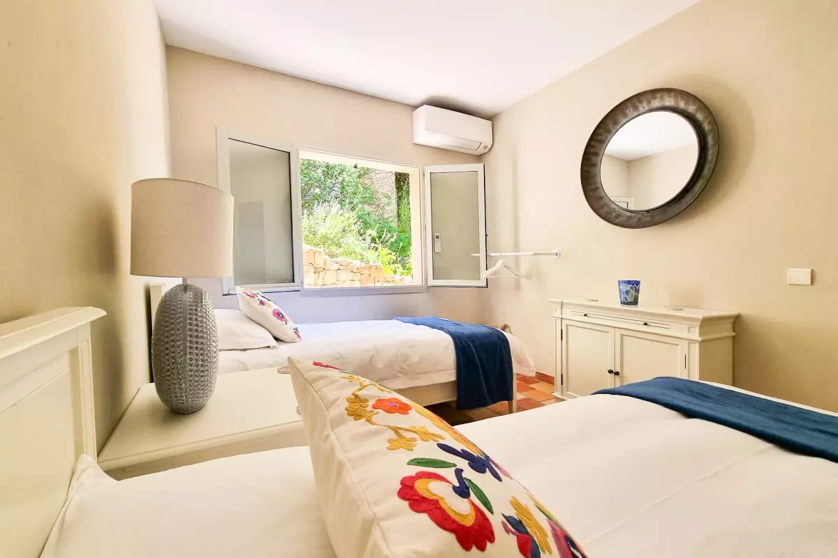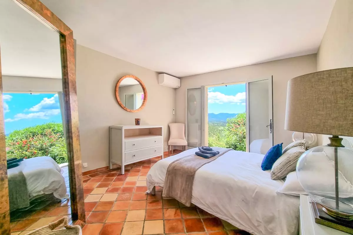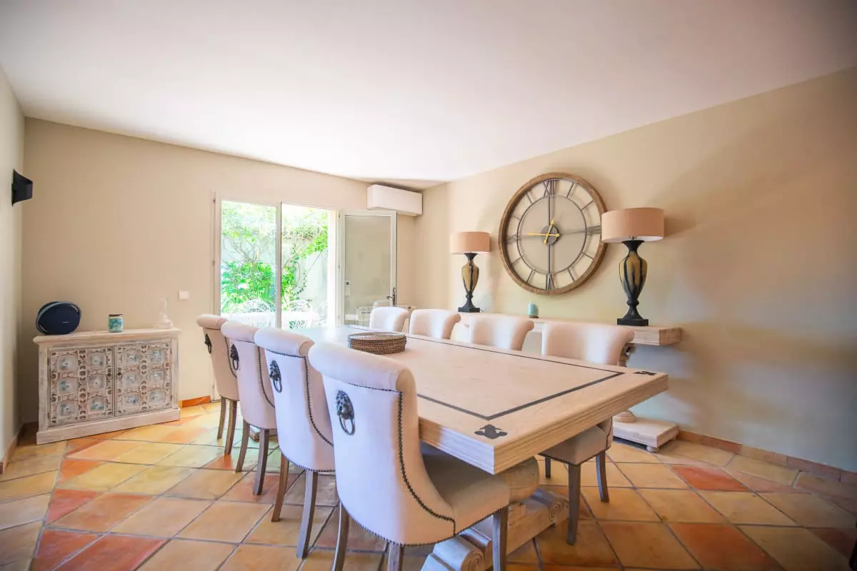 Bienvenue à Roquebrune-sur-Argens, dans un domaine calme avec vue panoramique sur le massif de l’Estérel. Cette villa entièrement rénovée de 200 m² accueille confortablement jusqu’à 10 personnes dans 5 chambres, idéale pour des vacances en famille ou entre amis entre mer et campagne, à proximité de Fréjus, Saint-Raphaël, Saint-Tropez et Cannes.