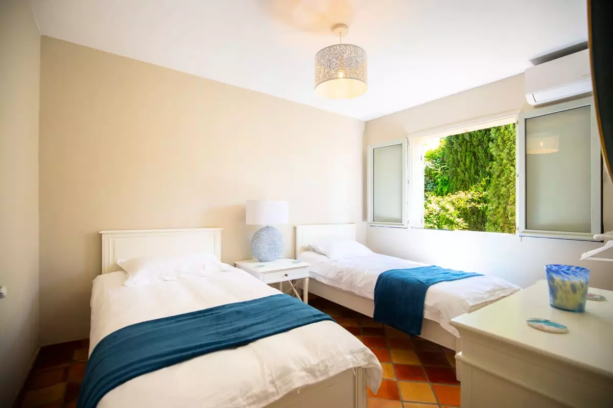 Une chambre avec deux lits simples, idéale pour les enfants ou des amis.