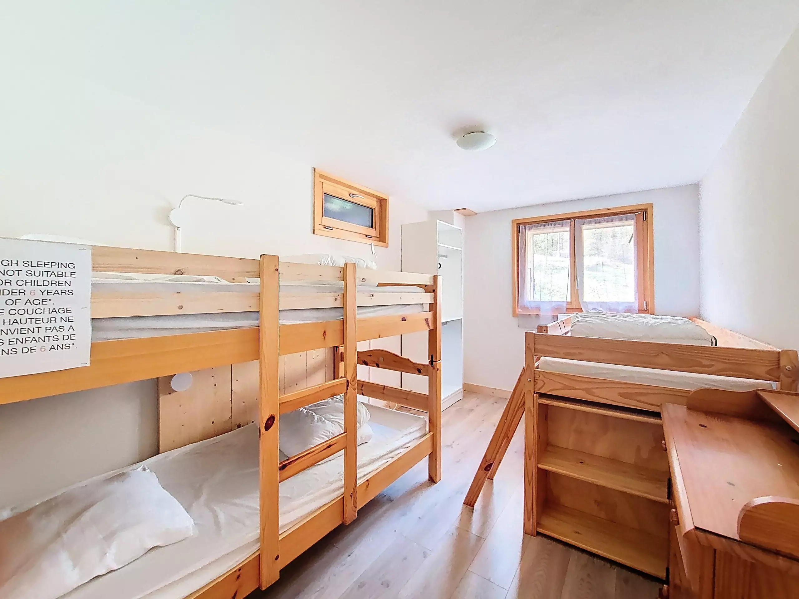 - 1 Chambre dortoir avec 1 lit superposé (90x190) et un lit simple (90x190), fenêtre exposée Ouest vue vallée.