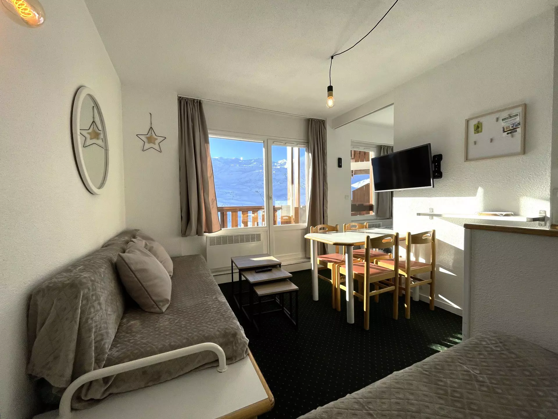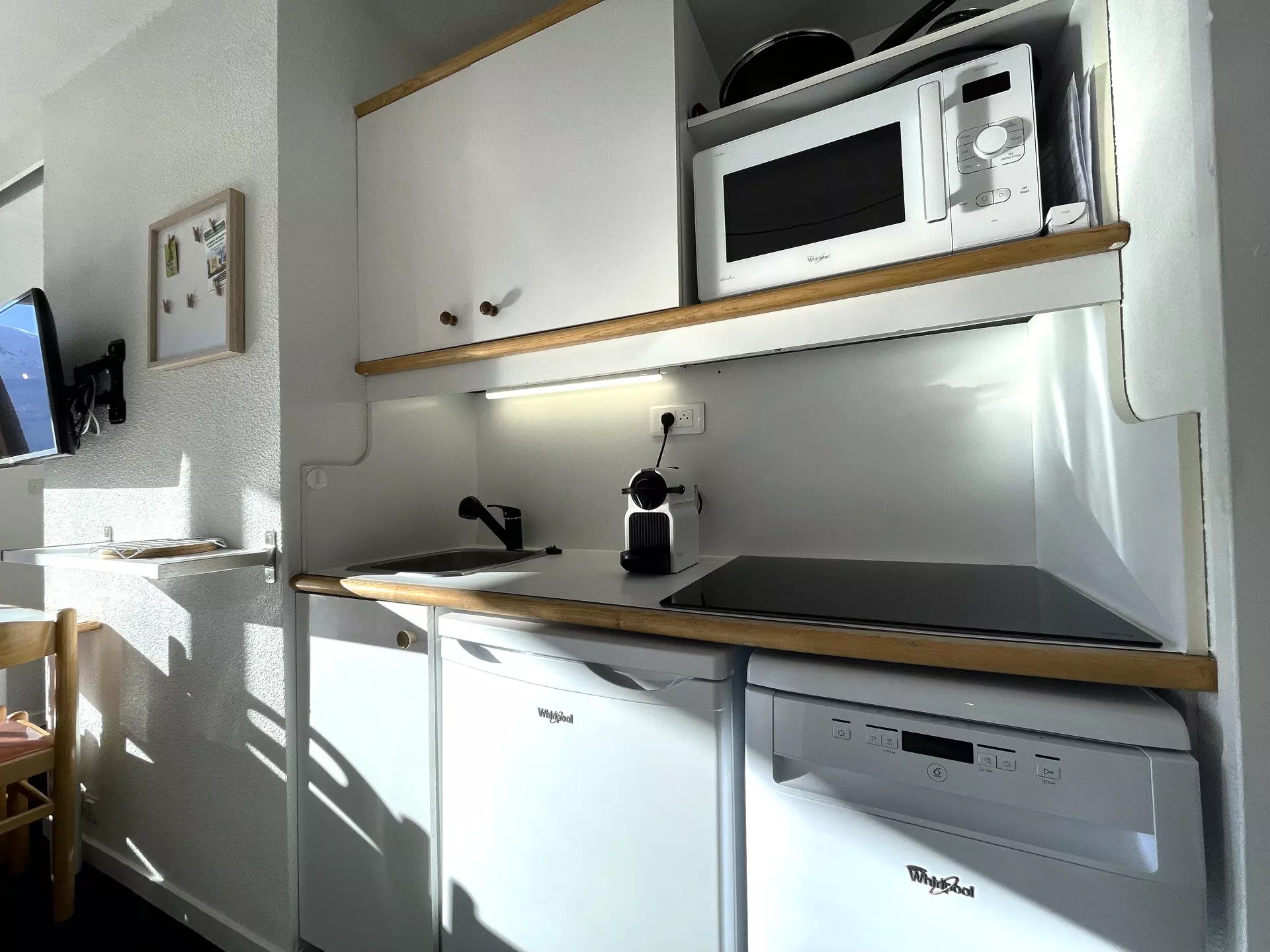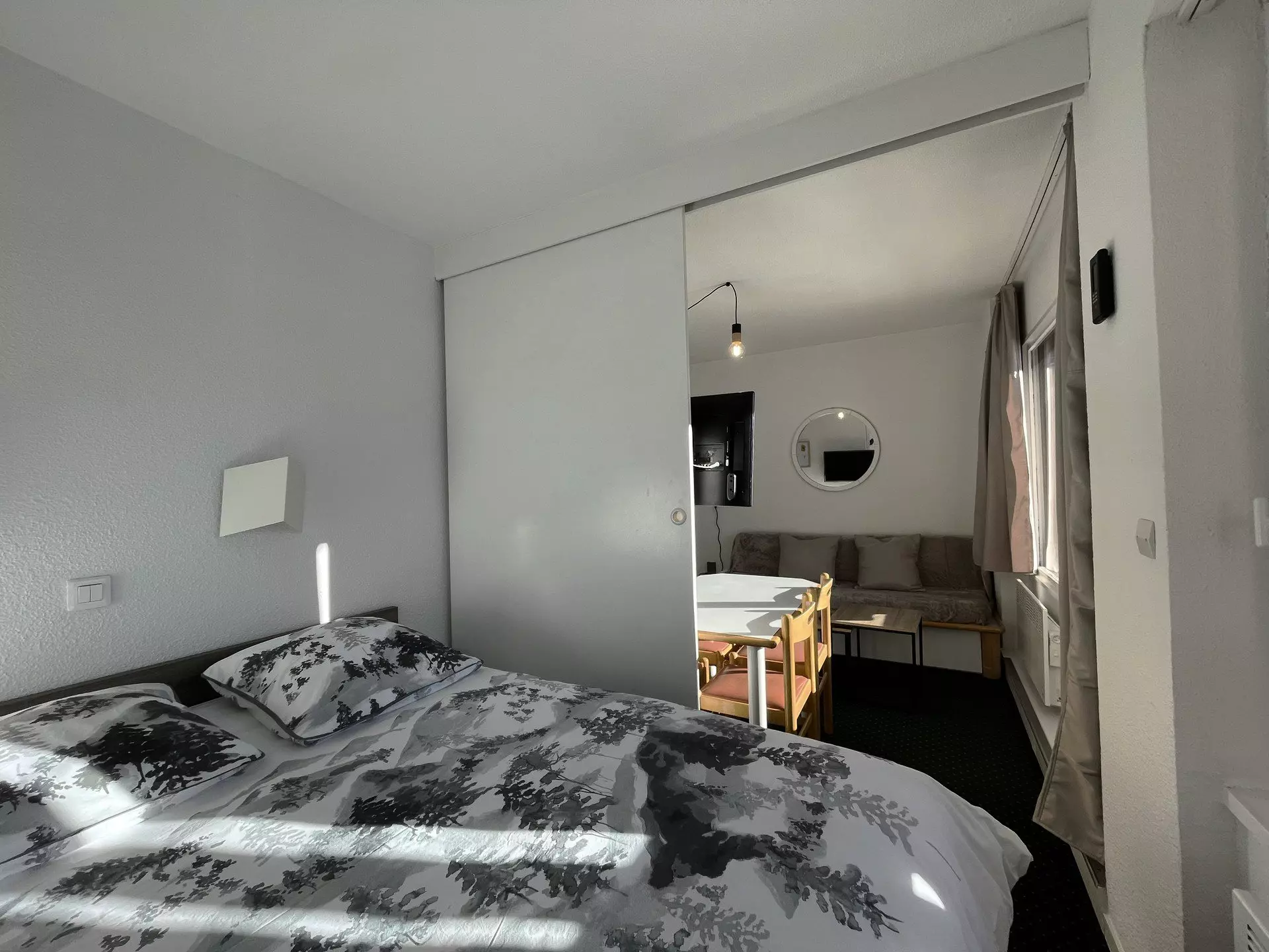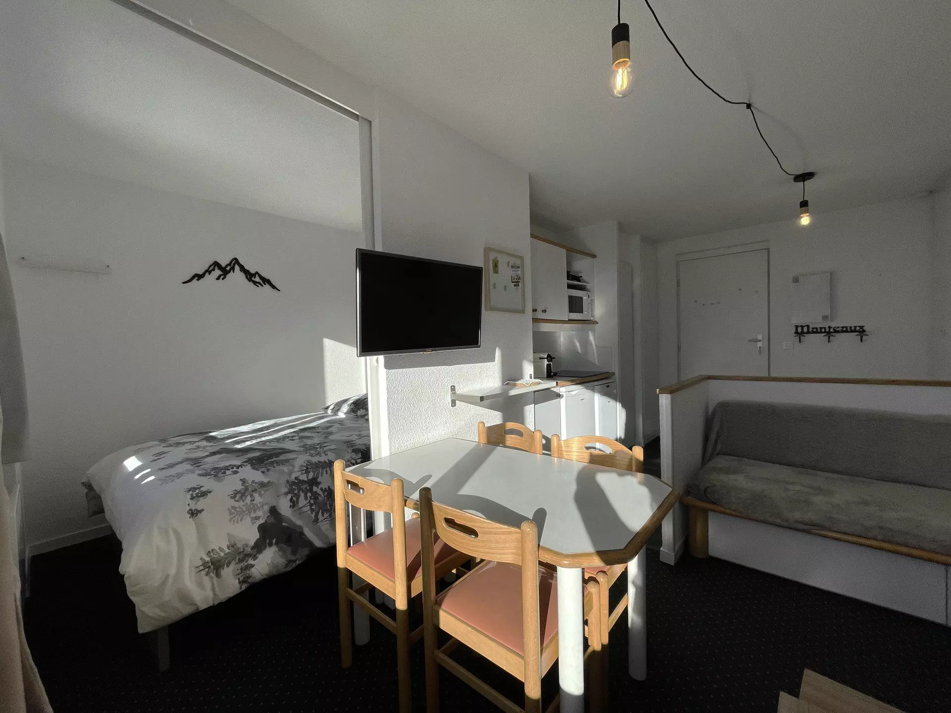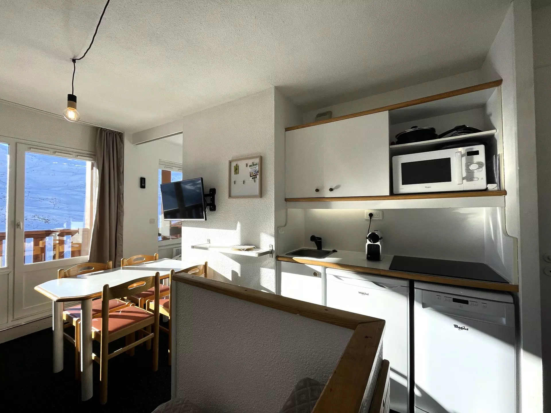 Résidence Necou (N°713), 2 pièces pour 4 personnes 25m², au 7ème étage par ascenseur niveau piste , et 1er étage par escalier niveau parking route, balcon exposé Sud-Ouest, vue sur les montagnes