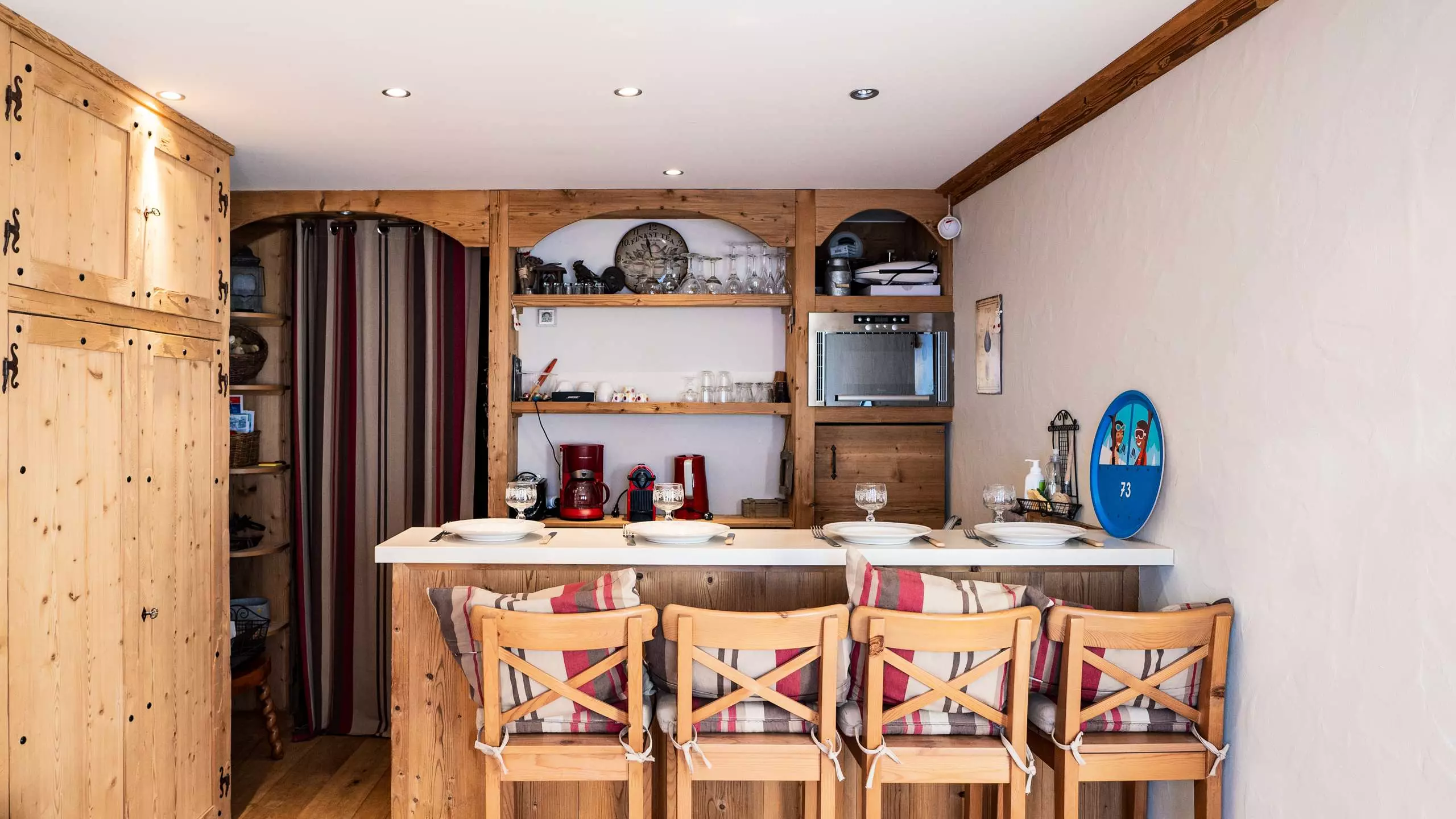 - Une cuisine ouverte entièrement équipée pour 4 personnes avec plaques vitrocéramiques, hotte aspirante, four, micro-ondes, réfrigérateur, cafetière NESPRESSO, grille-pain, bouilloire...