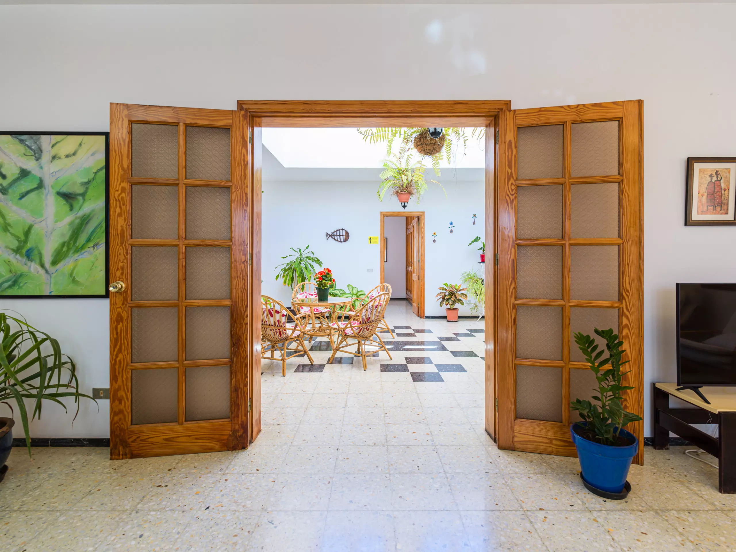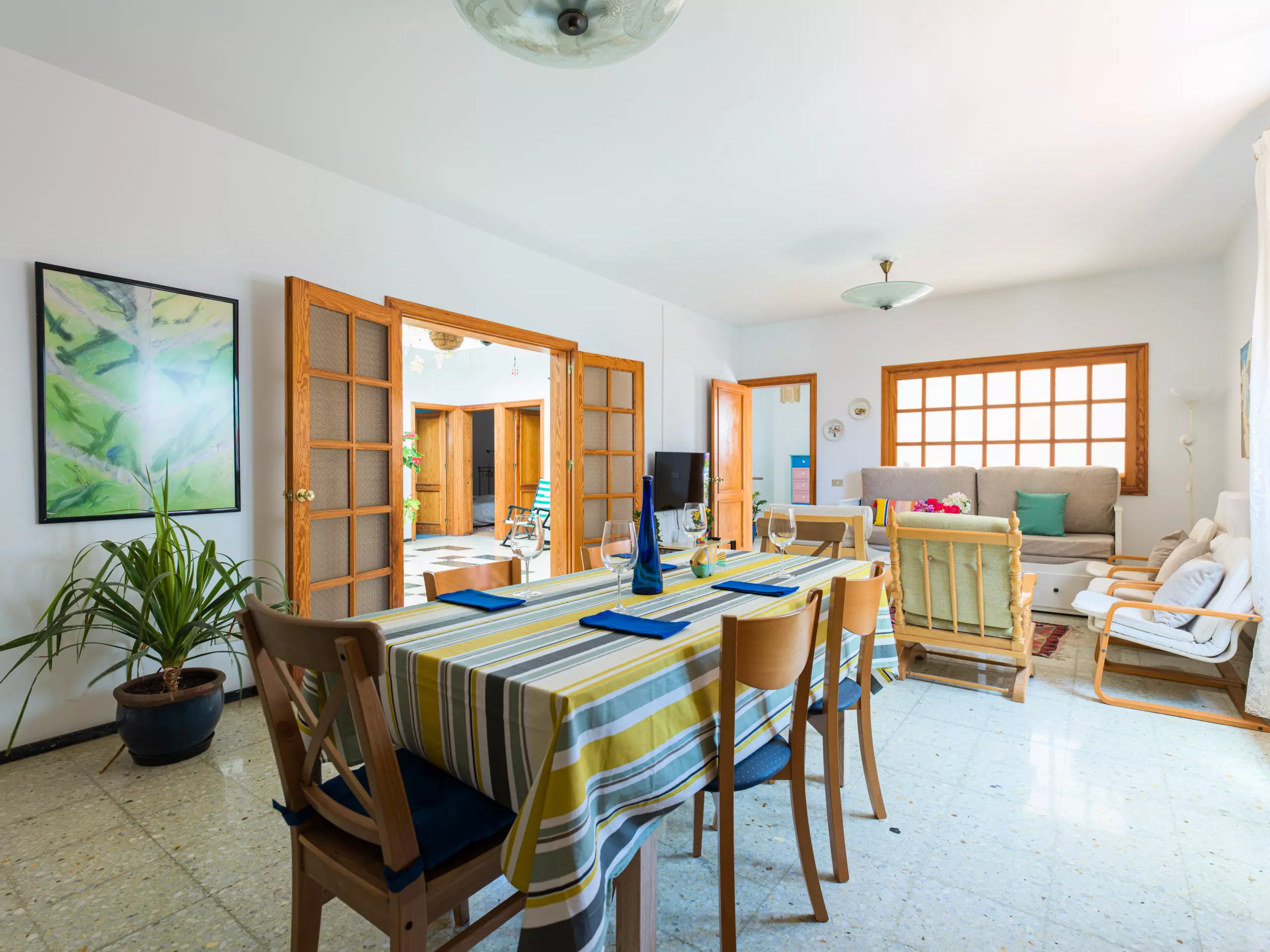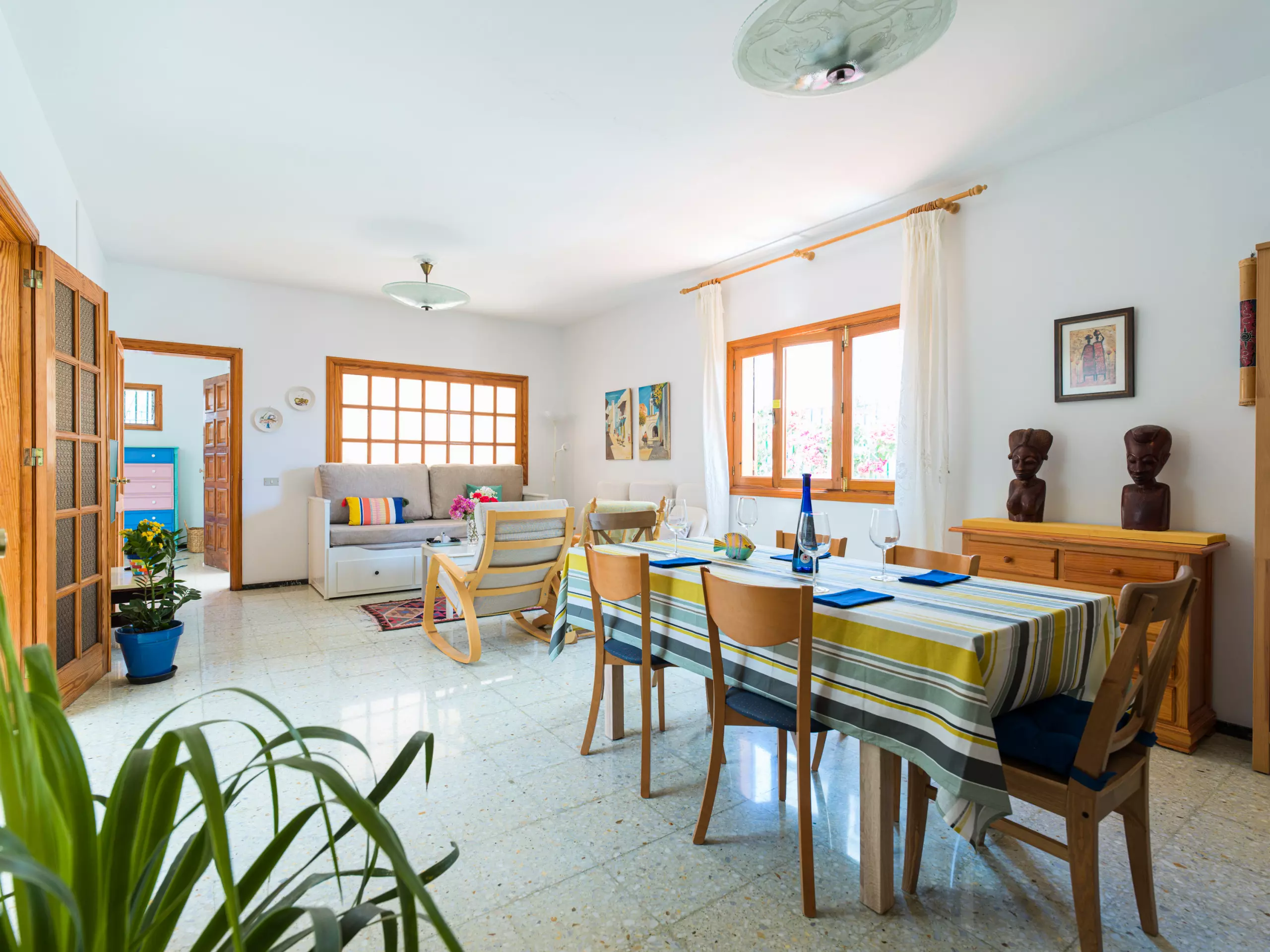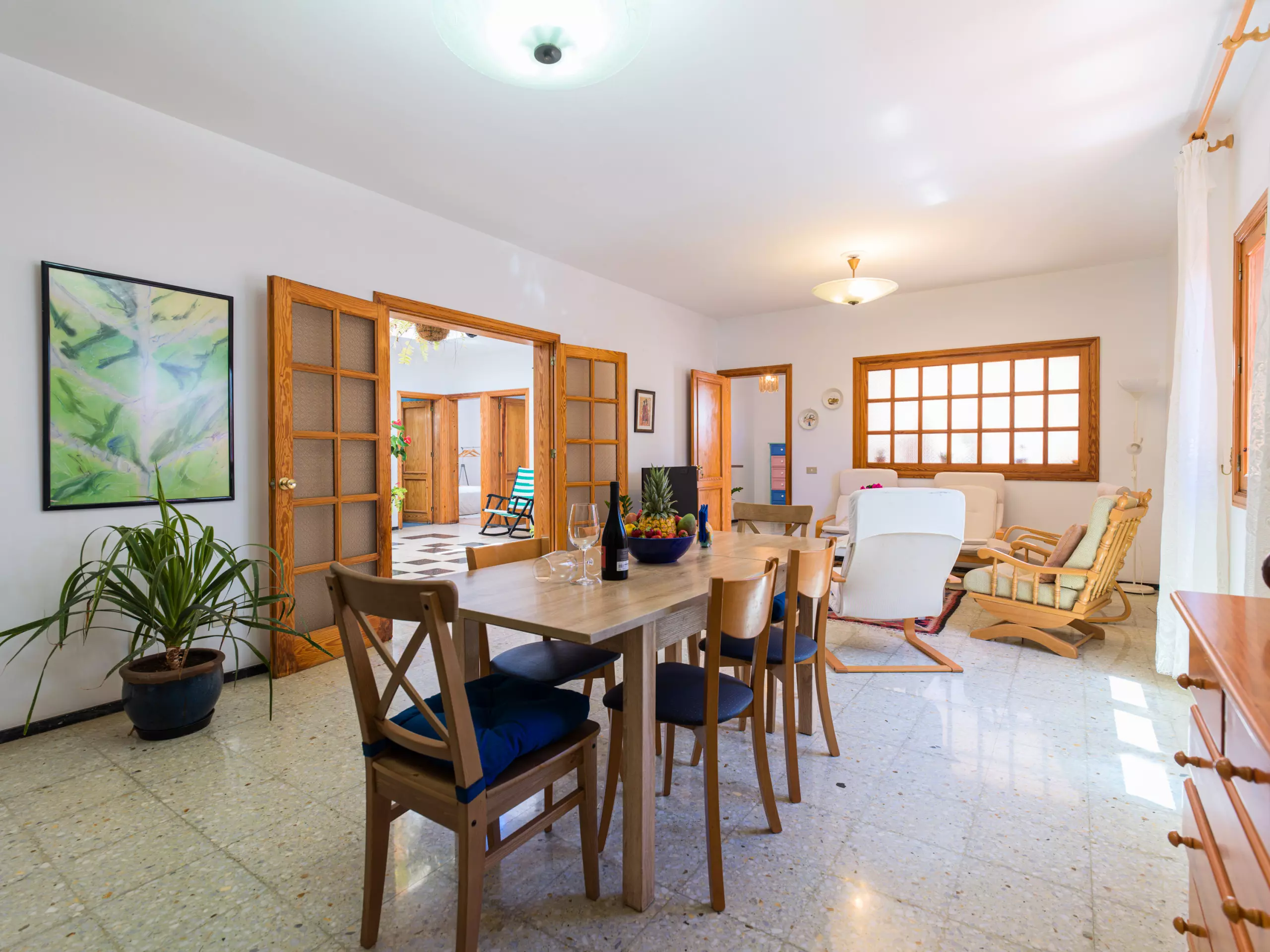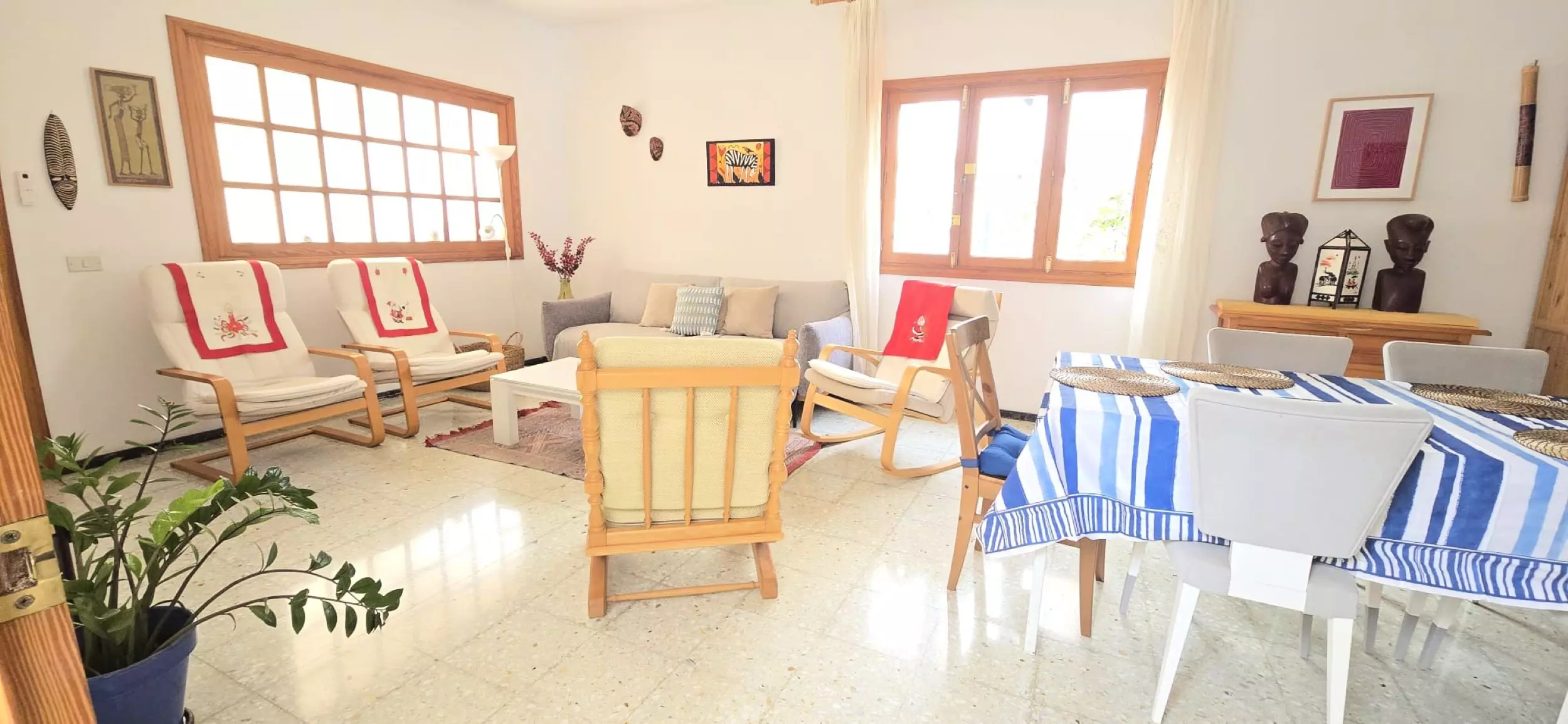 Maison spacieuse et confortable de plain-pied au cœur d'Agaete, entre le port et le centre urbain d'Agaete, la maison dispose de trois chambres spacieuses, de hamacs, de zones d'ombre, d'une douche extérieure, d'arbres fruitiers et d'une grande terrasse offrant une vue fantastique sur le parc naturel de Tamadaba. Elle dispose également d'un porche à l'entrée, idéal pour profiter d'un bon café local, et d'une immense cour intérieure. La maison est parfaite pour les familles souhaitant se reposer, faire de la randonnée, des sports nautiques ou découvrir l'île.