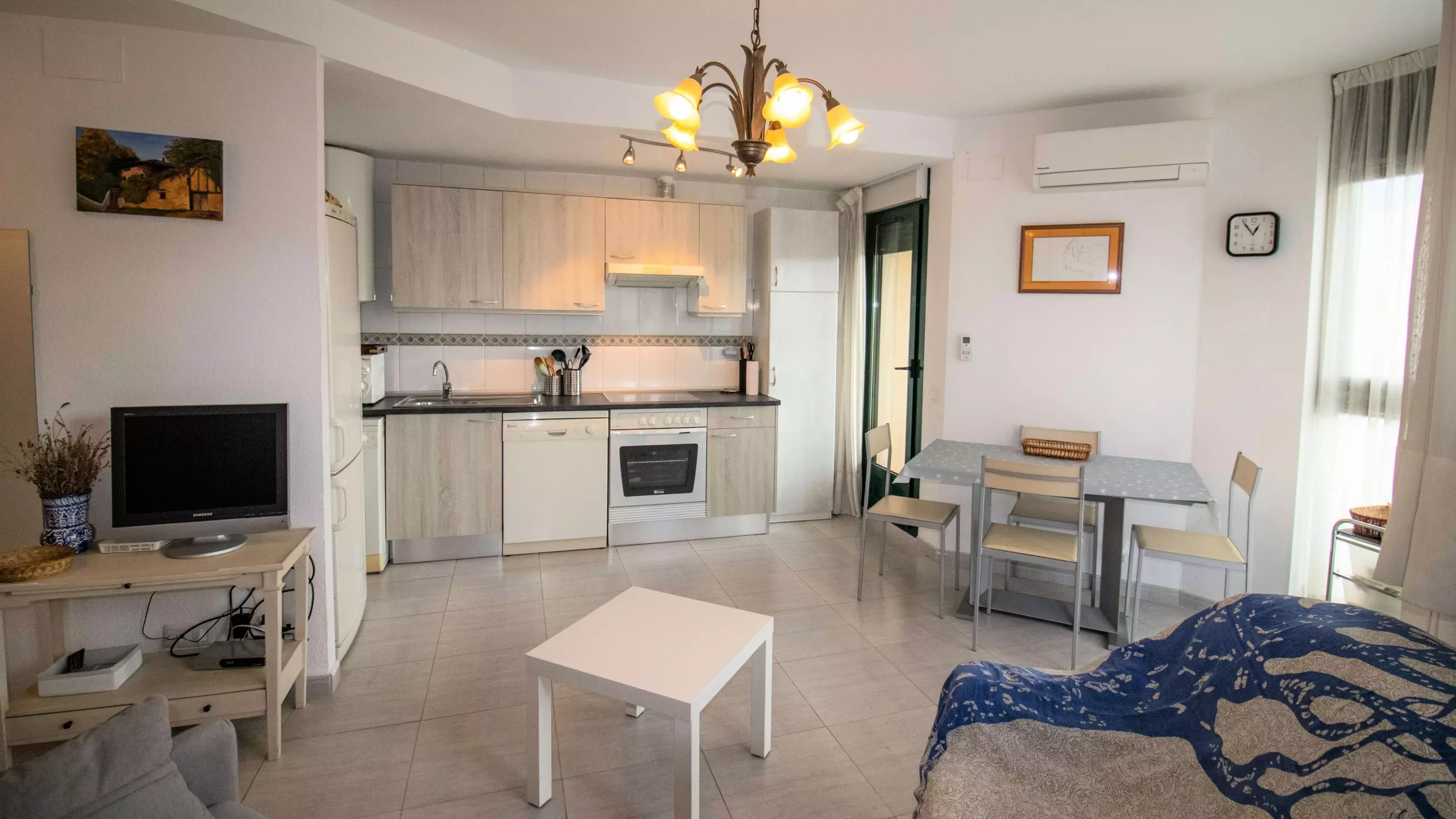 Emplacement imbattable. Appartement de vacances situé en deuxième ligne de la plage de Cargador (à 100 mètres), et à seulement 250 mètres du centre ville d'Alcossebre. Meublé avec goût et de bonnes qualités (récemment rénové), avec WiFi haut débit et air conditionné. Il comprend 1 chambre avec un lit double et un canapé-lit double. La capacité maximale est de 4 personnes.