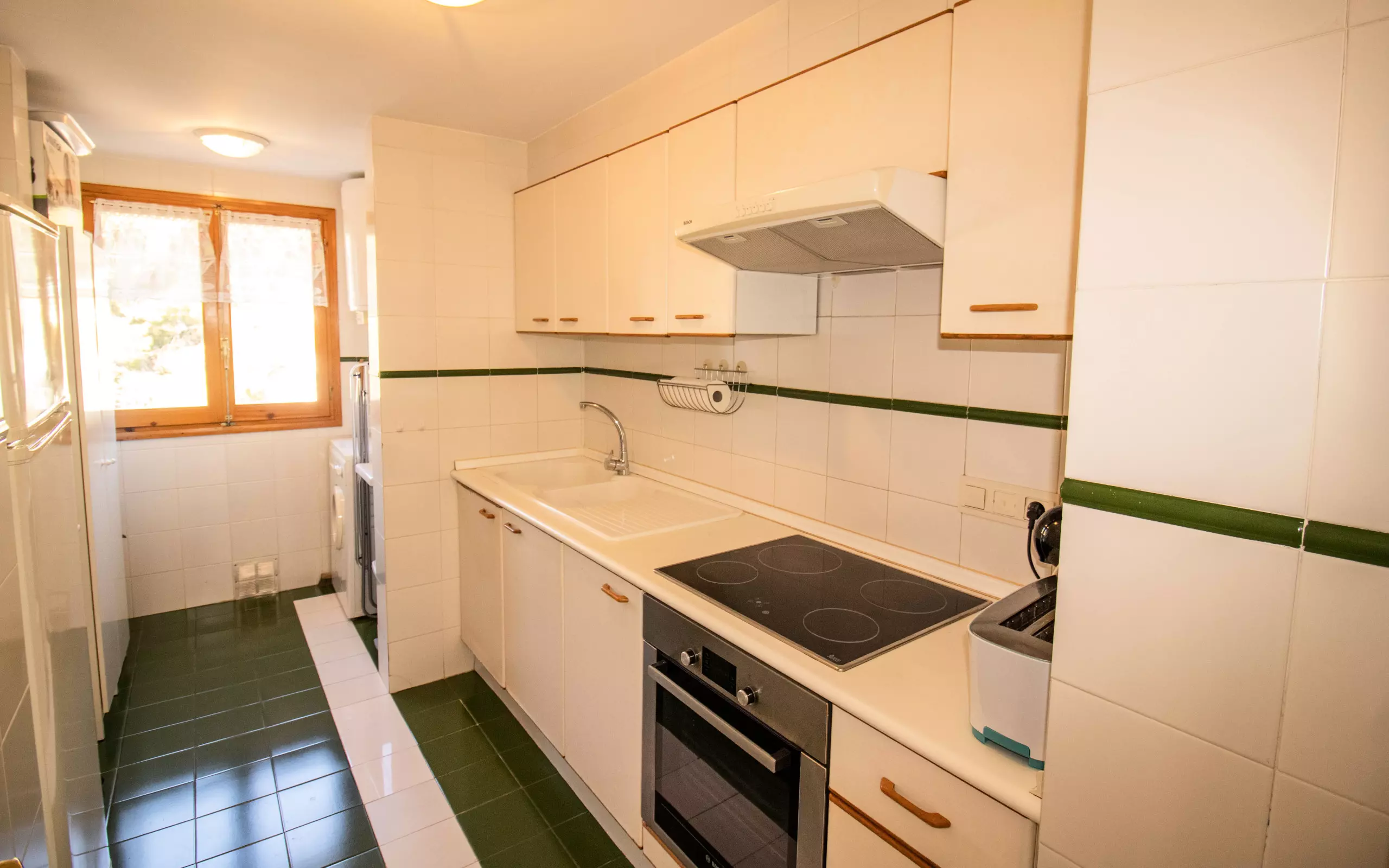Elle dispose de ascenseur, terrasse, lave-linge, accès internet (wifi), sèche-cheveux, chauffage électrique, piscine collective+infantile, garage même bâtiment.