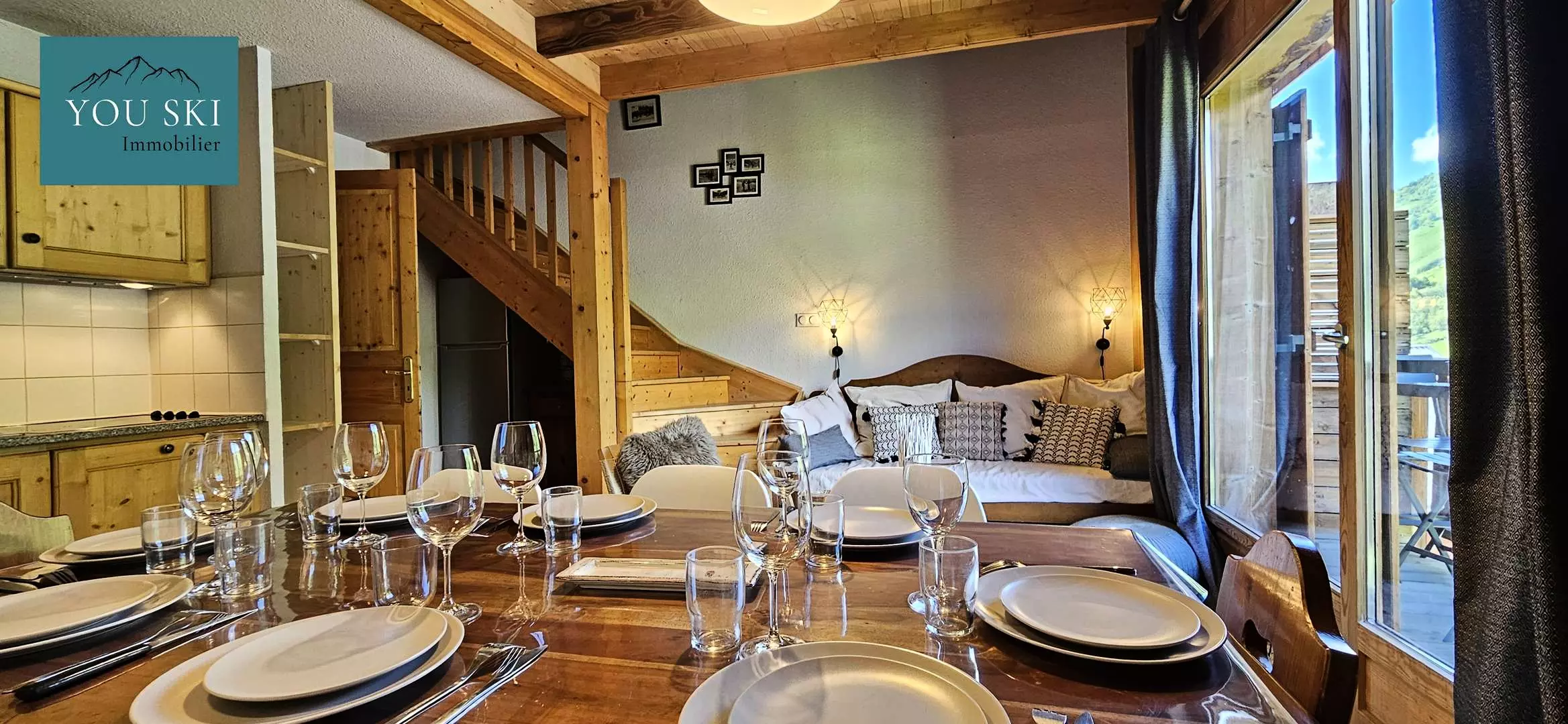 Au rez-de-chaussée, vous trouverez un séjour ouvert sur la cuisine et le salon, idéal pour se détendre après une journée sur les pistes ou une balade estivale, avec accès à un balcon offrant une vue exceptionnelle sur les sommets.