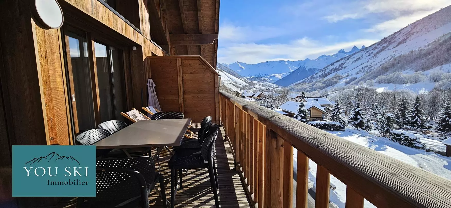 Le balcon panoramique vous offre un espace idéal pour admirer le ciel alpin, respirer l’air pur et contempler les montagnes, en hiver comme en été.