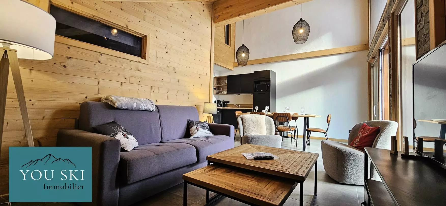 Imaginez-vous dans le salon lumineux, baigné de lumière grâce aux grandes baies vitrées, avec une vue magnifique sur les montagnes. Installez-vous confortablement, savourez un moment de détente après une journée sur le domaine skiable des Sybelles, ou laissez vos enfants jouer pendant que vous profitez d’un instant de calme sur le canapé.