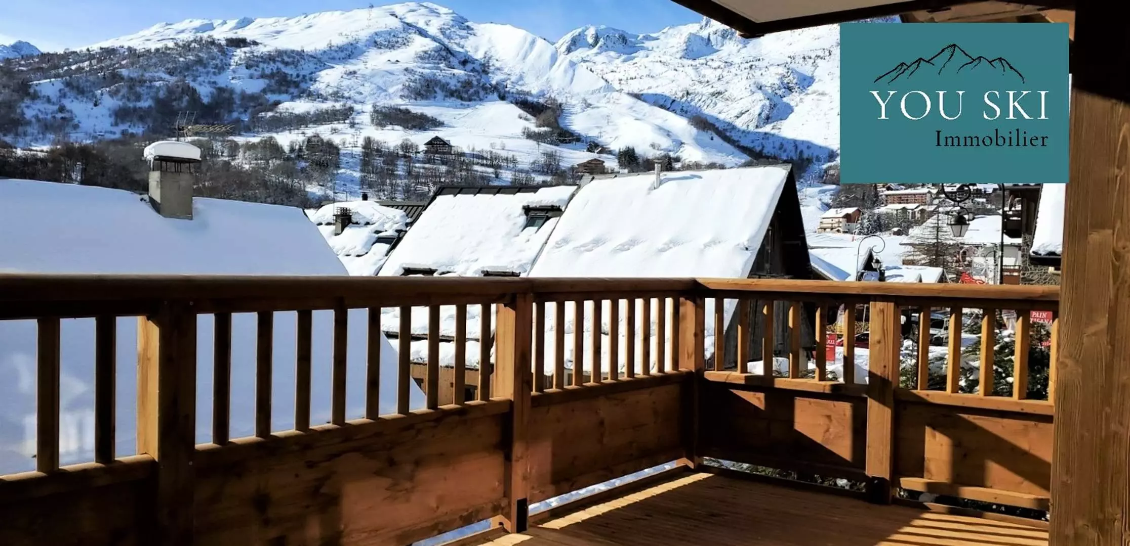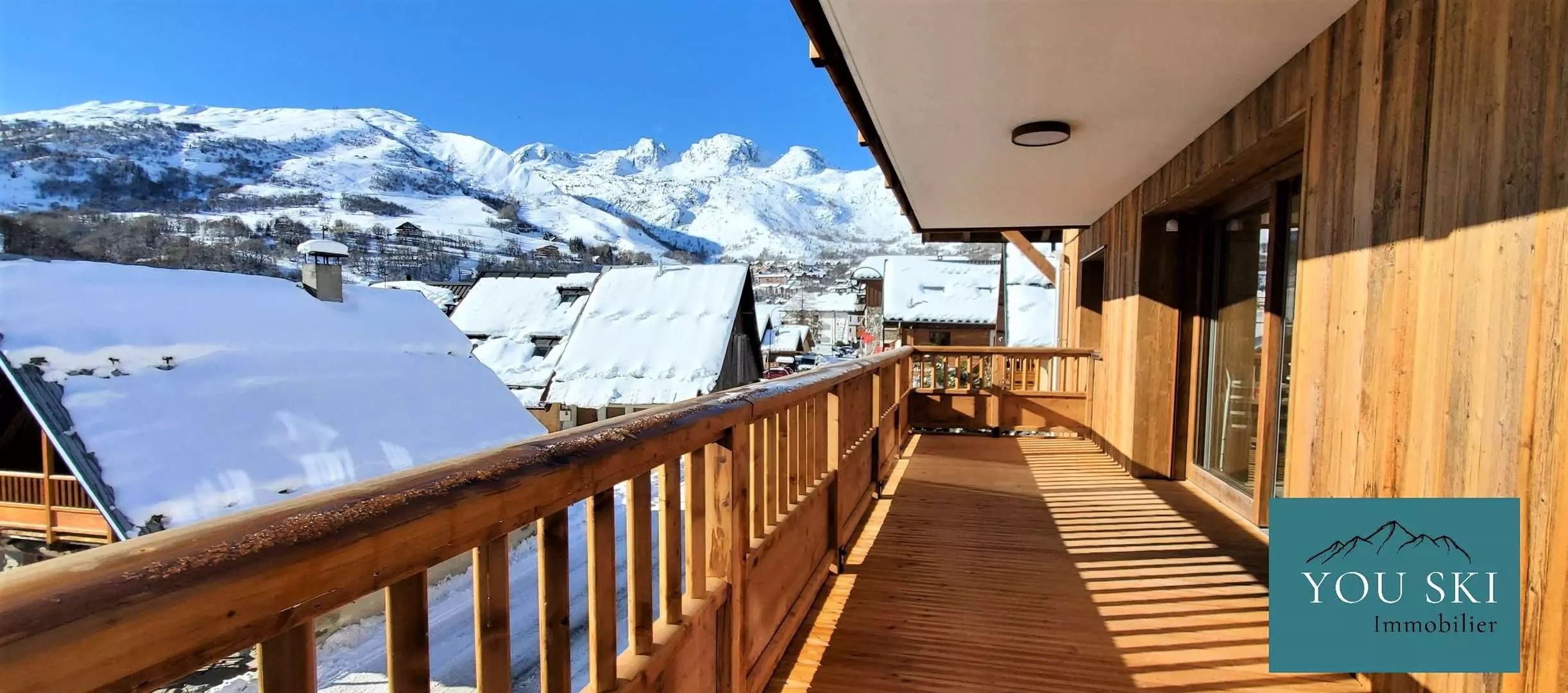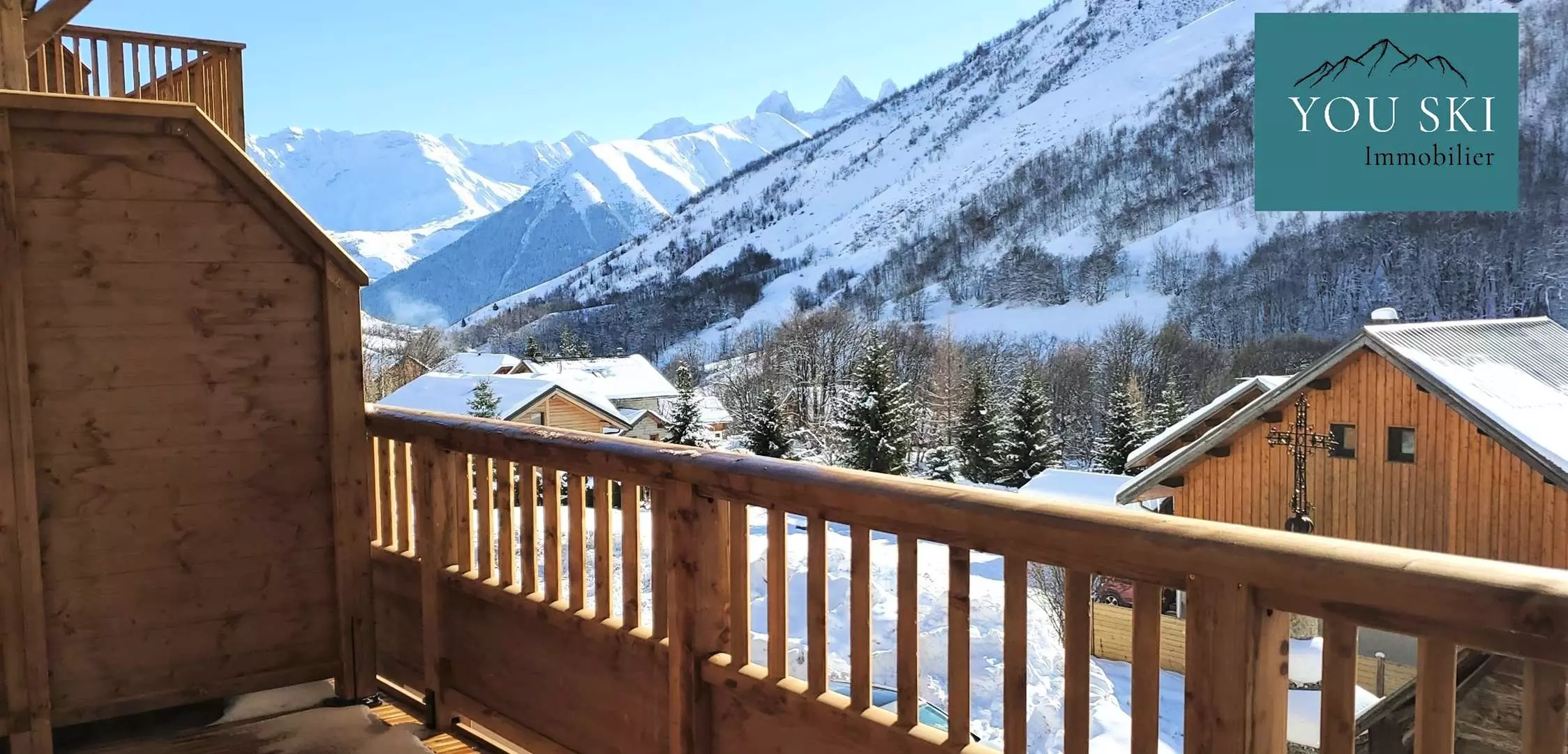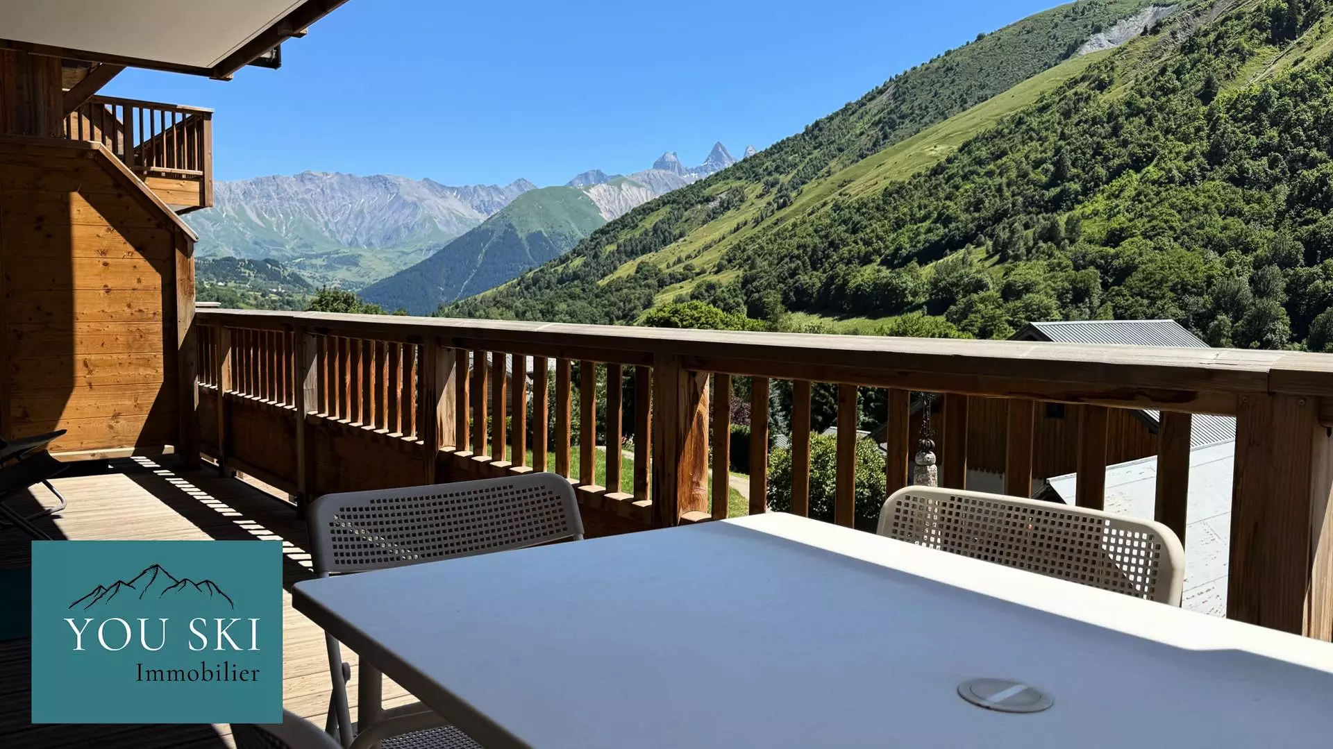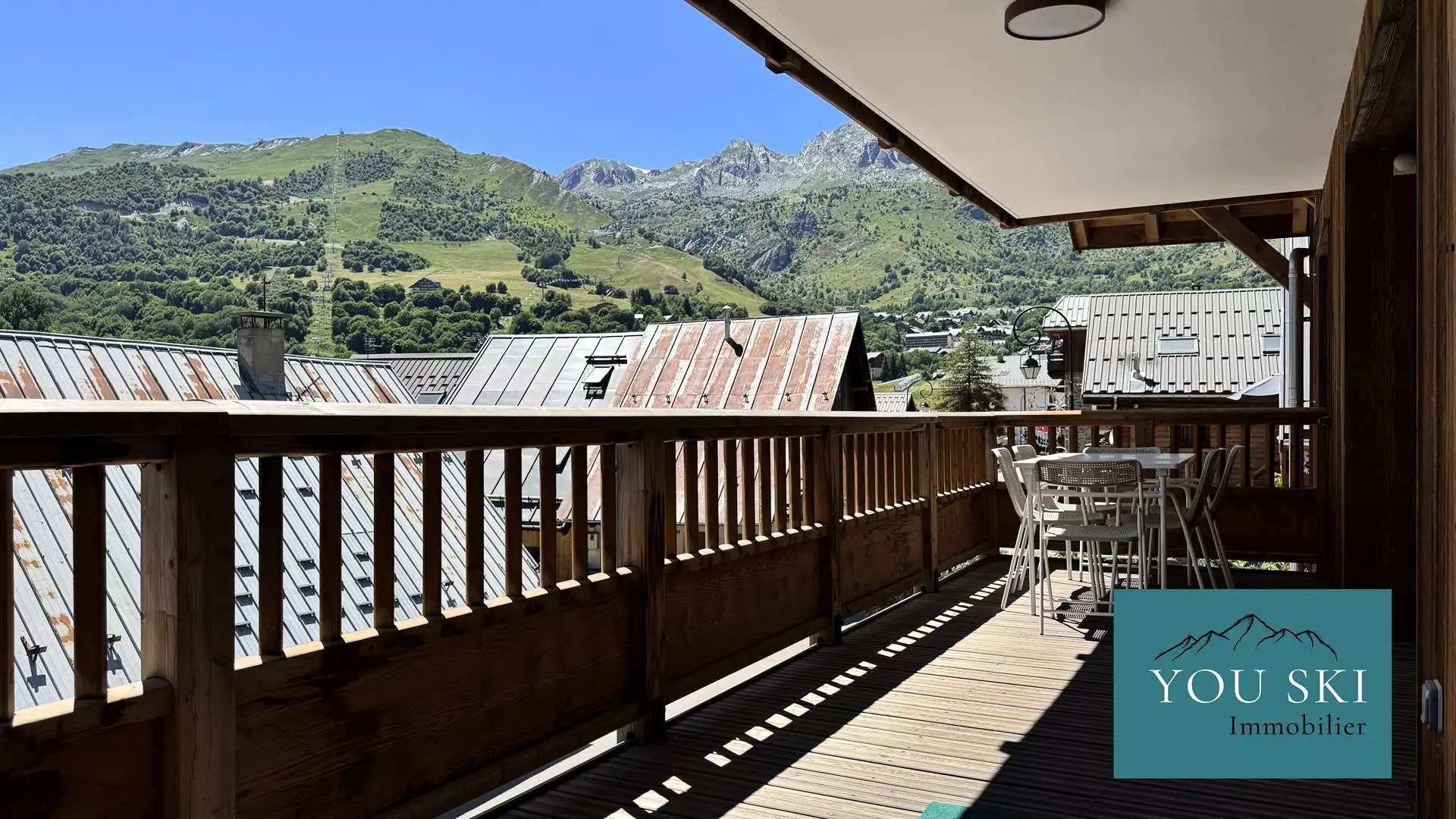 Le balcon panoramique vous offre un espace idéal pour admirer la montagne, prendre un café le matin ou un apéritif au coucher du soleil, et profiter pleinement de la vue sur le village et les pistes du domaine skiable.