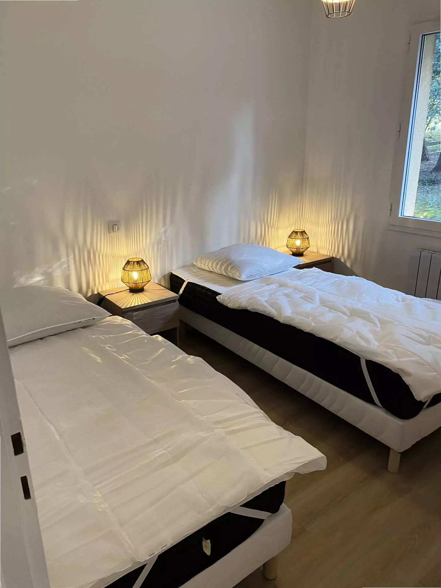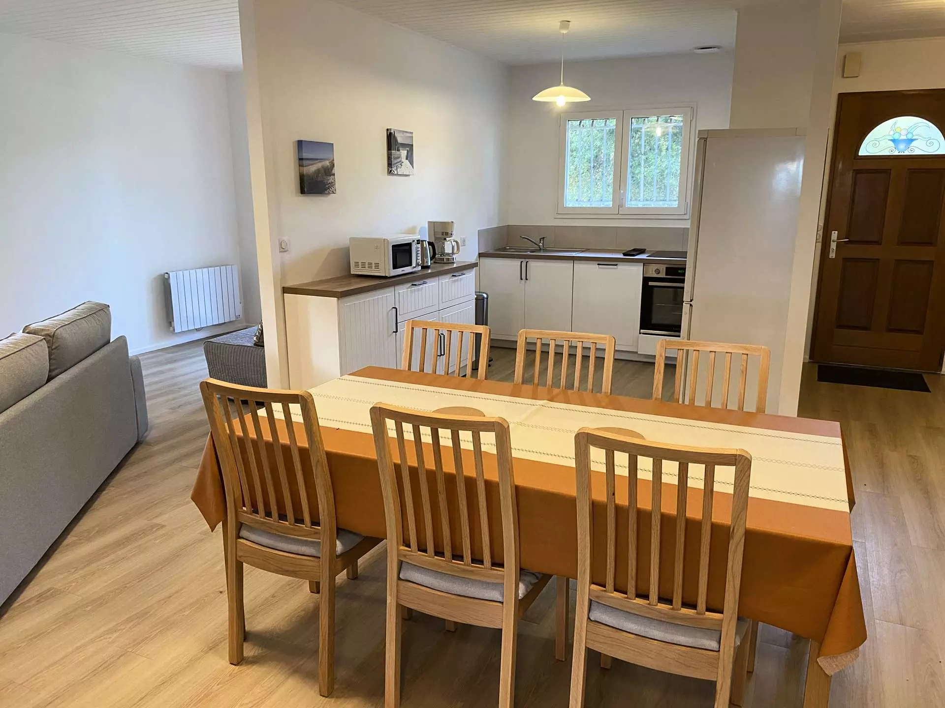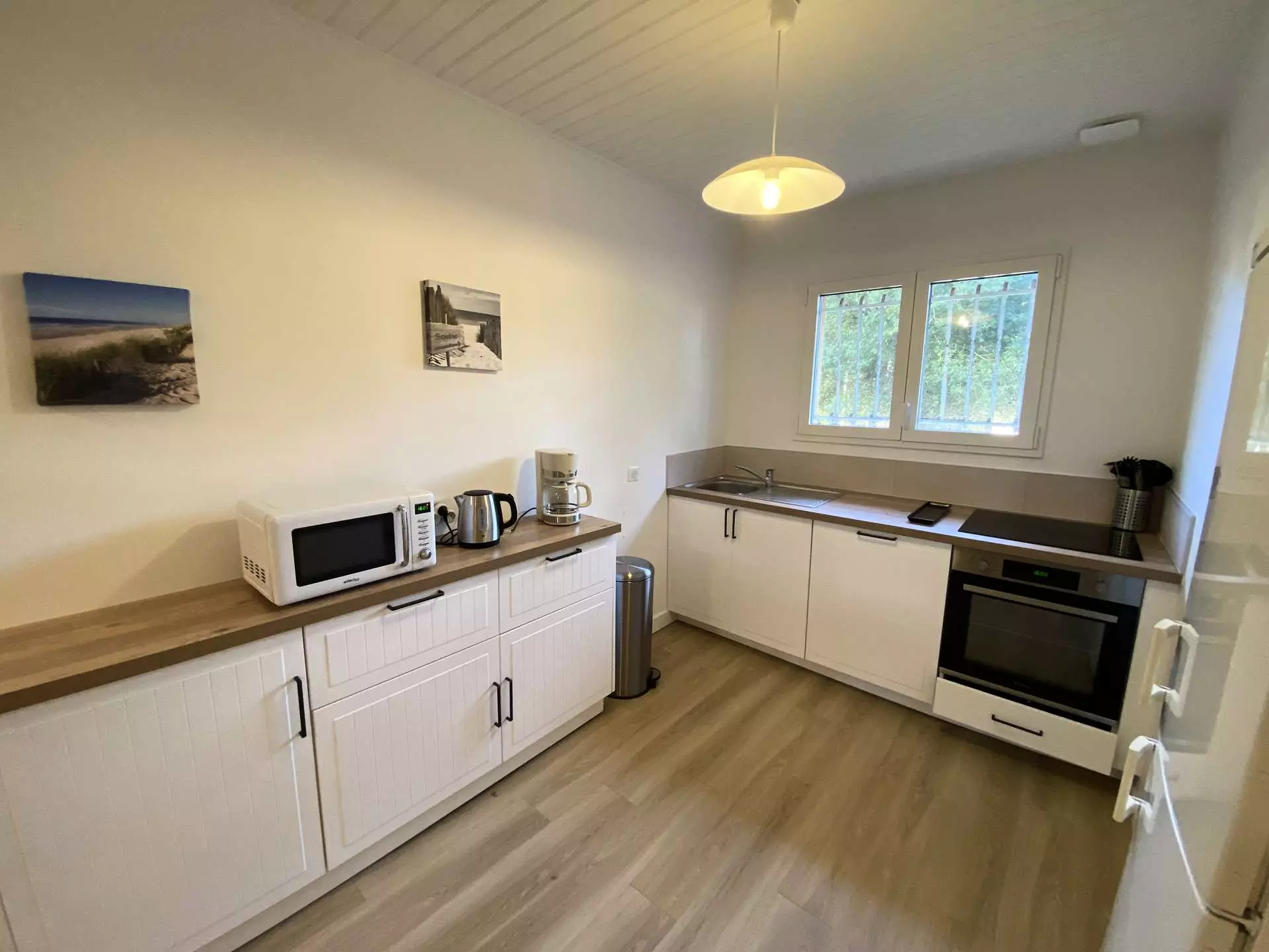 Venez profitez d'un séjour paisible dans cette élégante maison de 110m² entièrement rénovée et pensé pour votre bien-être située dans un quartier calme et verdoyant de la station balnéaire de Soulac/mer. Elle saura vous séduire par ses nombreuses prestations et pour le confort qu'elle offre pour passer un séjour apaisant et reposant. Vous trouverez une entrée, une belle pièce de vie avec salon, une cuisine ouverte entièrement équipée, la partie nuit est composée de 2 chambres avec placards (1 lit en 140cm et 2 lits simples séparés), une salle d'eau et un WC indépendant. Accès au Sous-sol avec un lave-linge. Terrasse extérieure couverte équipée de mobilier de jardin pour vos moments de détente, barbecue .... Caution à régler sur place. Chèques vacances acceptés.