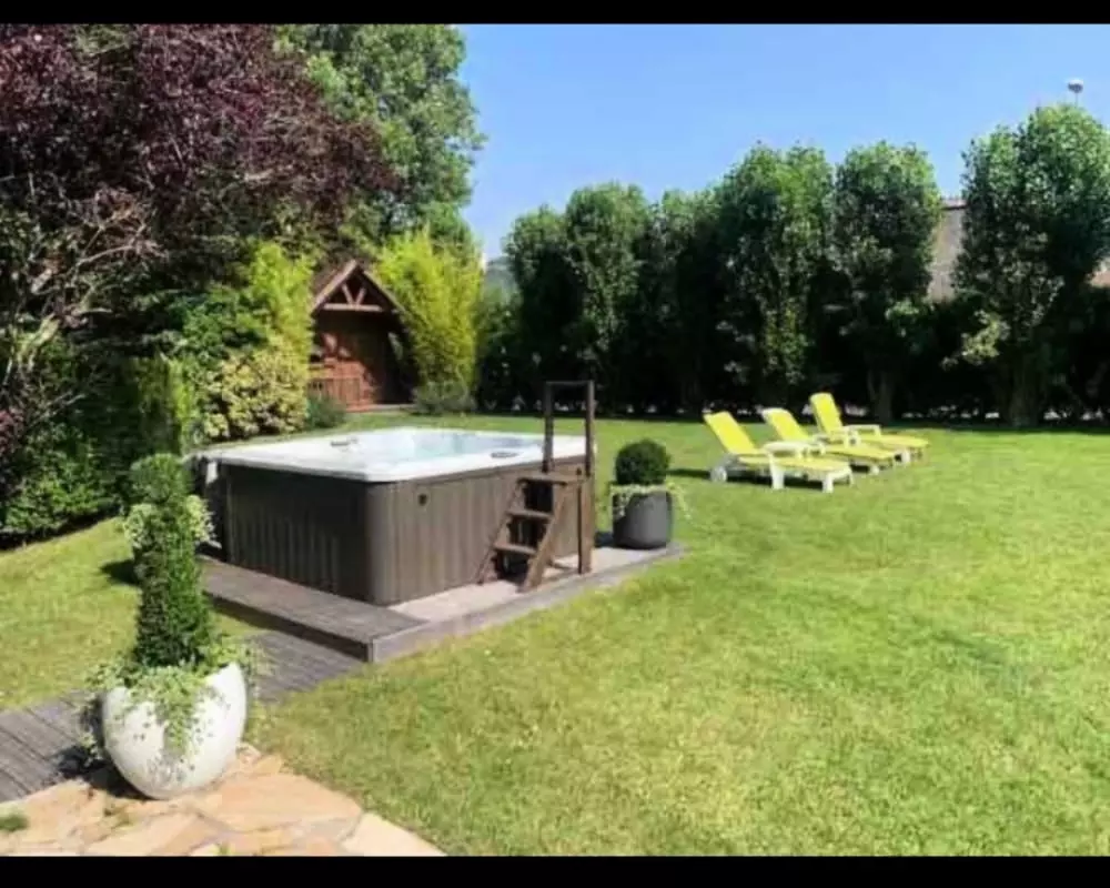 - un bel extérieur avec terrasse, jardin et jacuzzi