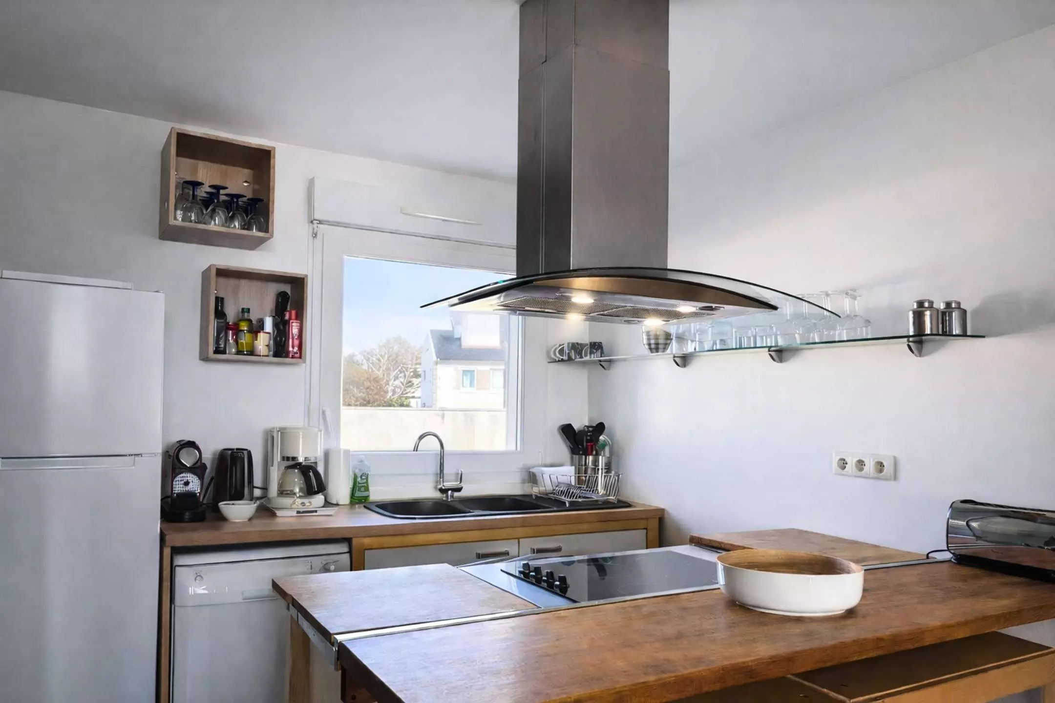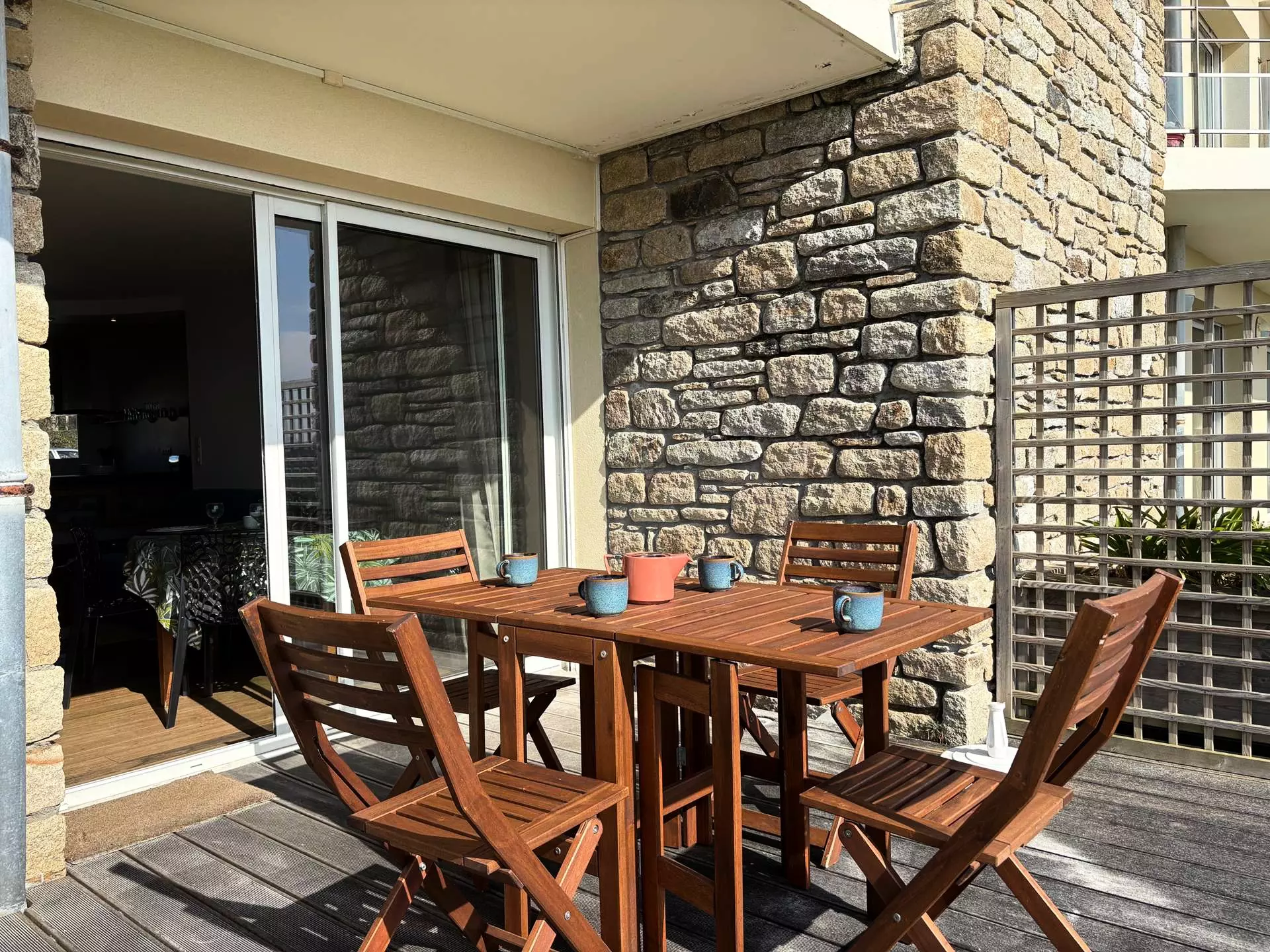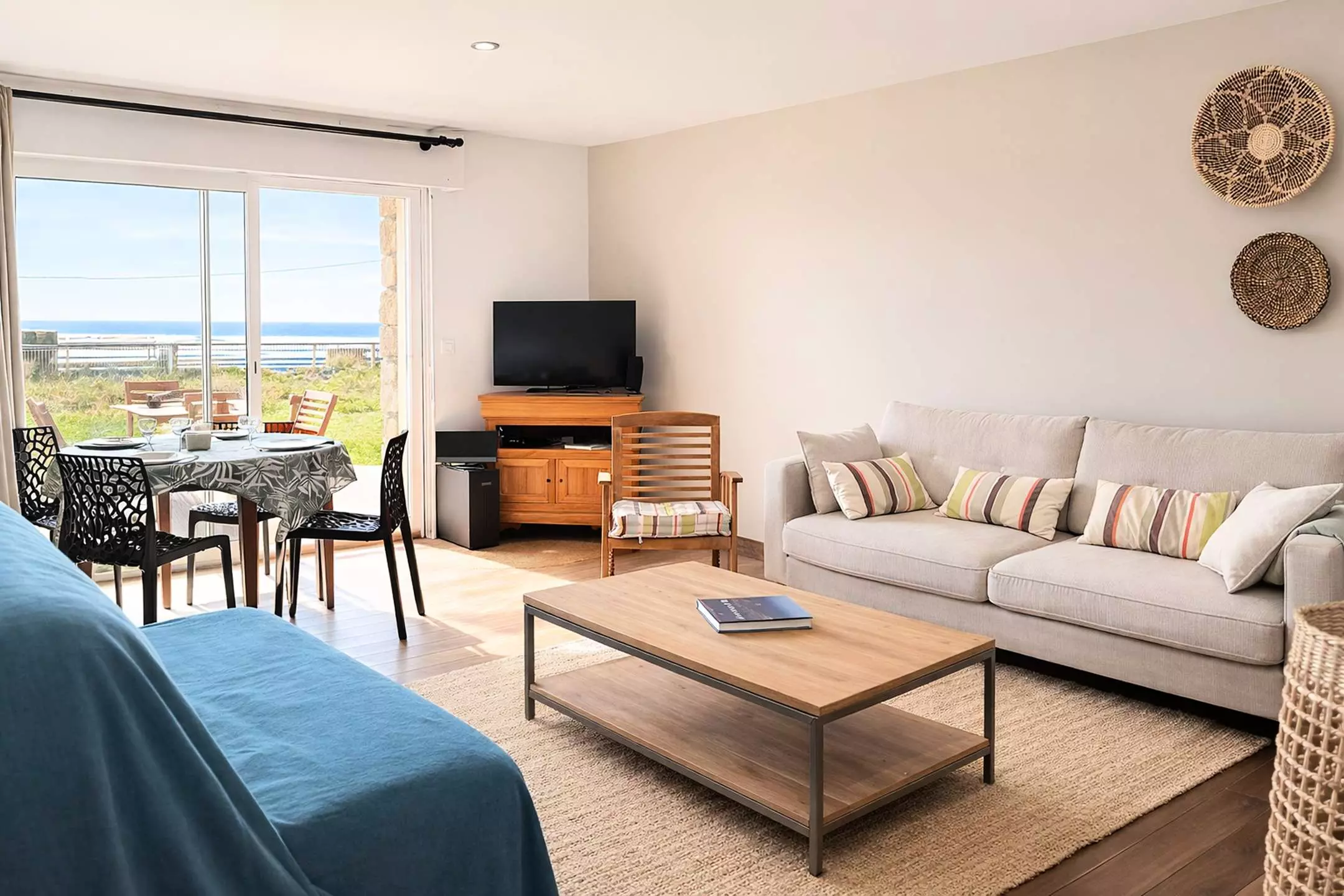 Offrez-vous un séjour mêlant détente et évasion aux Roches Blanches, dans ce confortable appartement avec vue mer, idéalement situé face à la grande plage de Tresmeur.