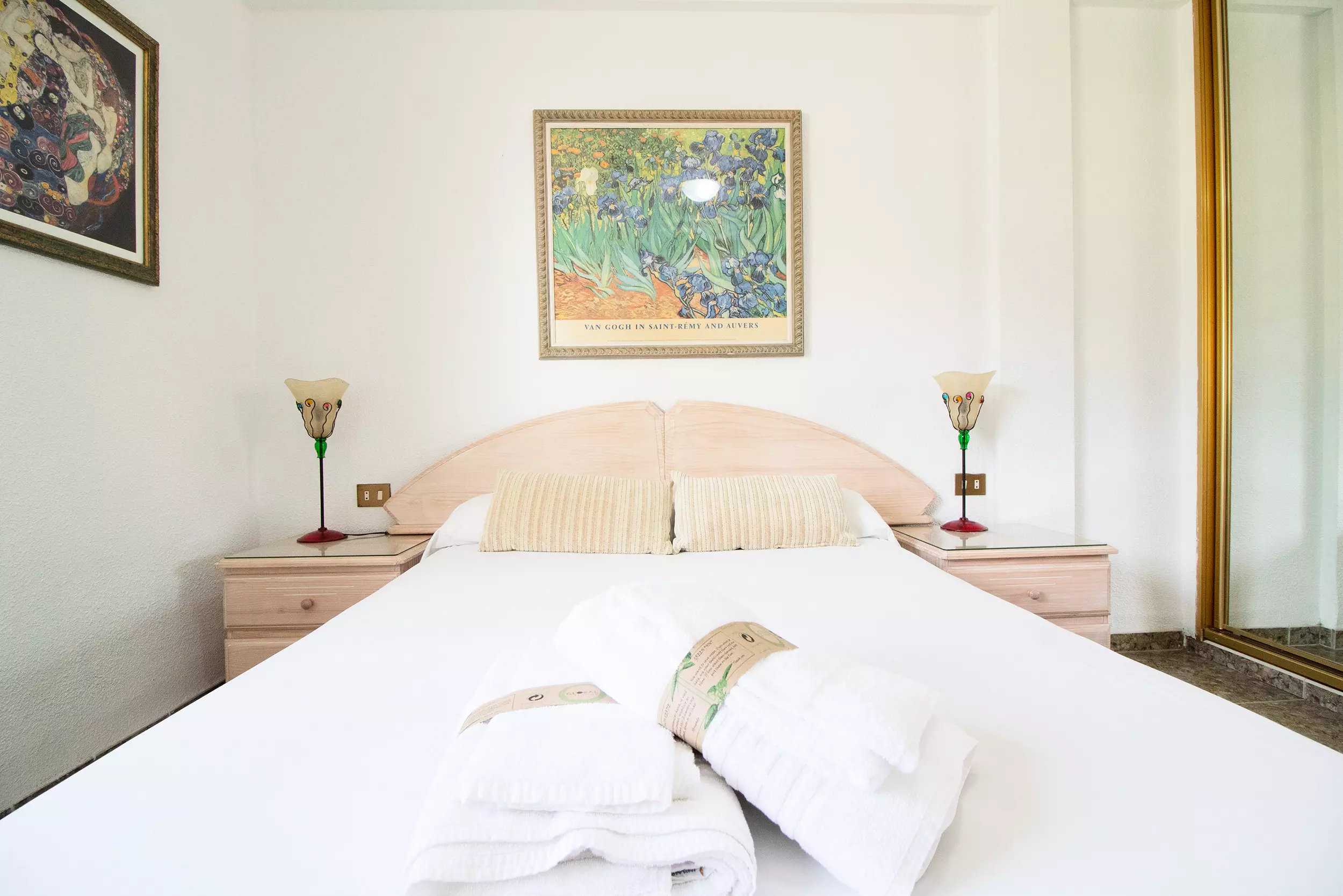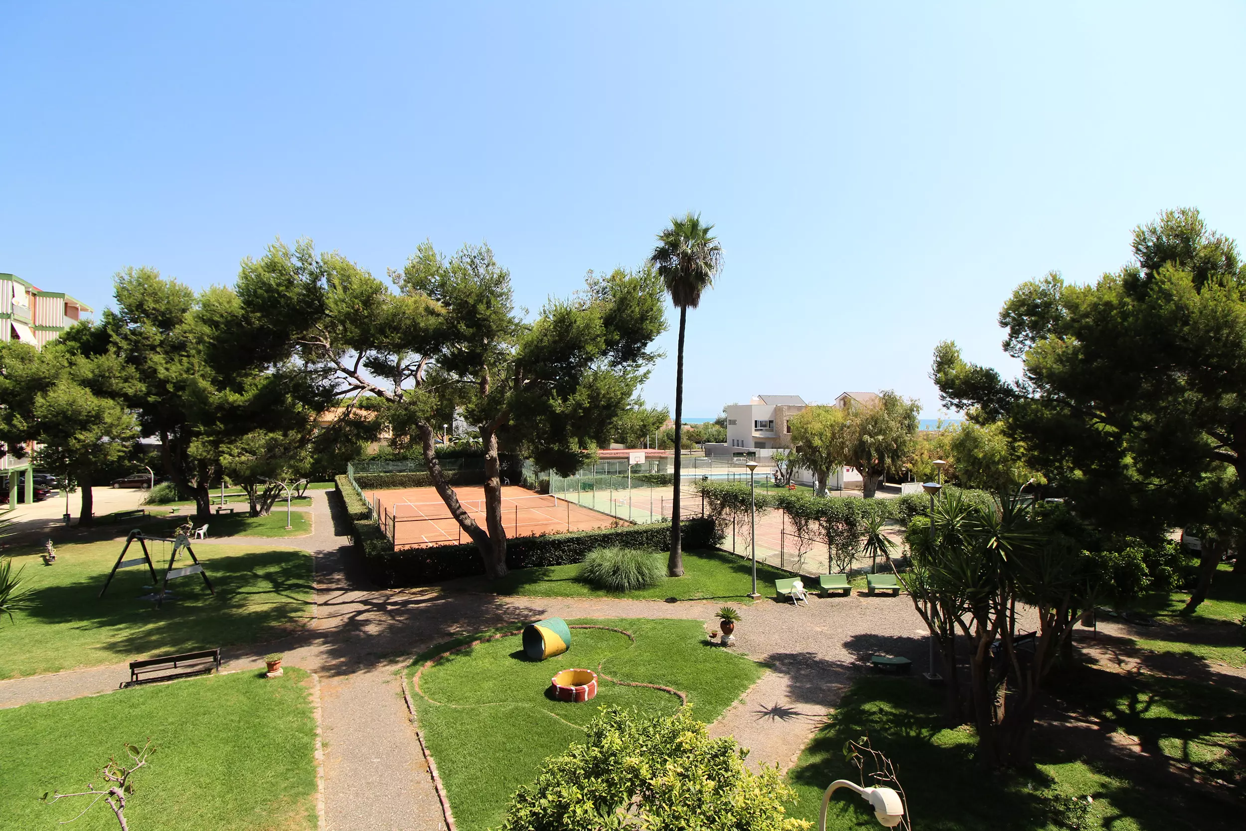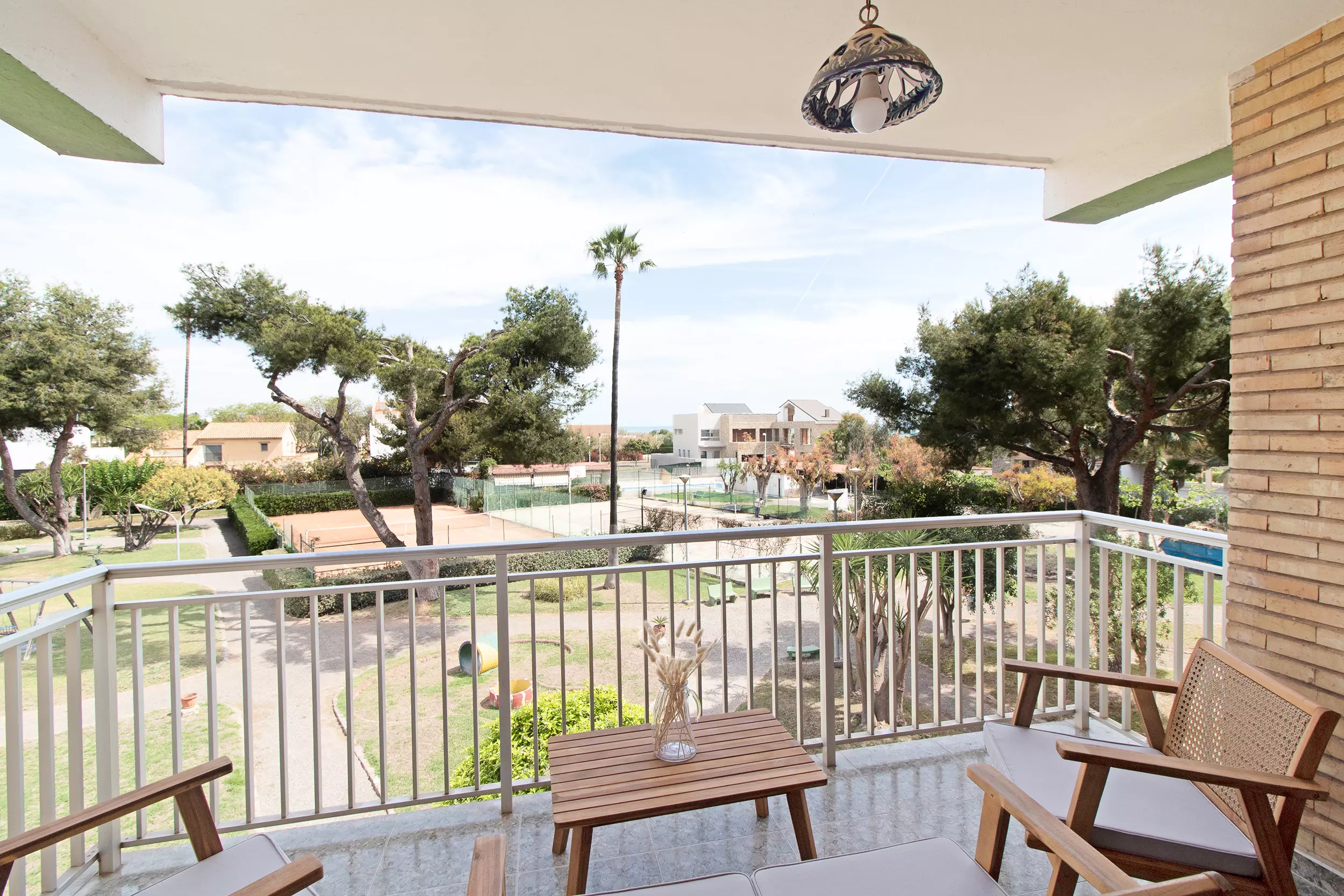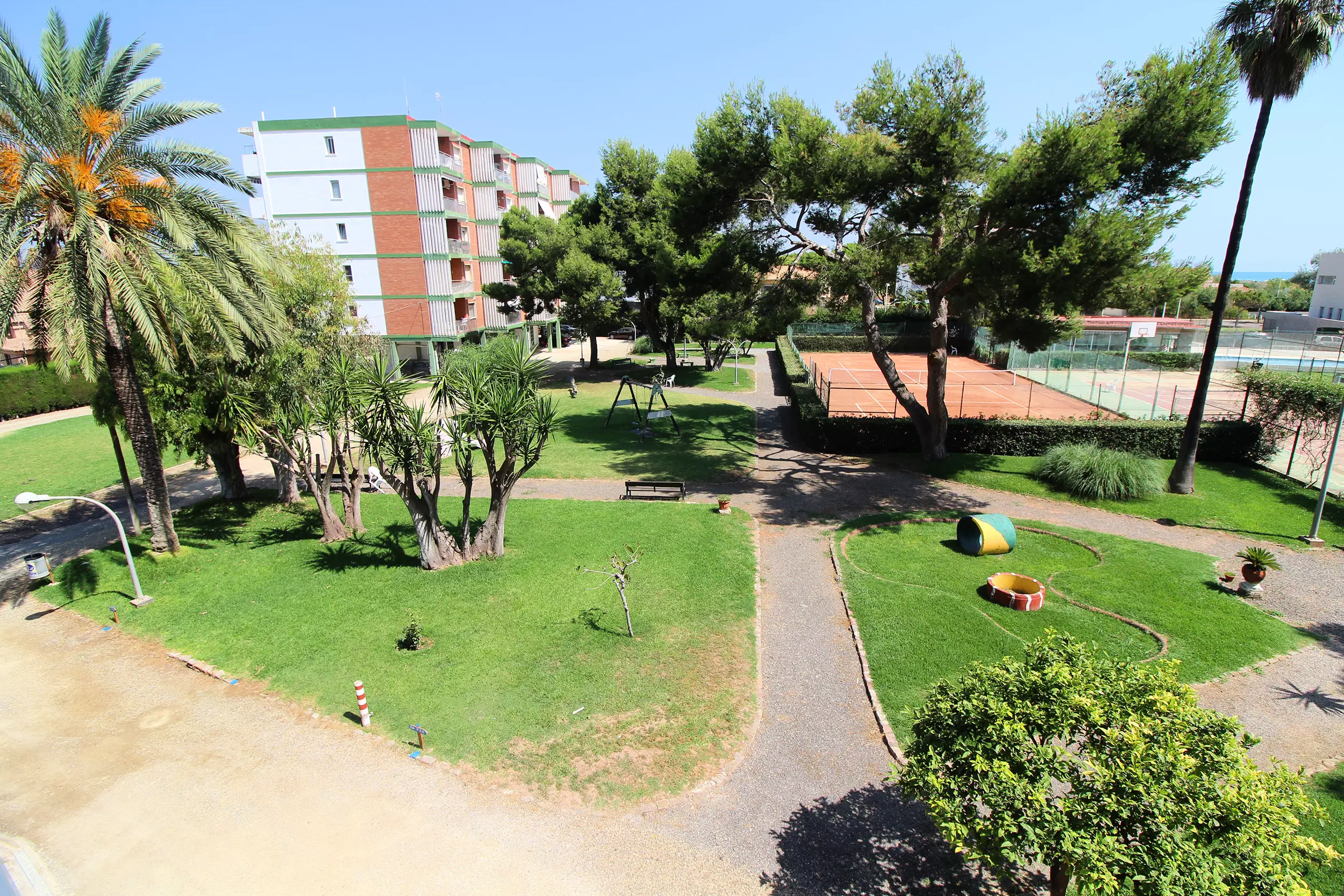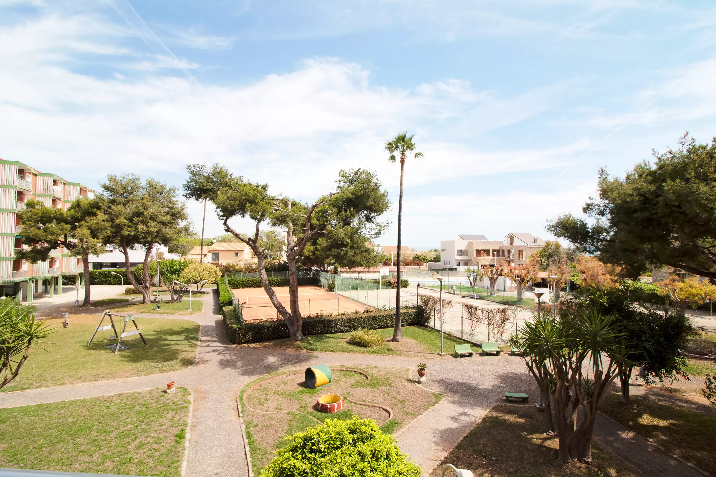Elle dispose de ascenseur, jardin, mobilier de jardin, clôture, terrasse, lave-linge, barbecue, fer à repasser, accès internet (wifi), balcon, zone pour les enfants, terrain de tennis, piste de paddle, piscine collective, parking extérieur même bâtiment, 2 ventilateurs, 1 Télévision.