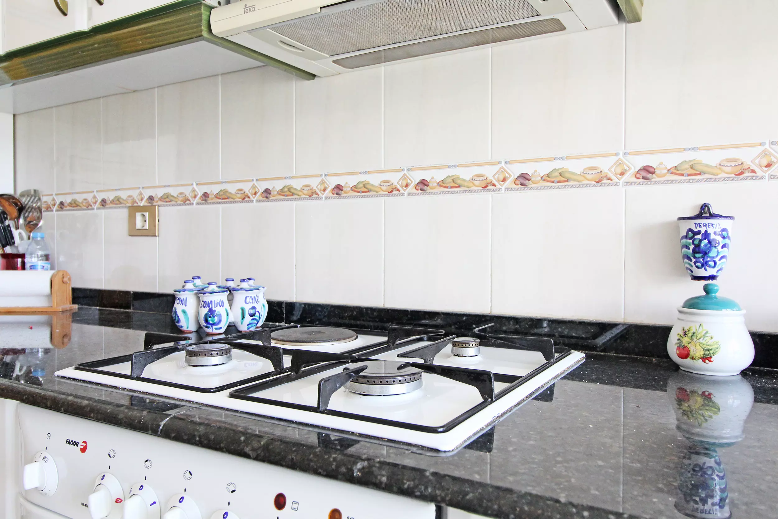La cuisine indépendante, à vitrocéramique, est équipée avec réfrigérateur, micro-ondes, four, congélateur, vaisselle/couverts, ustensiles/cuisine, cafetière, grille pain, bouilloire et presse-agrumes.
