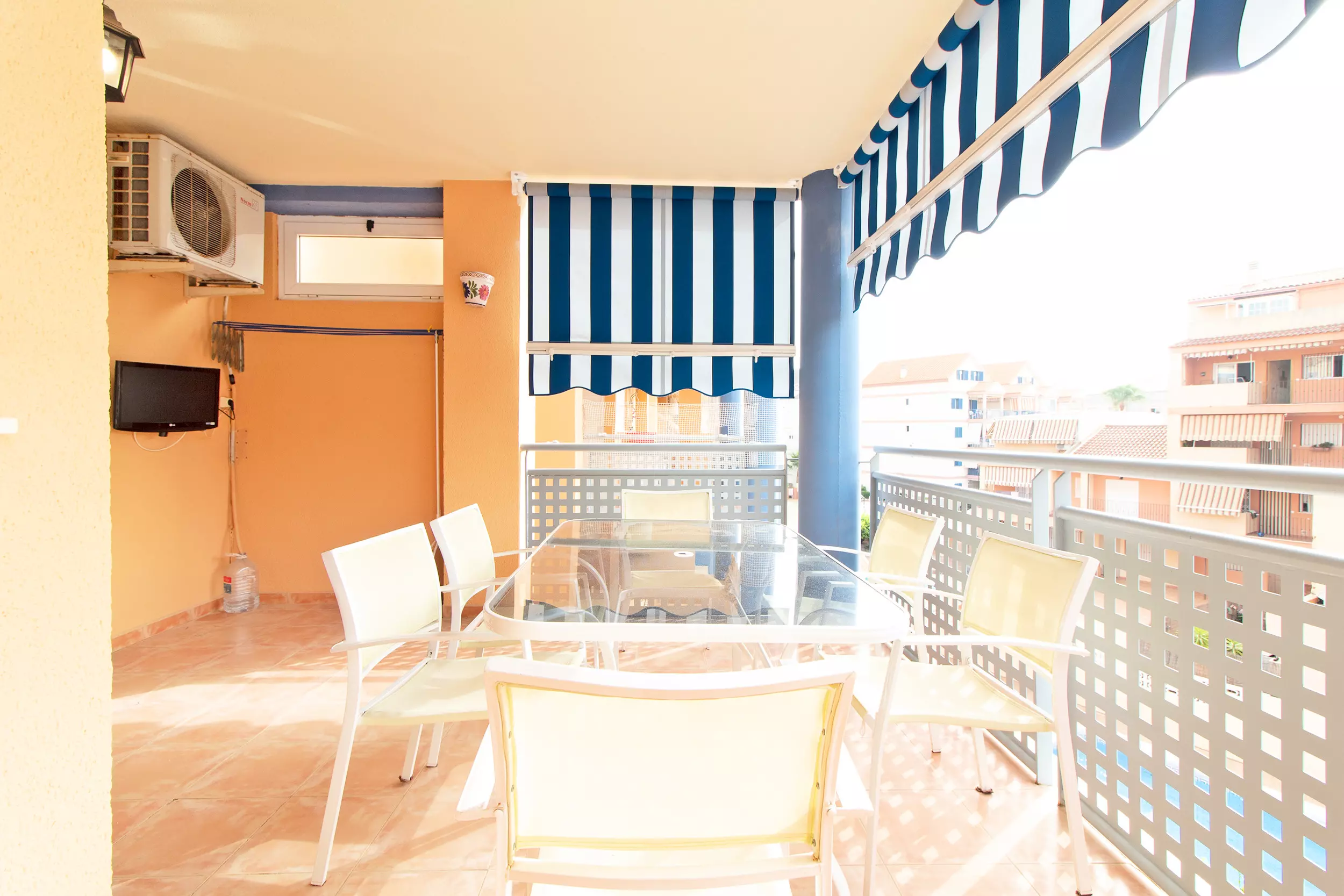 Elle dispose de ascenseur, 15 m² de terrasse, lave-linge, climatisation dans le salon, piscine collective, TV.