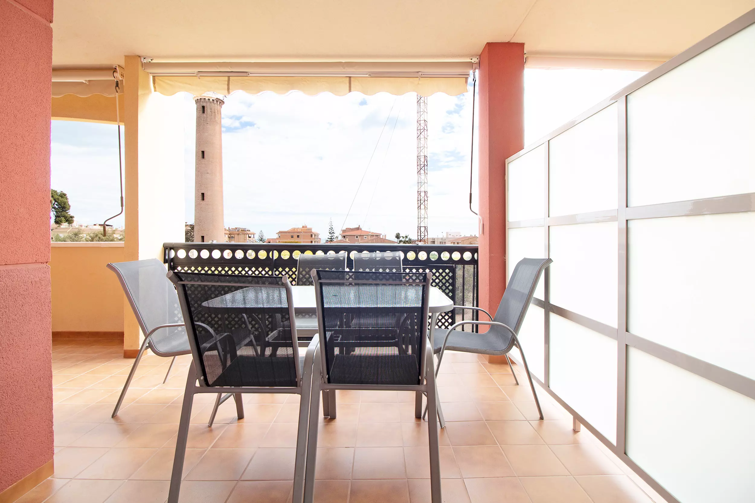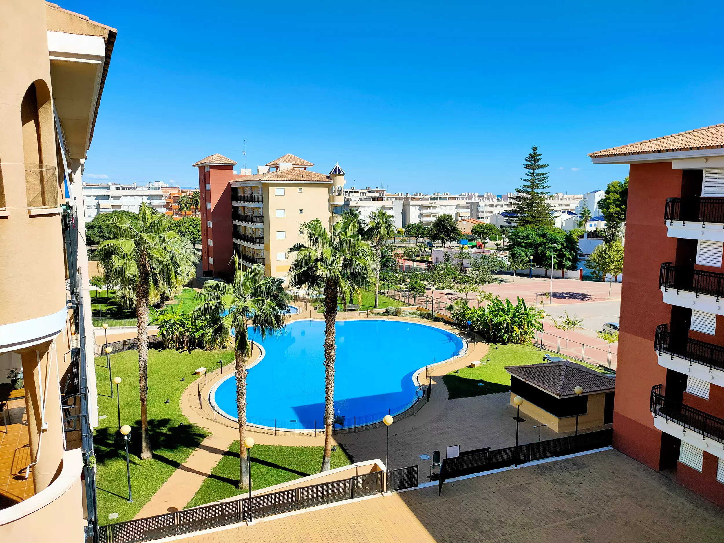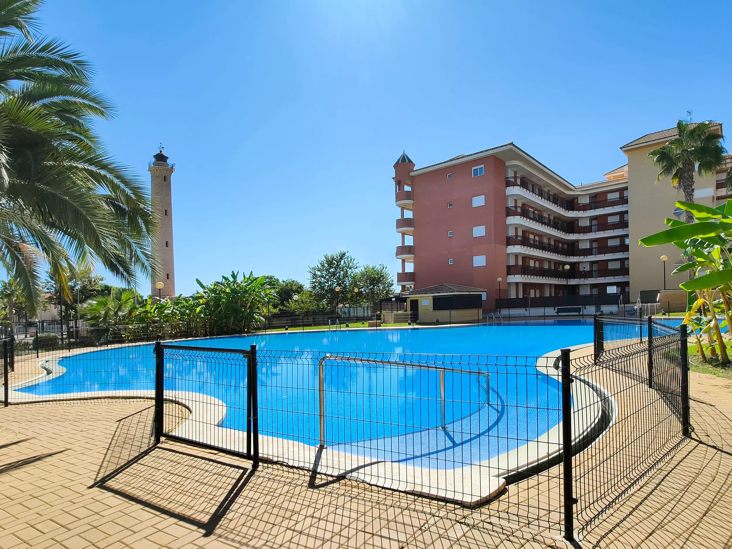 Bel appartement avec terrasse et vue sur le phare de Canet. Le logement est situé dans un quartier résidentiel avec piscine, espaces verts et très proche de la plage.