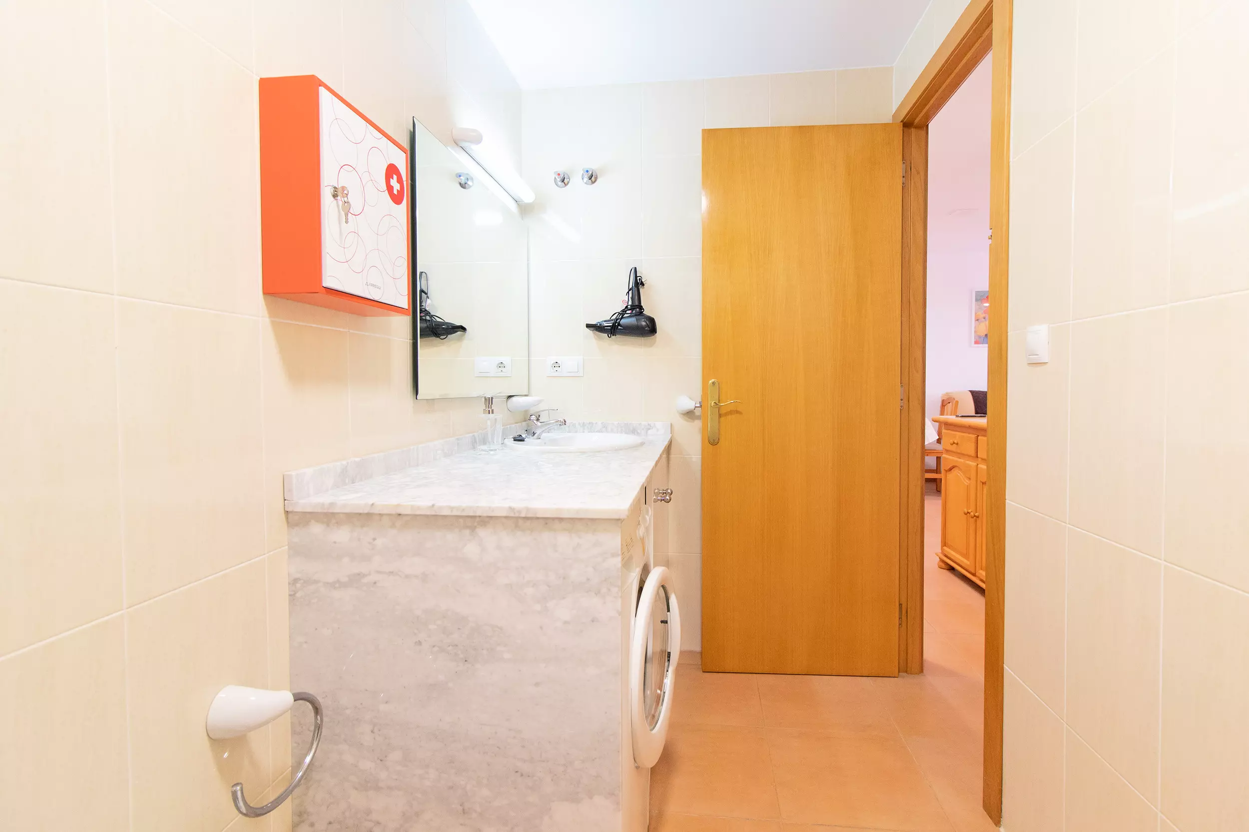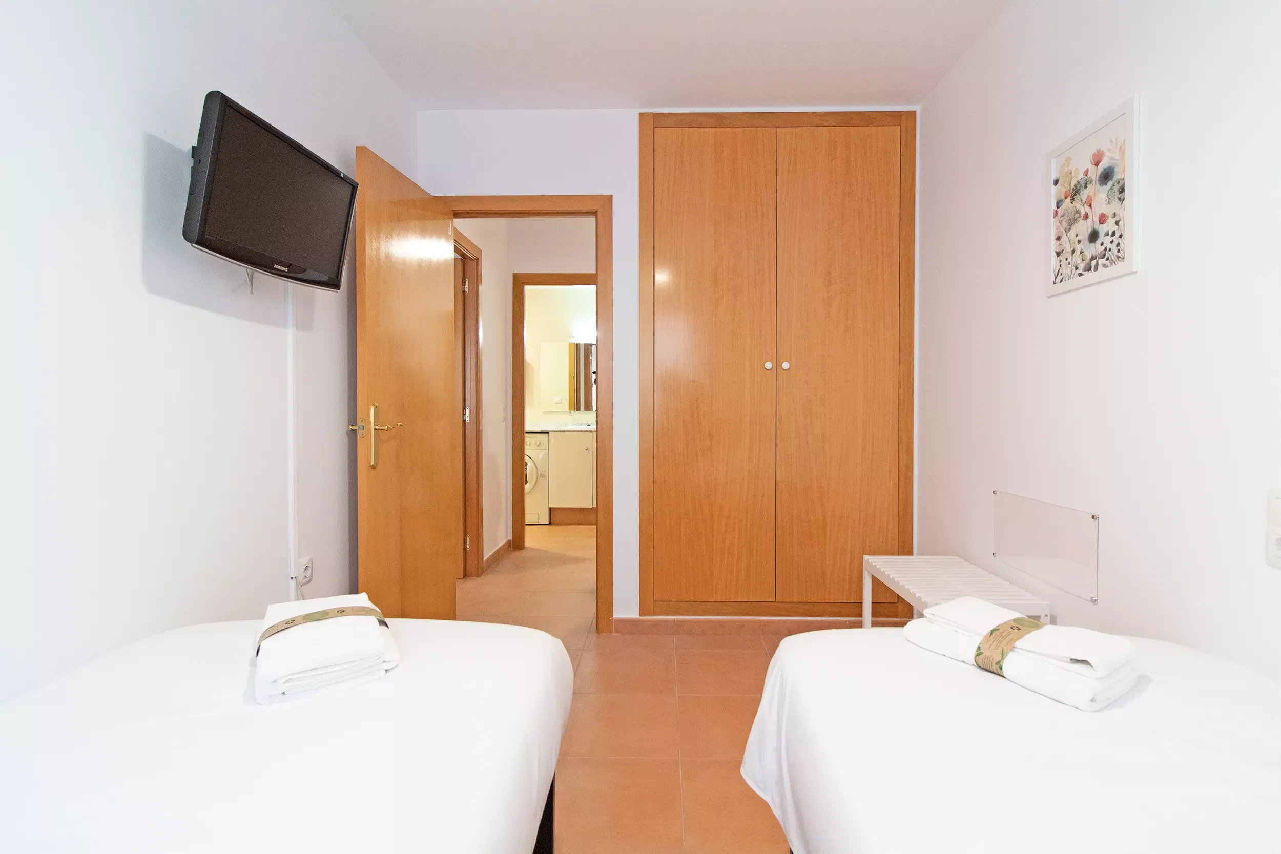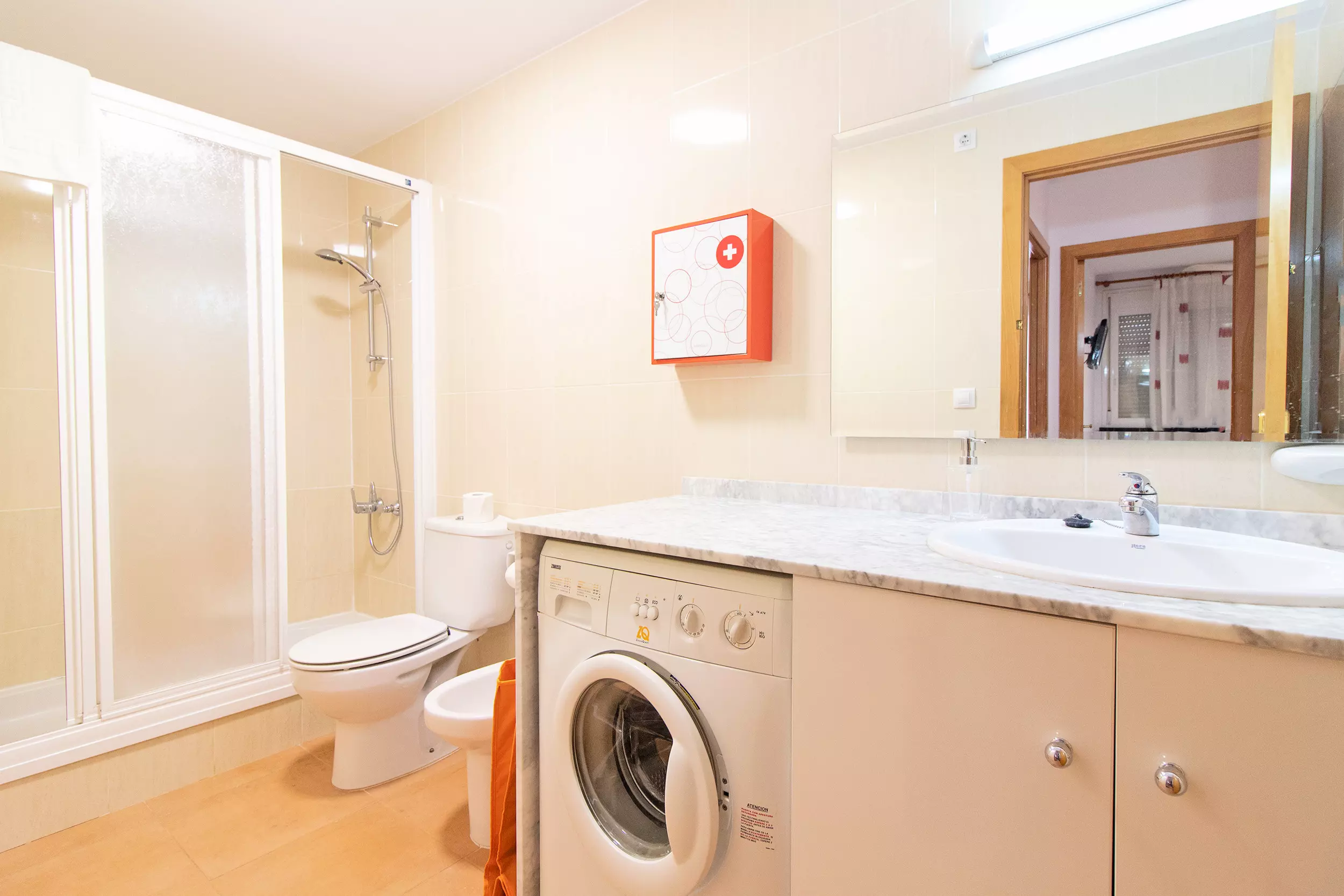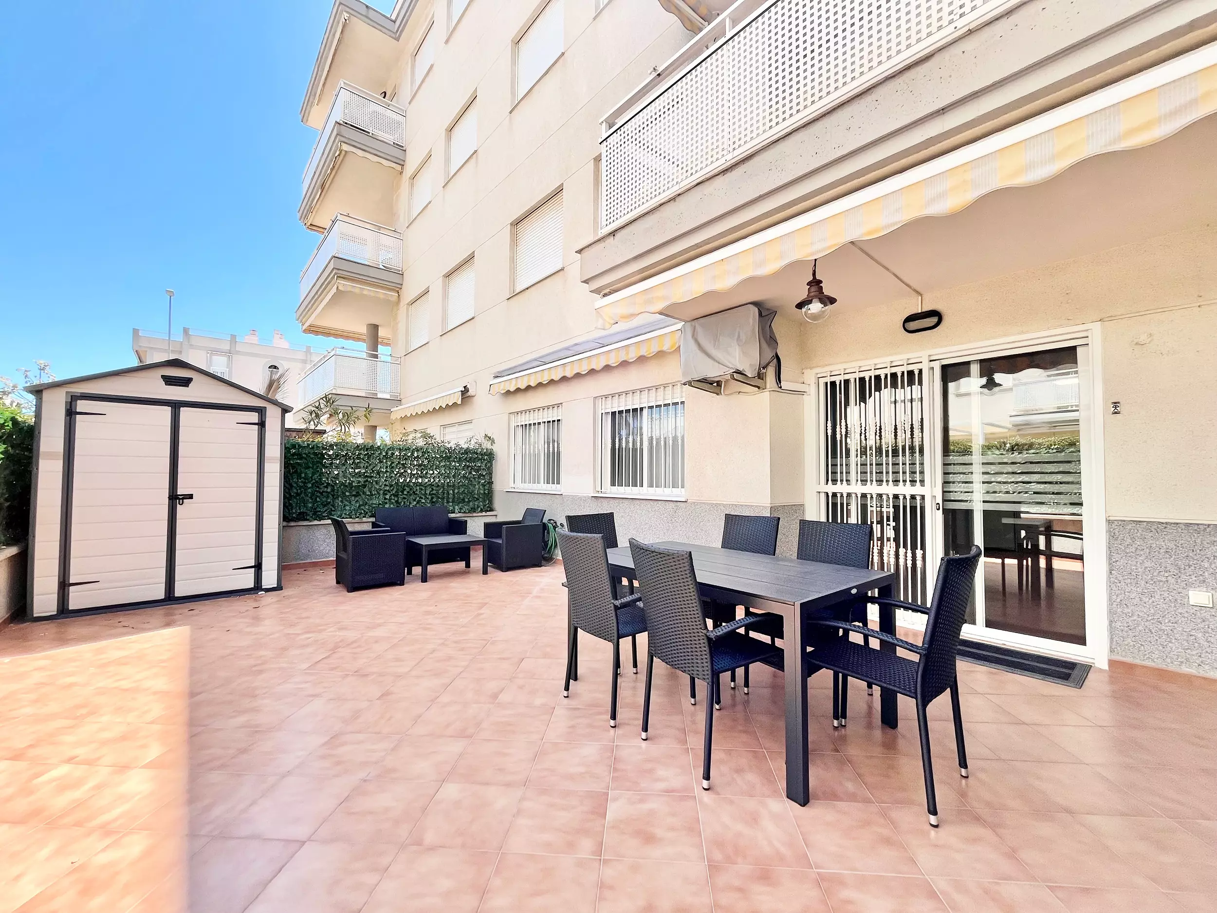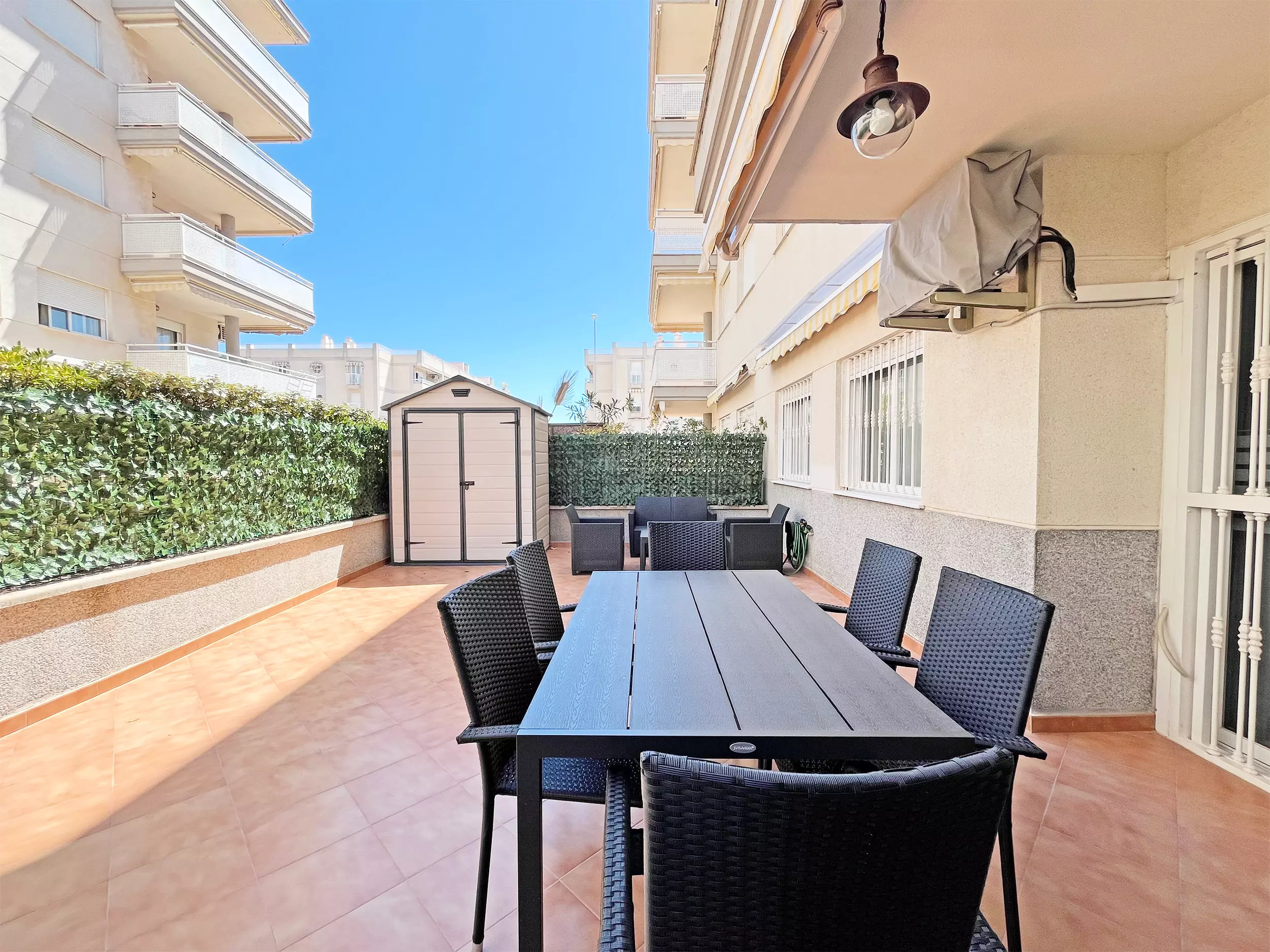 Elle dispose de ascenseur, mobilier de jardin, terrasse, lave-linge, fer à repasser, accès internet (wifi), zone pour les enfants, chauffage pompe à chaleur, climatisation dans le salon, piscine collective+infantile, garage même bâtiment, 3 ventilateurs, moustiquaires dans tout le logement, 3 Télévisions.