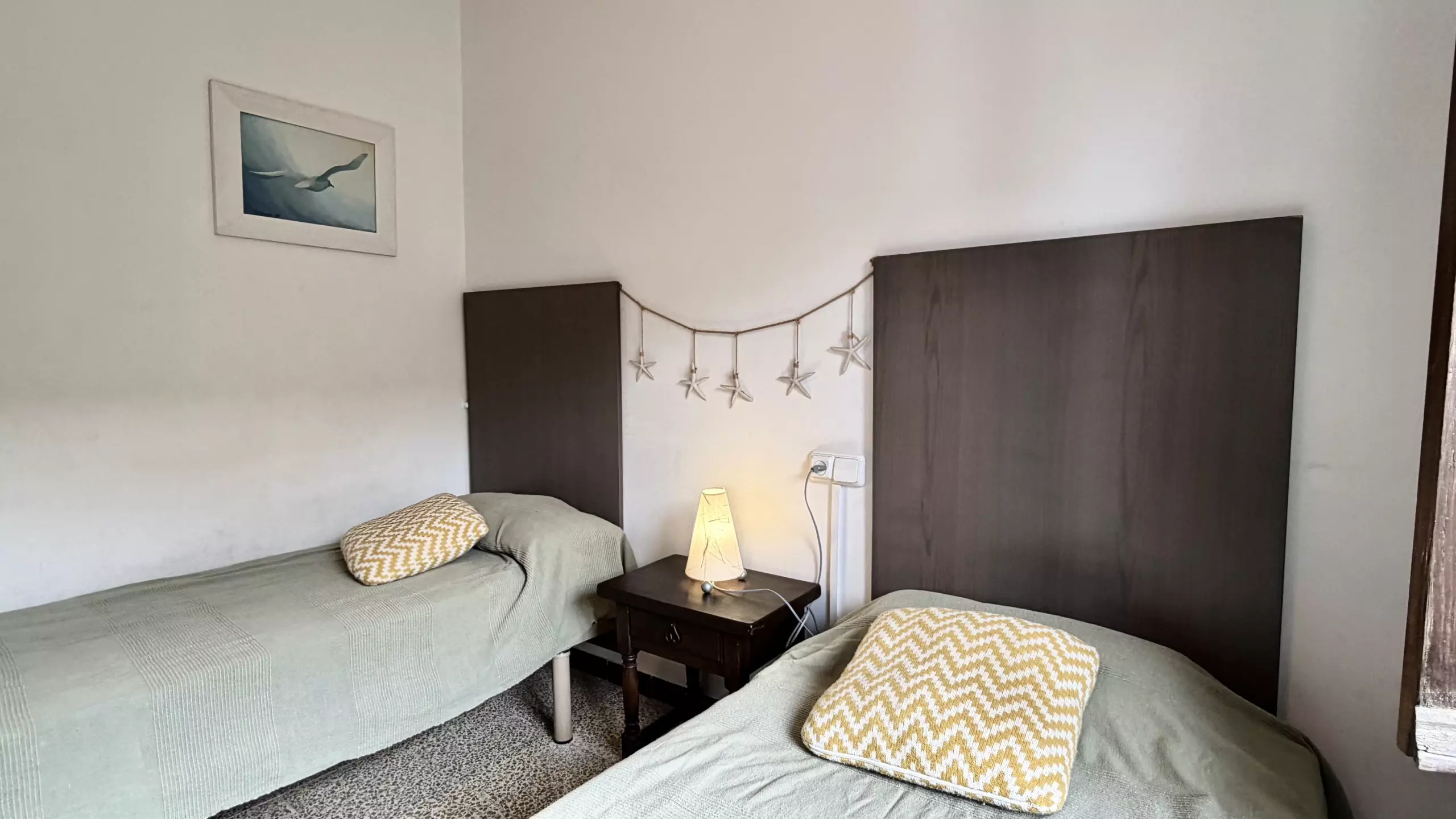 Charmant appartement à L'Escala avec vue sur la mer, parfait pour les familles ou les groupes jusqu'à 6 personnes. Ce logement confortable de 87 mètres carrés offre 3 chambres pouvant accueillir 6 personnes, réparties en 1 lit double et 4 lits individuels.