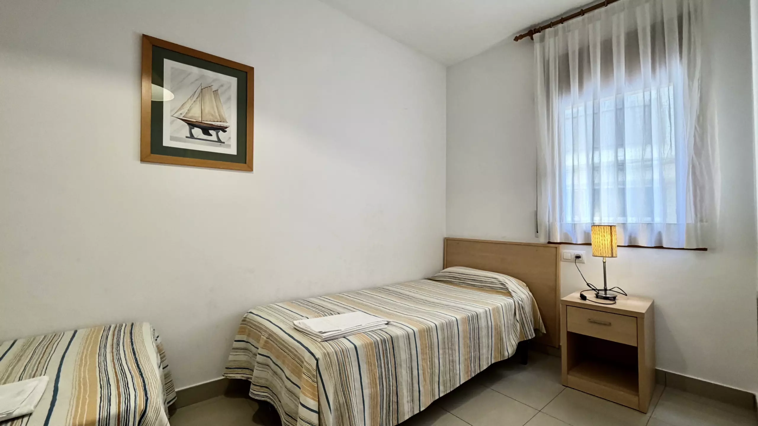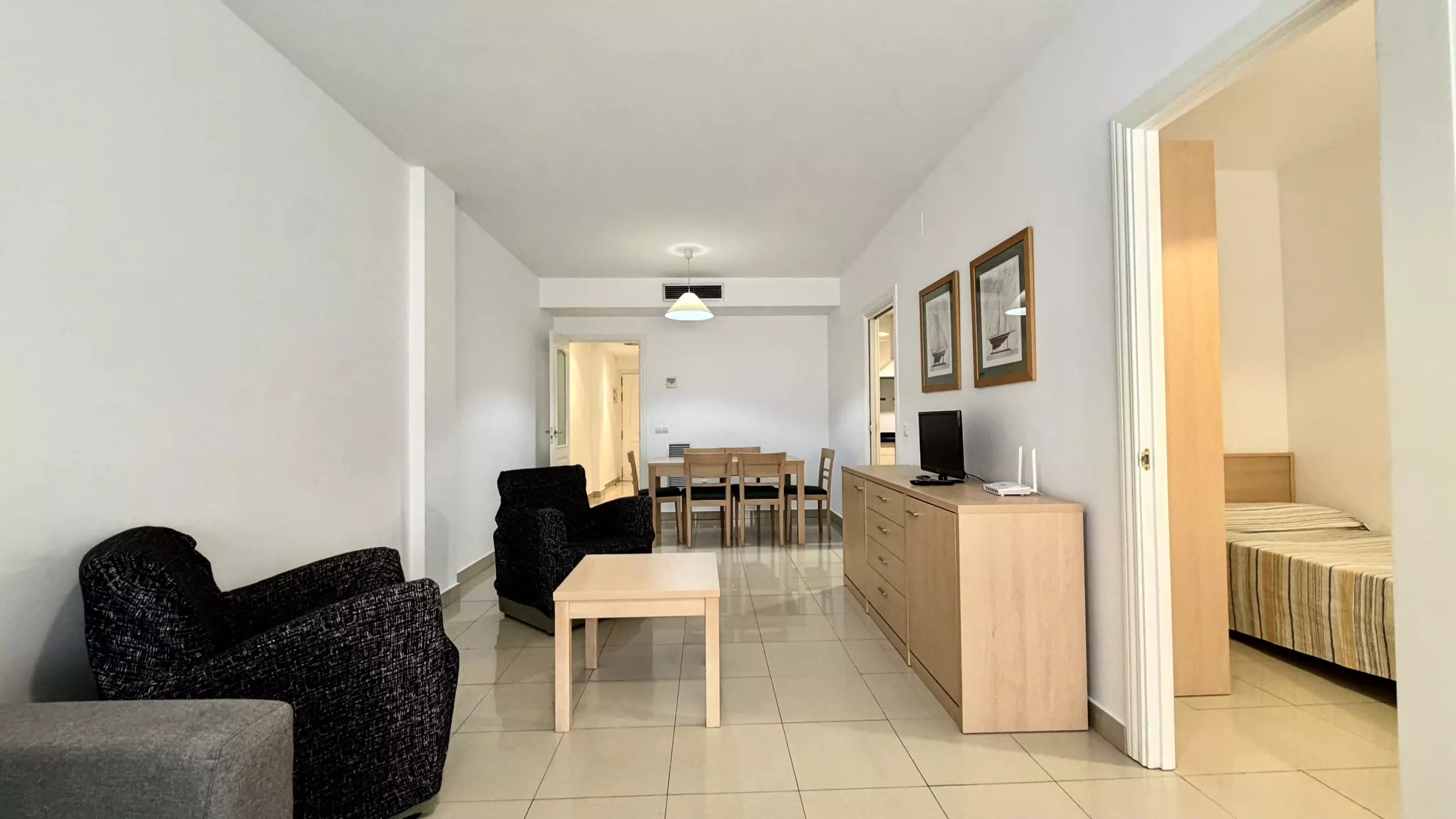 Appartement confortable à L'Escala, idéal pour les familles ou les petits groupes, pouvant accueillir 6 personnes et situé dans un quartier central et bien desservi. Cet appartement lumineux de 60 mètres carrés offre un espace confortable et entièrement équipé pour passer des vacances parfaites.L'appartement dispose de deux chambres qui comprennent un lit double, un canapé-lit double et deux lits simples, garantissant un repos relaxant à tous les clients. Elle dispose d'une salle de bain individuelle avec baignoire, idéale pour se détendre après une journée à la plage ou à visiter la ville.La cuisine est entièrement équipée avec des appareils modernes tels qu'un réfrigérateur, un lave-linge, un lave-vaisselle, un four, un four micro-ondes, une machine à café, un grille-pain et des ustensiles de cuisine complets. De plus, il dispose de la climatisation et du chauffage par pompe à chaleur pour assurer un maximum de confort à tout moment de l'année.Ses services comprennent l'accès au WiFi, un fer à repasser, une télévision avec chaînes satellite et un parking couvert dans le même bâtiment. L'espace commun comprend une piscine commune de 2,5 x 5 mètres, idéale pour des moments de détente.Son emplacement est imbattable : à seulement 250 mètres de la plage, à 100 mètres d'un supermarché et à 25 mètres du centre-ville. Parfait pour ceux qui recherchent des vacances tranquilles avec tous les services à proximité.Les animaux domestiques sont autorisés. L'appartement est idéal pour les familles ou les groupes d'amis à la recherche d'un séjour confortable et bien connecté sur la Costa Brava.