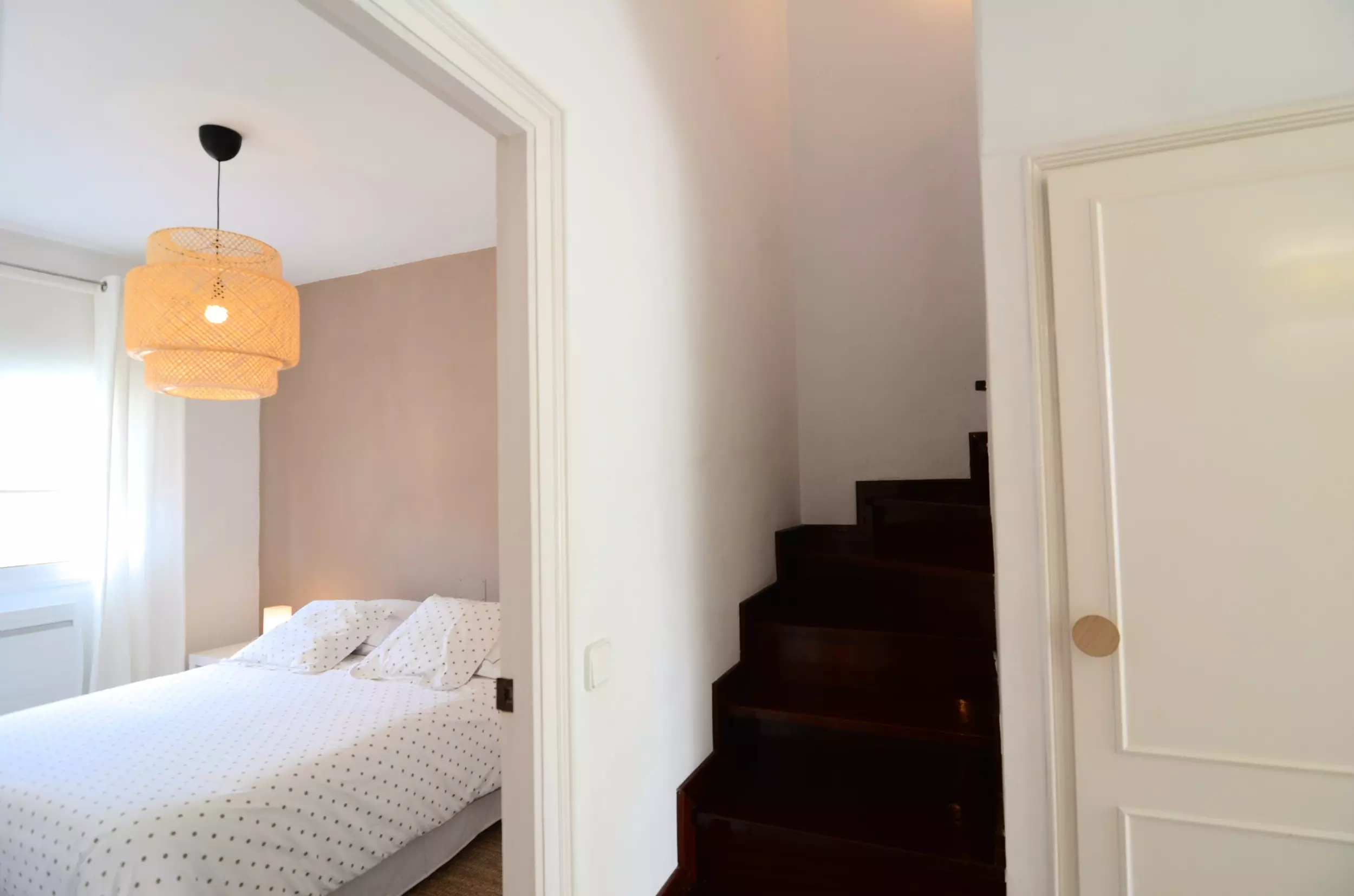 Par un escalier, on accède au niveau supérieur du duplex où l'on trouve la chambre principale avec une grande salle de bain avec baignoire et douche et une terrasse avec une totale intimité.