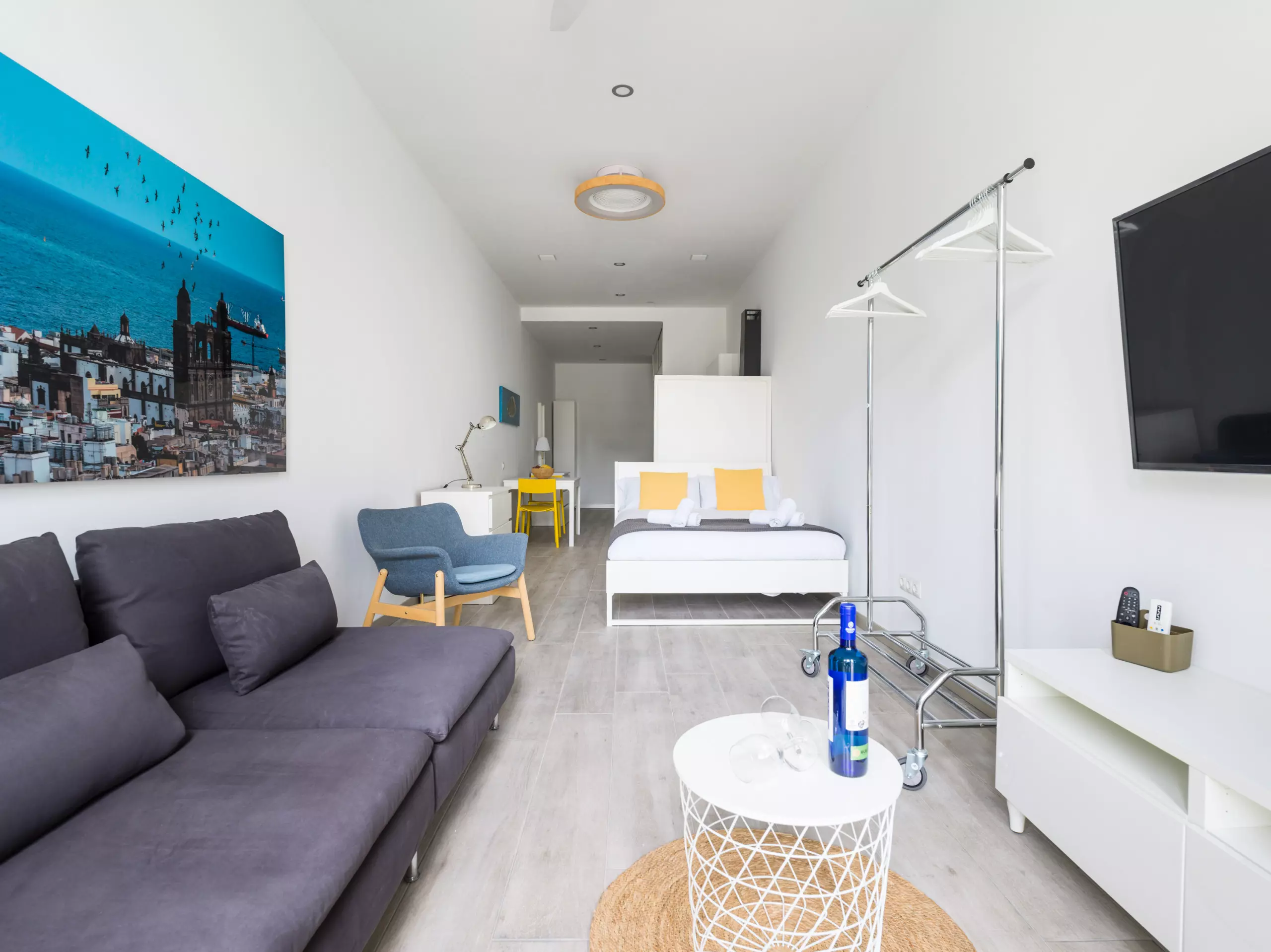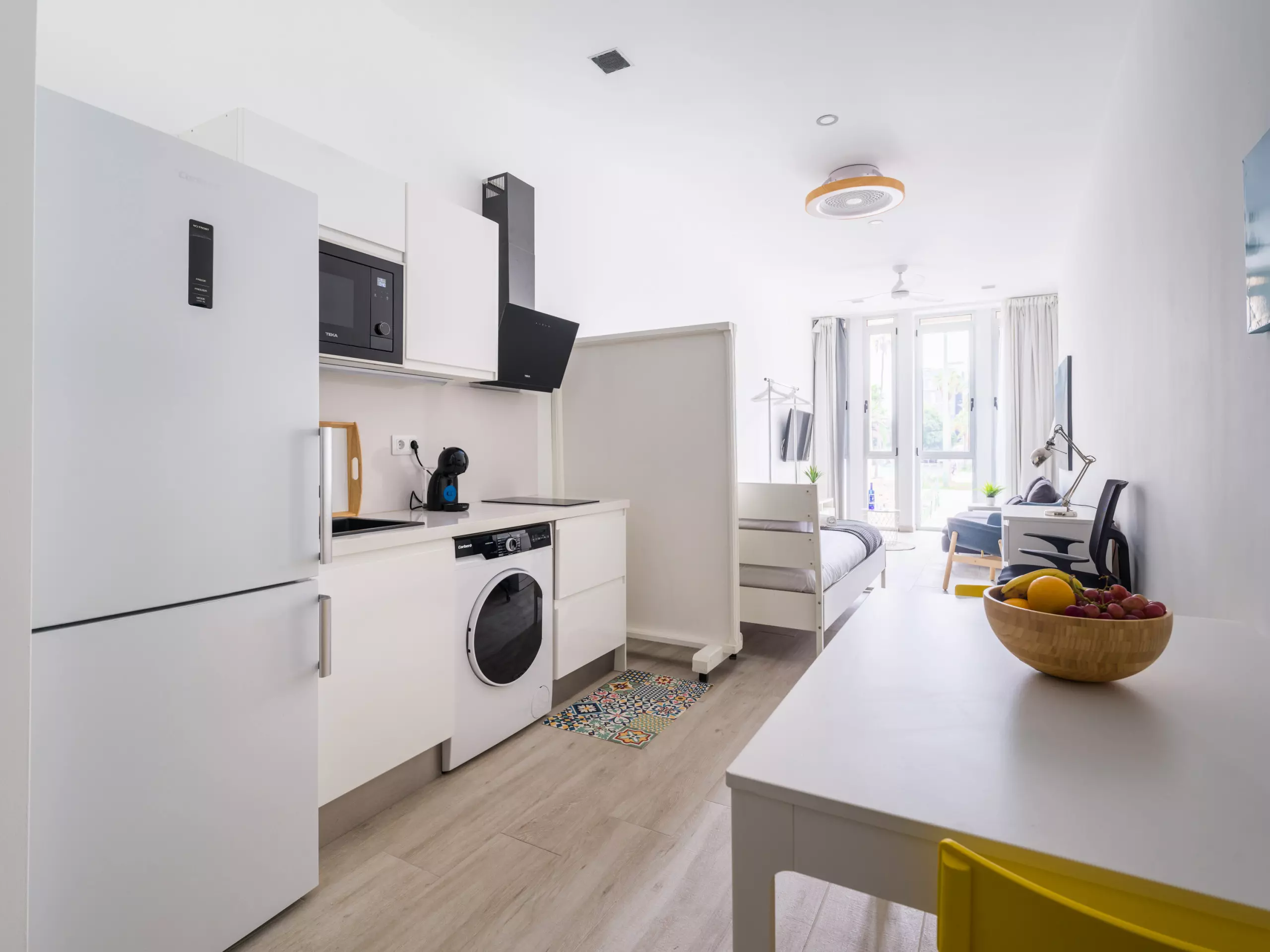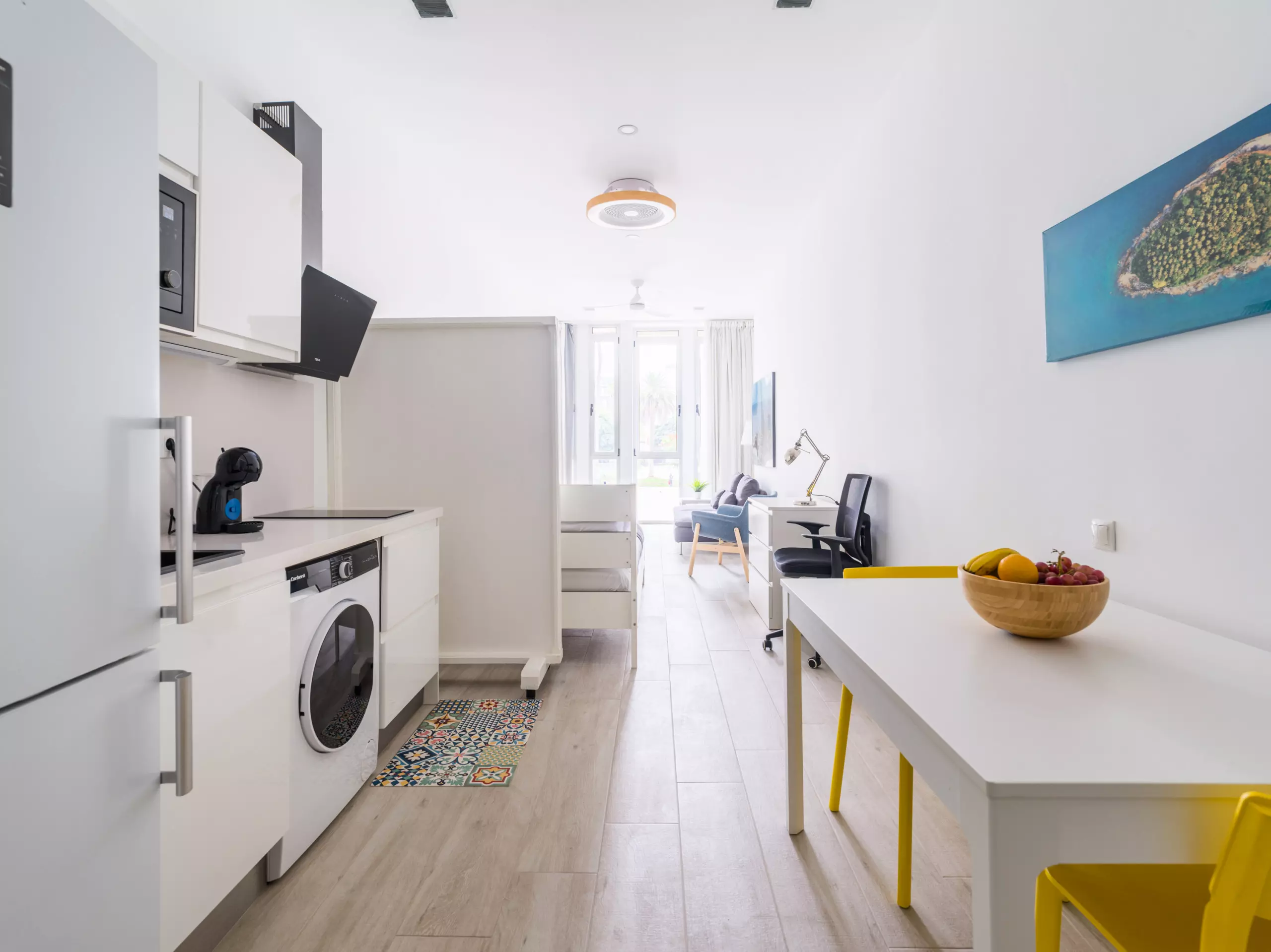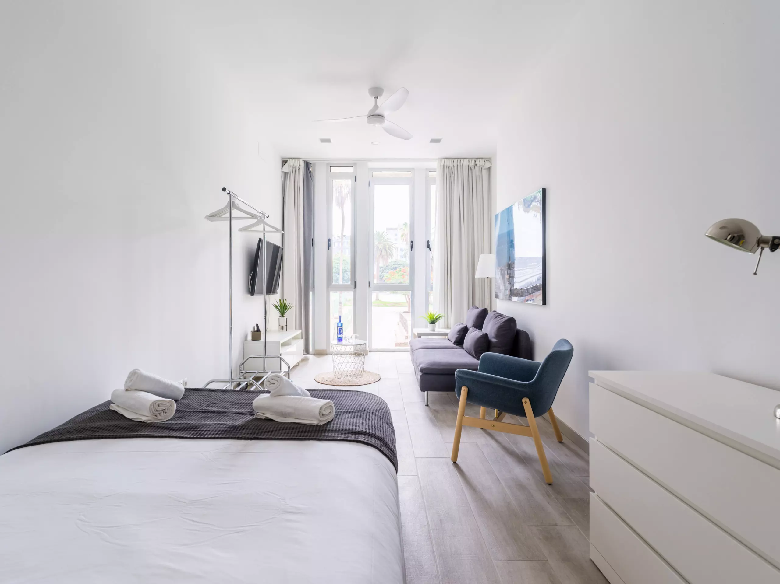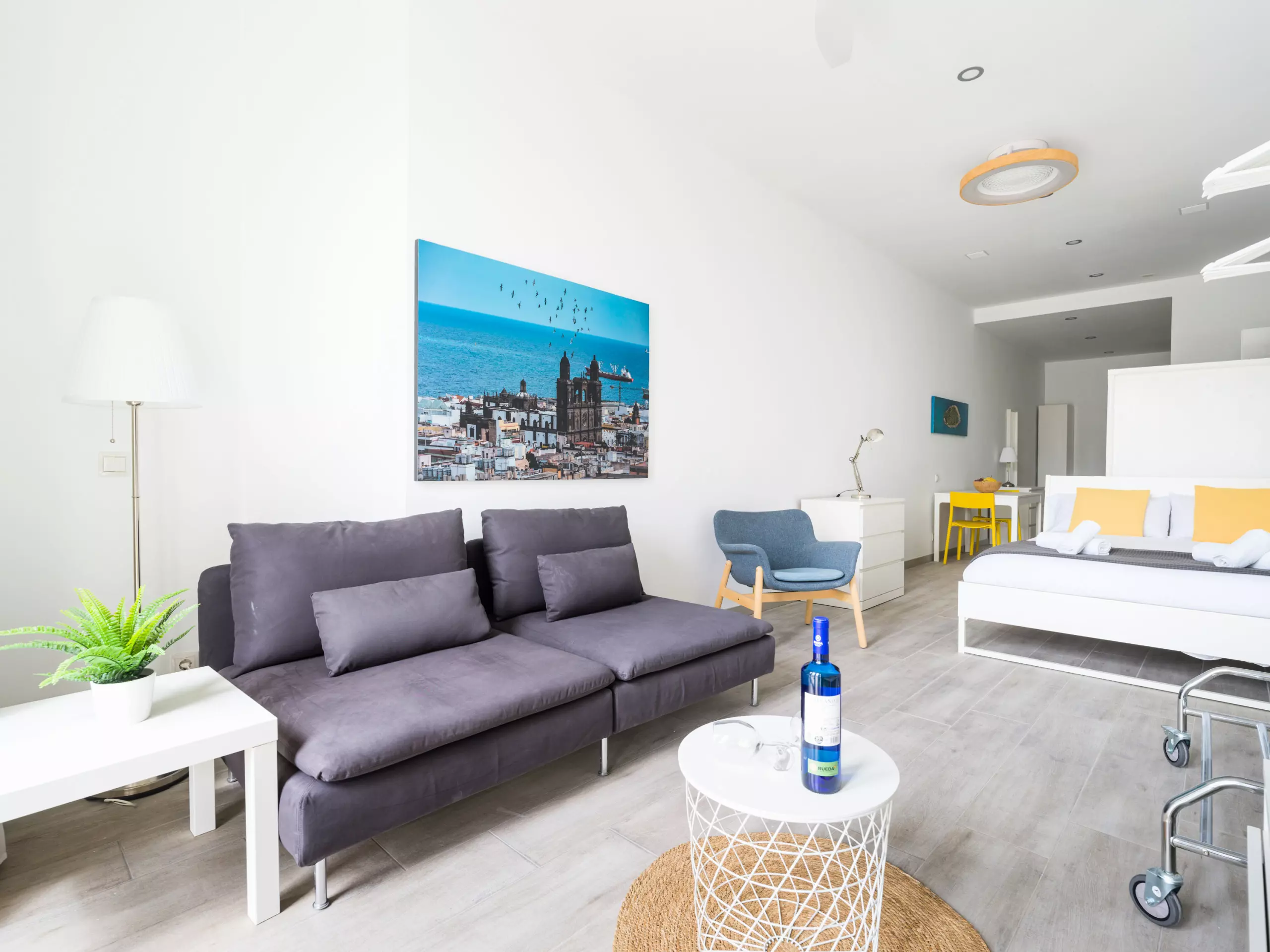Le logement situé dans le parc de Santa Catalina et à seulement 500 mètres de la plage de Las Canteras a 35 mètres carrés et dispose d'un lave-linge, d'un fer à repasser, d'un micro-ondes, de vaisselle et de couverts complets, ainsi que d'une télévision intelligente et d'une connexion Wi-Fi.