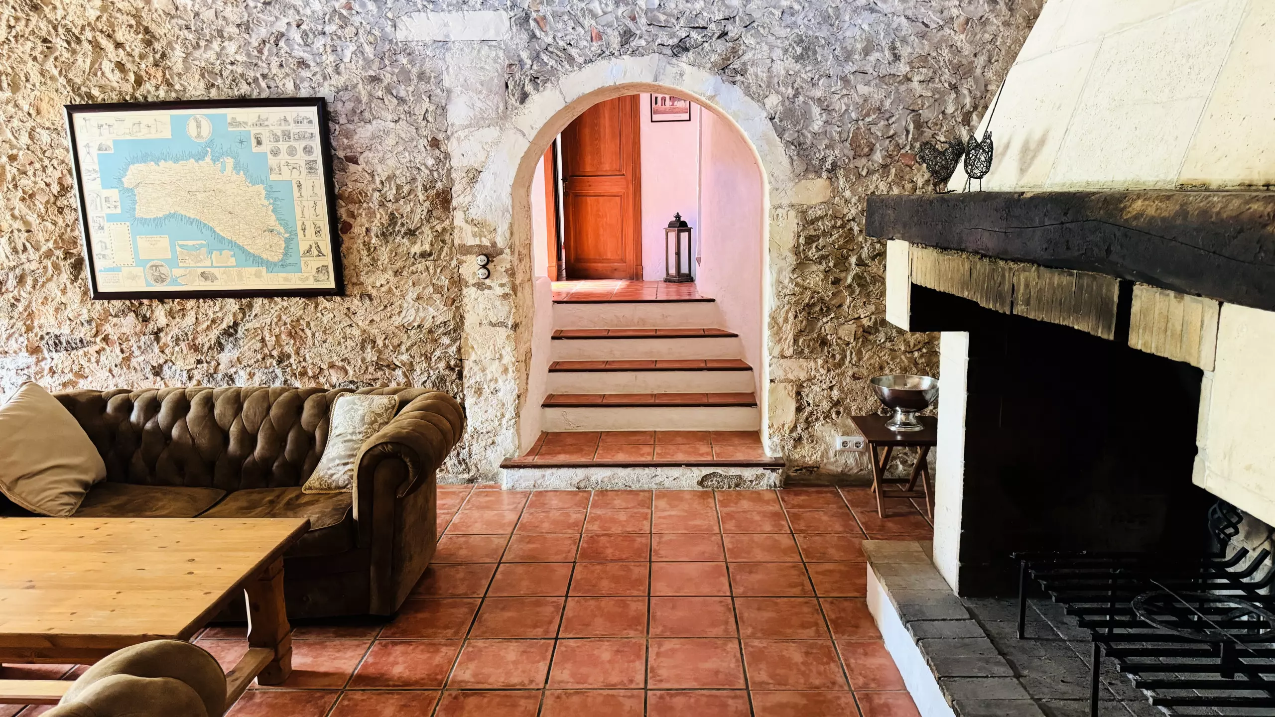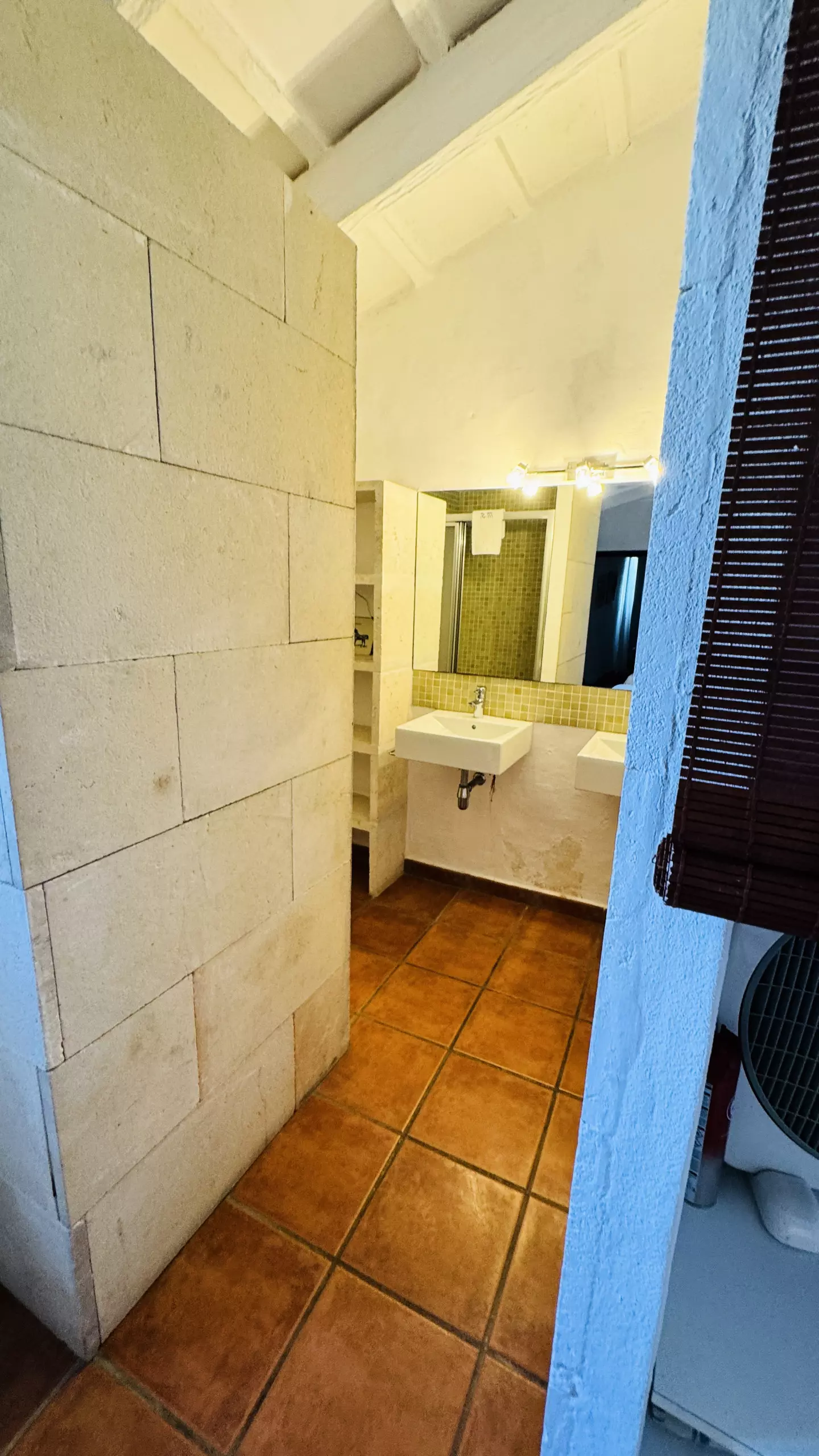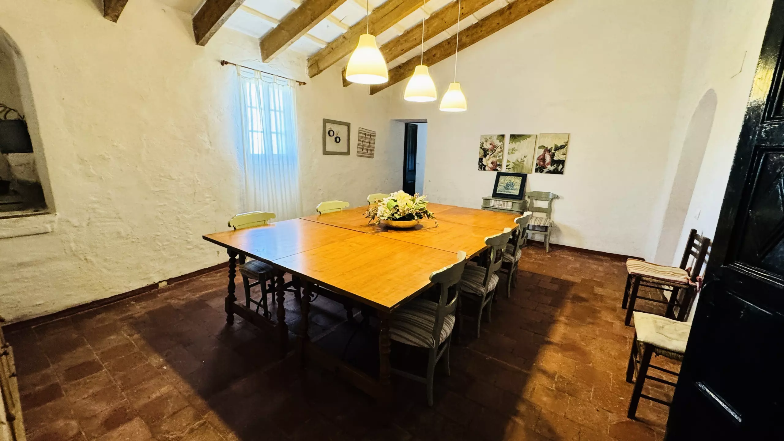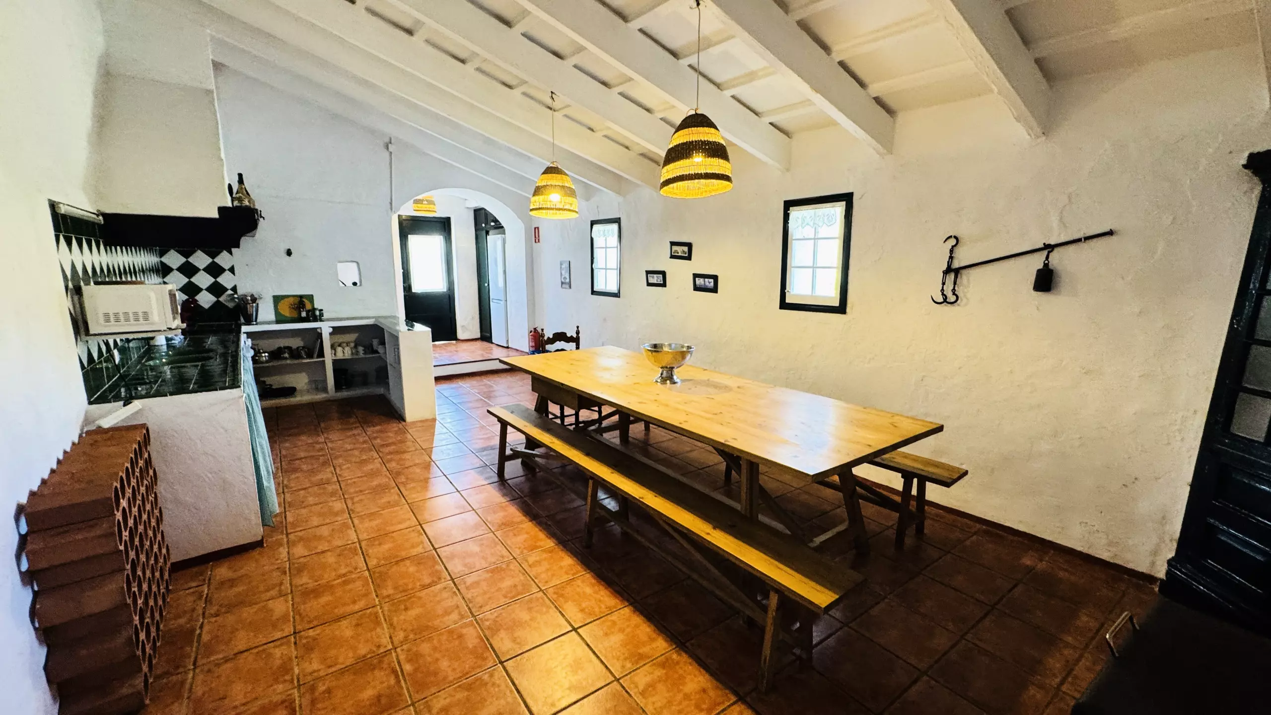 Distribution : spacieux salon principal (avec une hauteur de 5m et des murs en pierre) avec accès direct à l'extérieur, large salle à manger, grande cuisine typique de Minorque avec une « table de type paysan », 2 chambres doubles avec douche en-suite, 2 chambres matrimoniales, 1 salle de bain complète et 1 salle de bain avec douche.