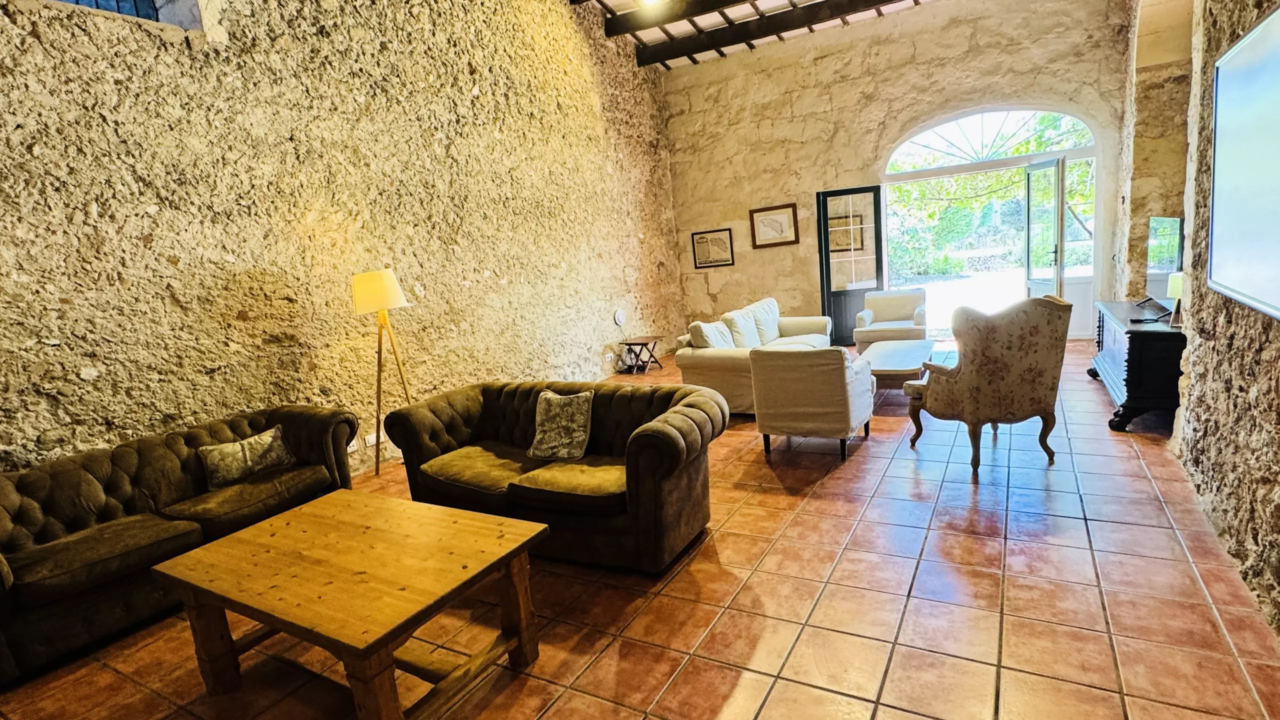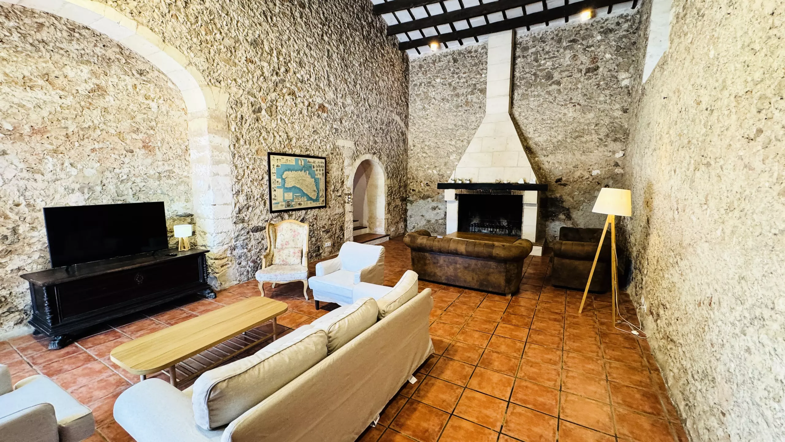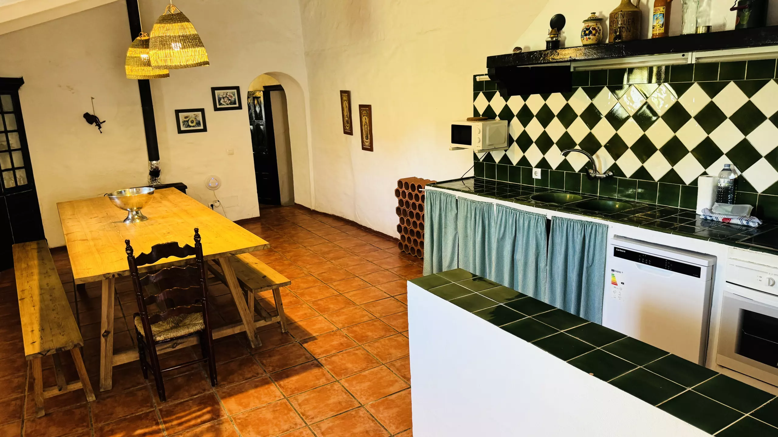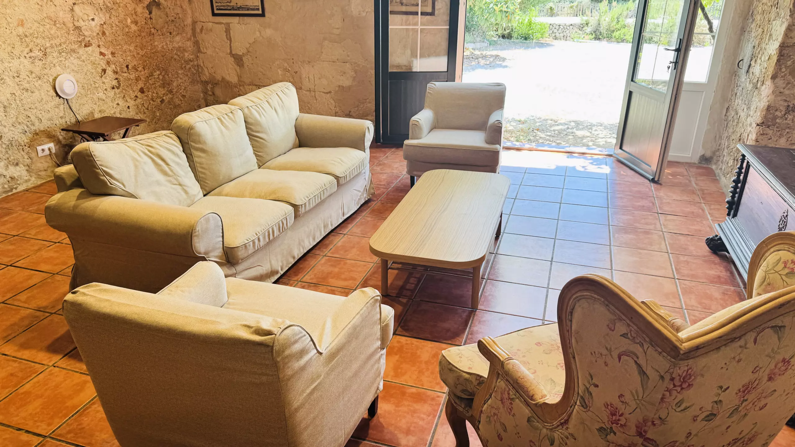 Distribution : spacieux salon principal (avec une hauteur de 5m et des murs en pierre) avec accès direct à l'extérieur, large salle à manger, grande cuisine typique de Minorque avec une « table de type paysan », 2 chambres doubles avec douche en-suite, 2 chambres matrimoniales, 1 salle de bain complète et 1 salle de bain avec douche.