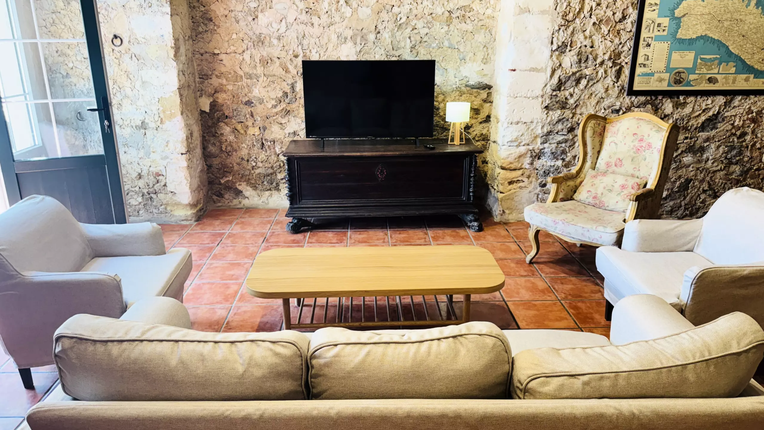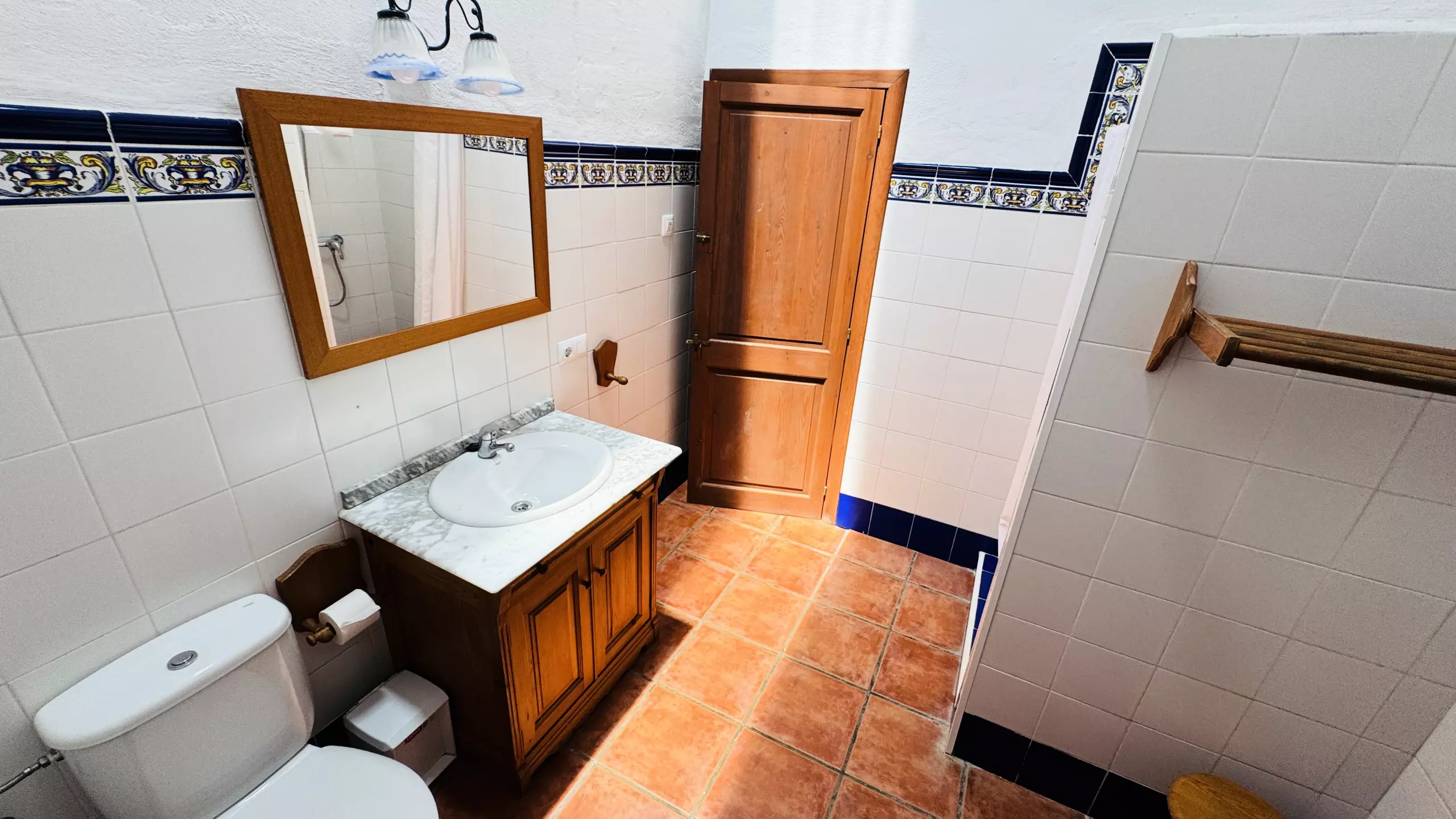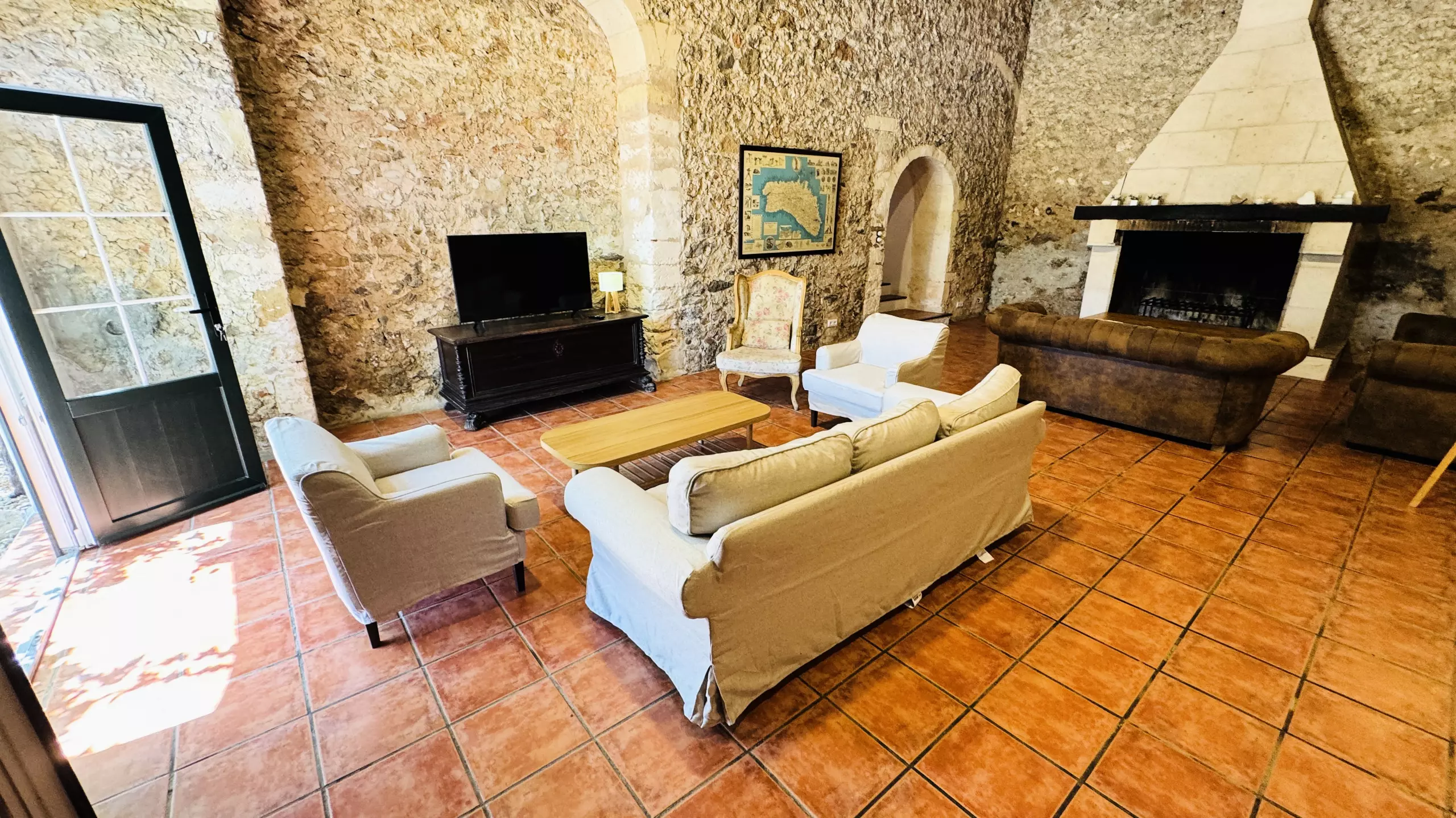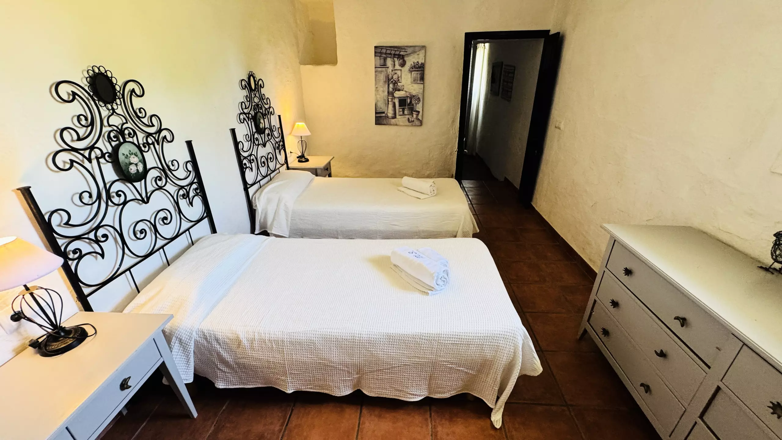 Distribution : spacieux salon principal (avec une hauteur de 5m et des murs en pierre) avec accès direct à l'extérieur, large salle à manger, grande cuisine typique de Minorque avec une « table de type paysan », 2 chambres doubles avec douche en-suite, 2 chambres matrimoniales, 1 salle de bain complète et 1 salle de bain avec douche.