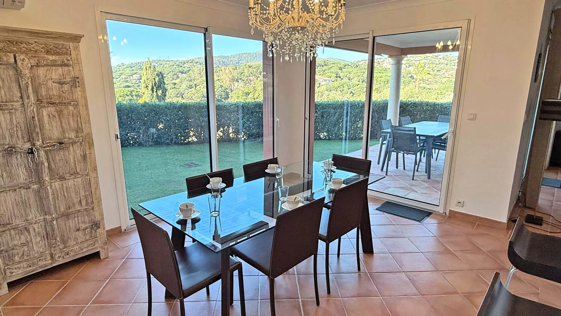 - Piscine privée (chauffée en supplément à la demande) avec couverture volet électrique, plancha / barbecue au gaz et mobilier extérieur